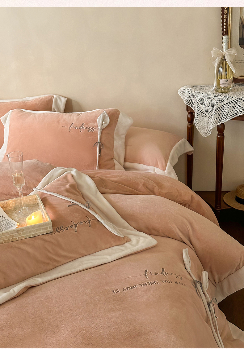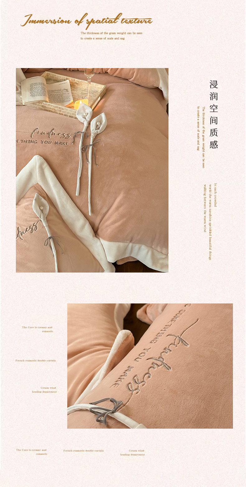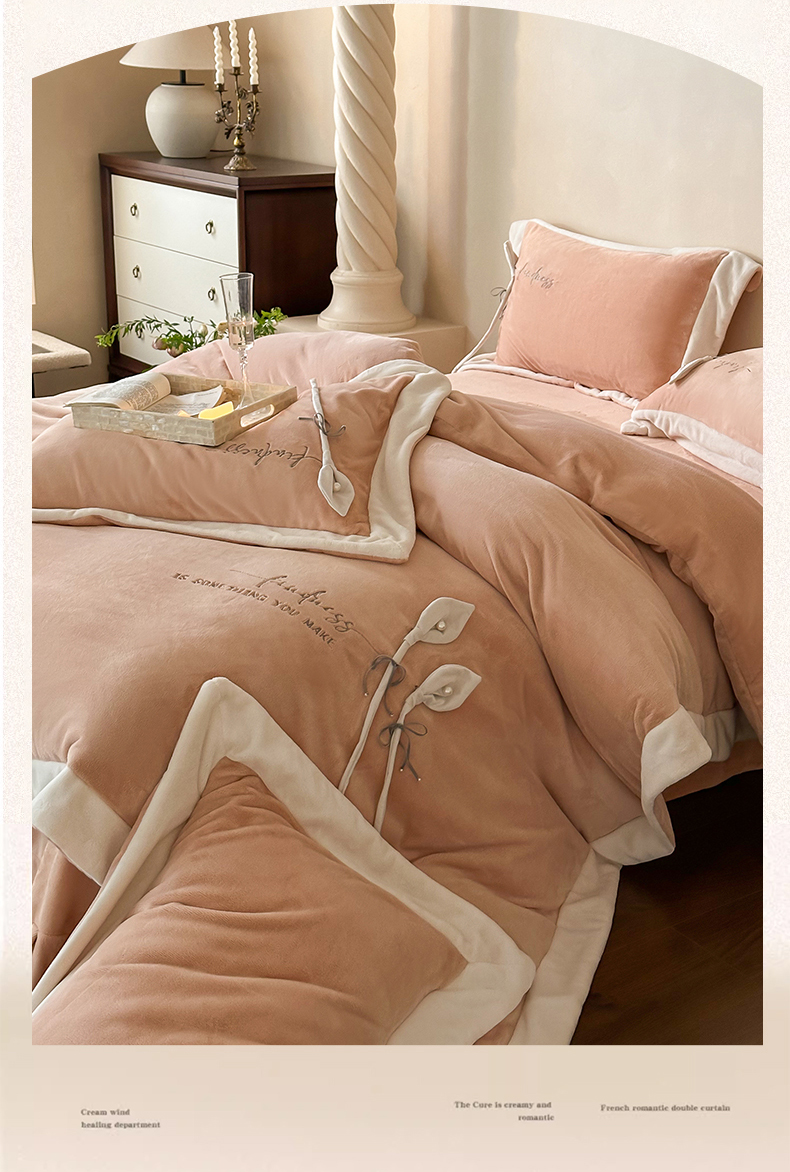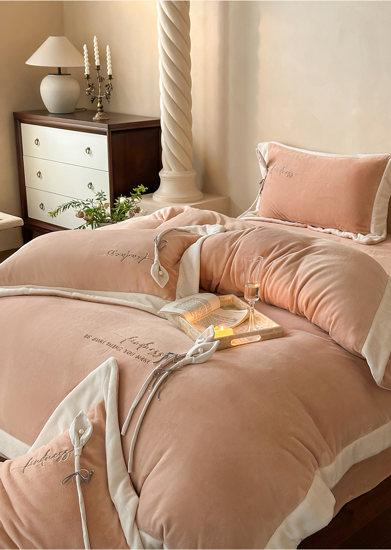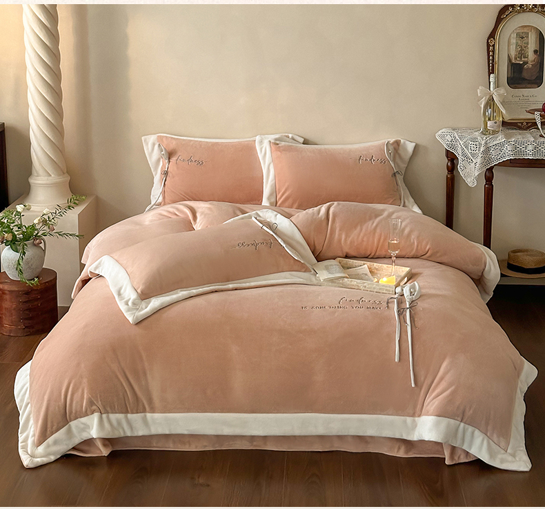 2024新款高克重牛奶绒四件套-辛西娅 杏粉