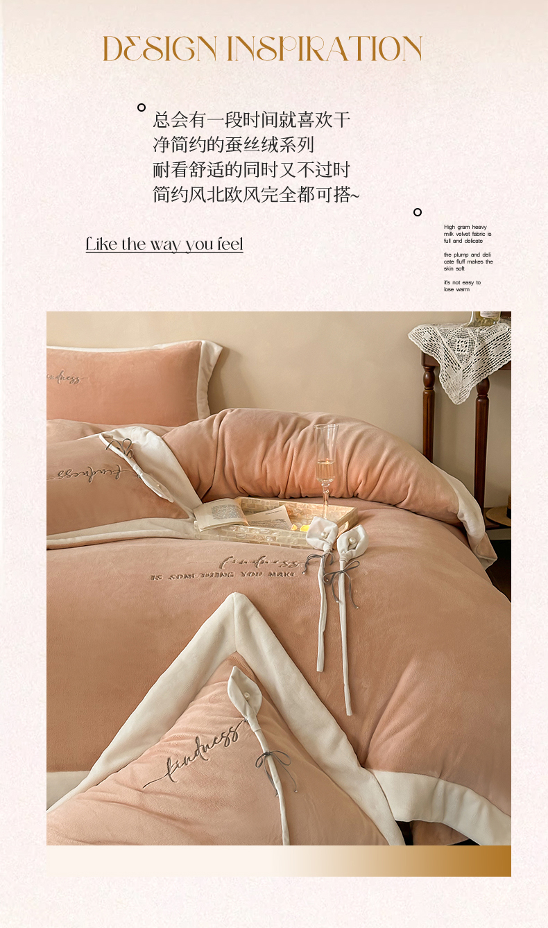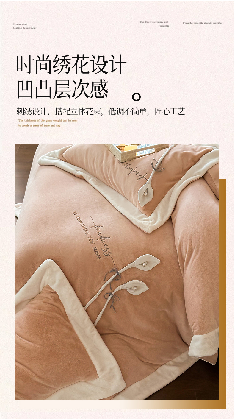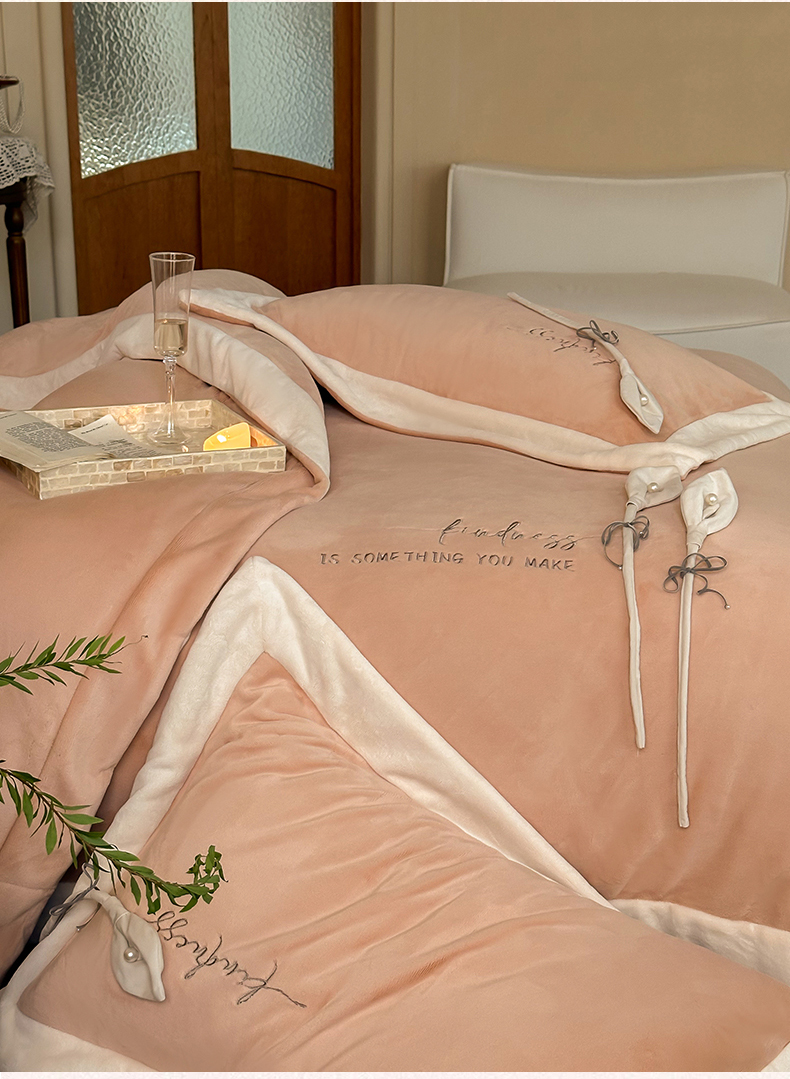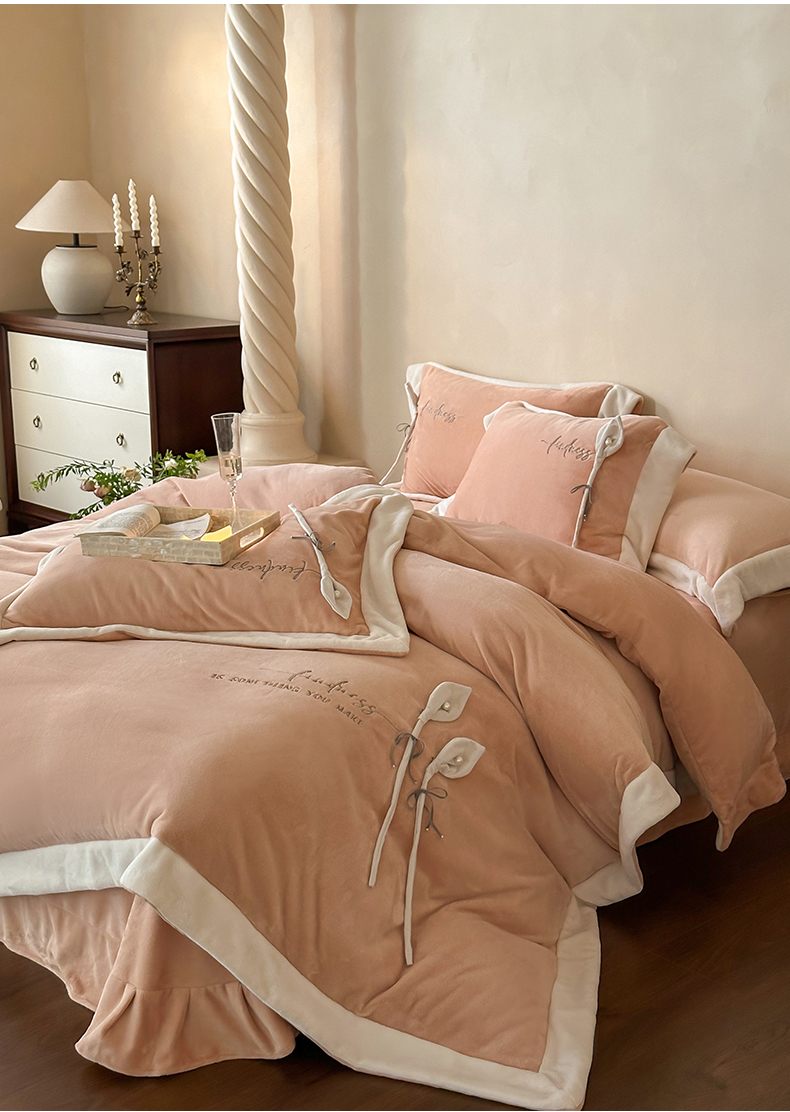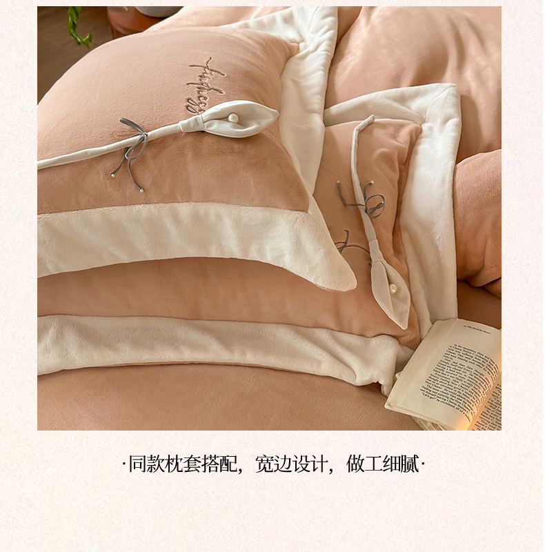 2024新款高克重牛奶绒四件套-辛西娅 杏粉