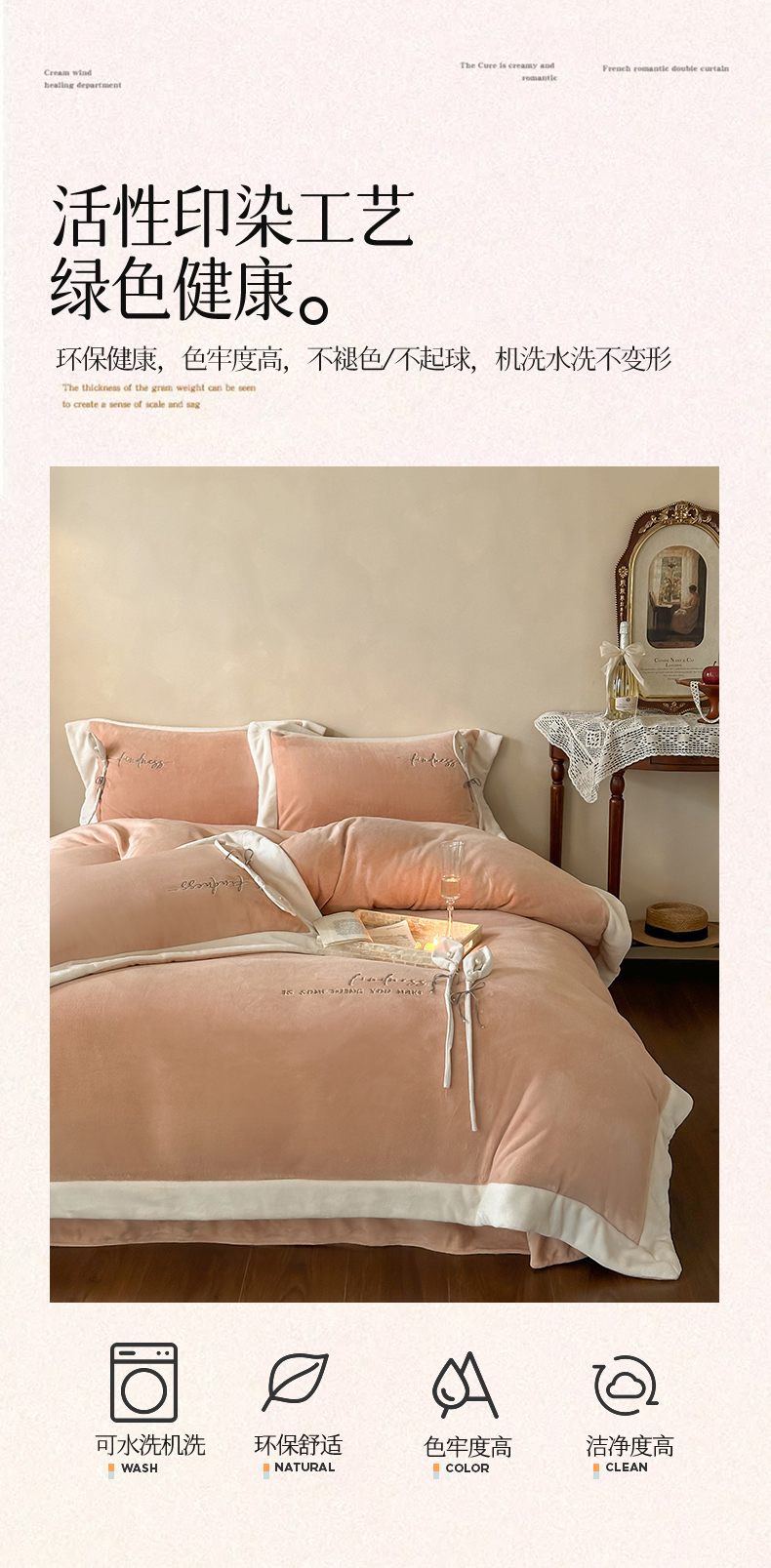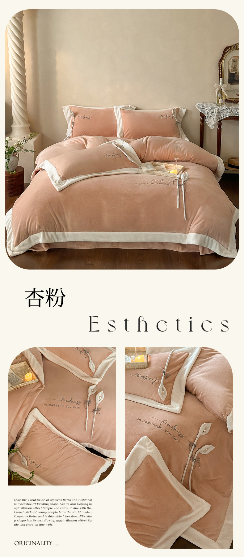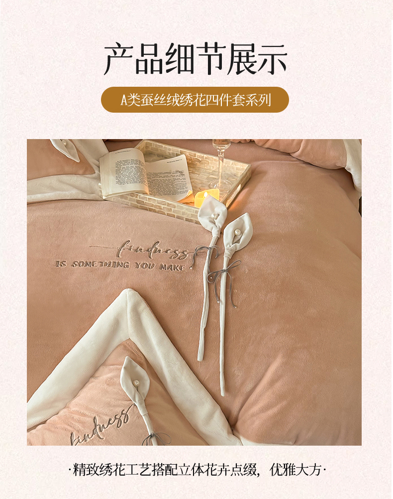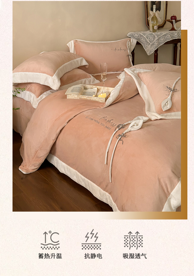 商品名称:2024新款高克重牛奶绒四件套-辛西娅 杏粉