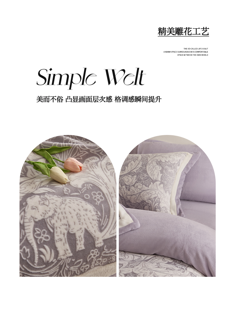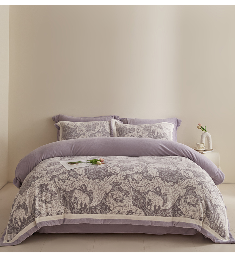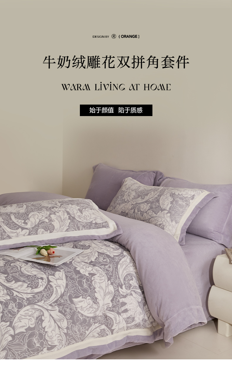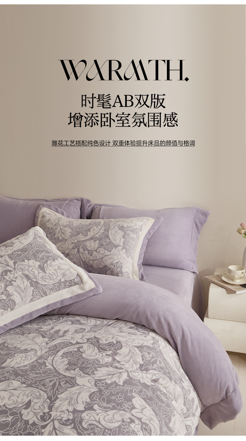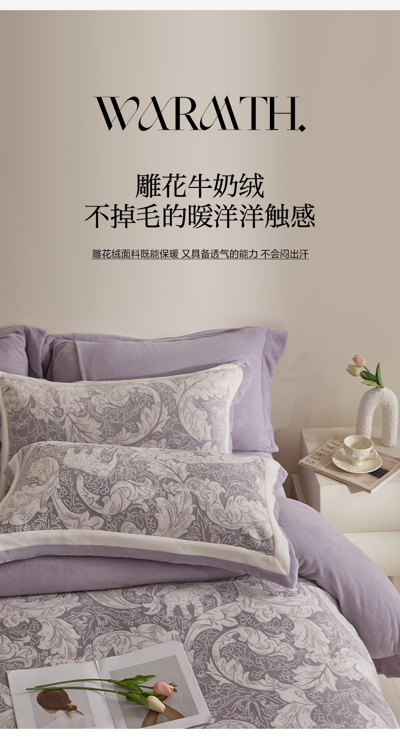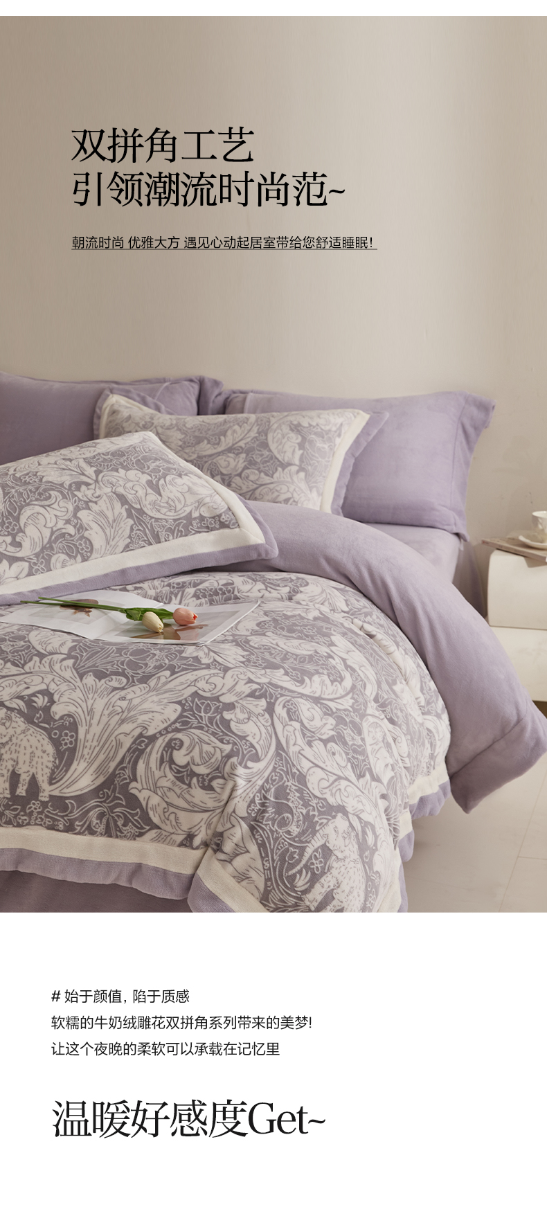 卡巴伦家纺 2024新款雕花牛奶绒双拼角四件套 华尔兹-紫