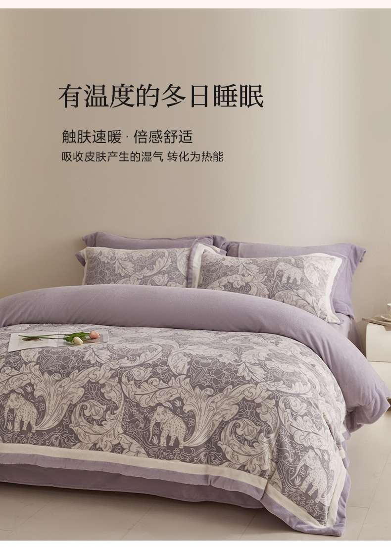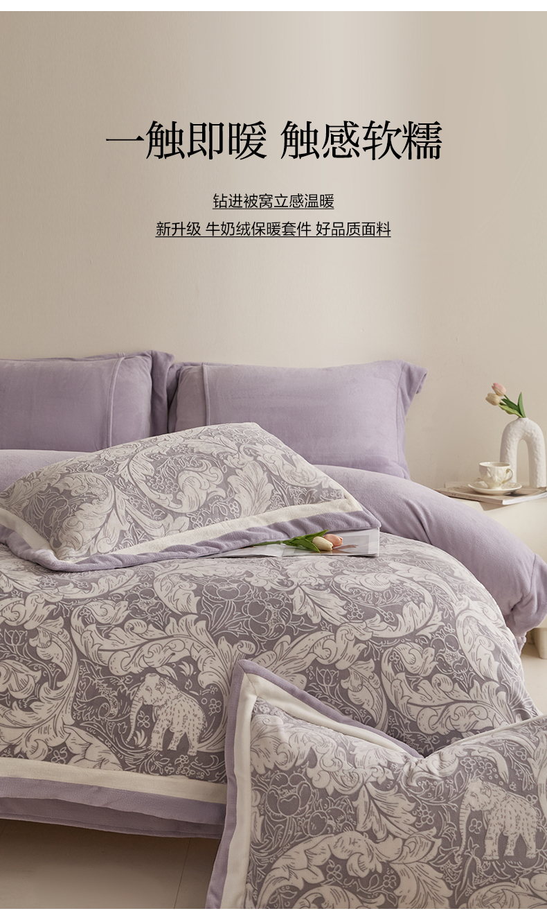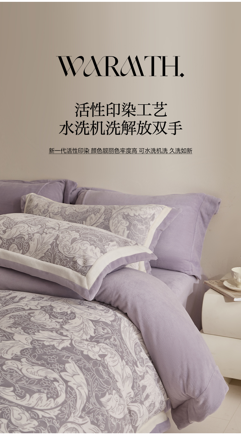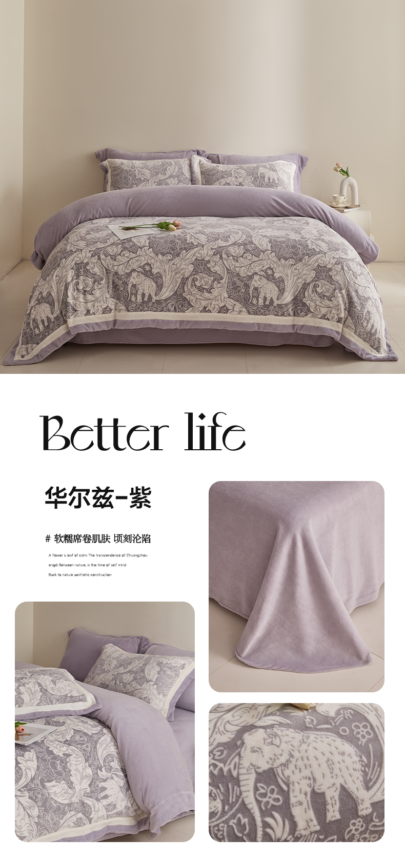 商品名称:卡巴伦家纺 2024新款雕花牛奶绒双拼角四件套 华尔兹-紫