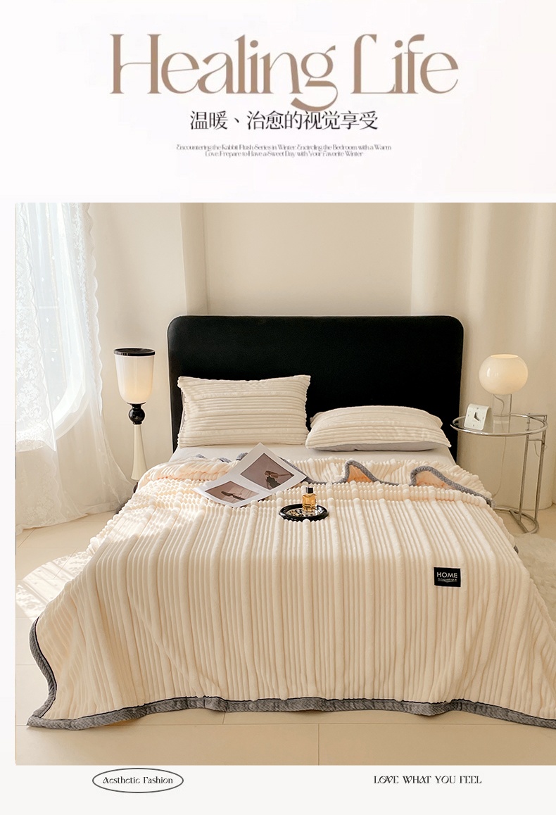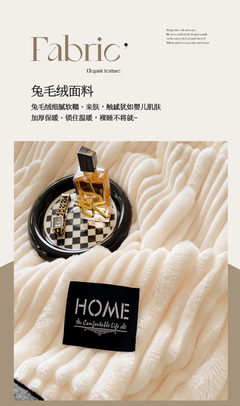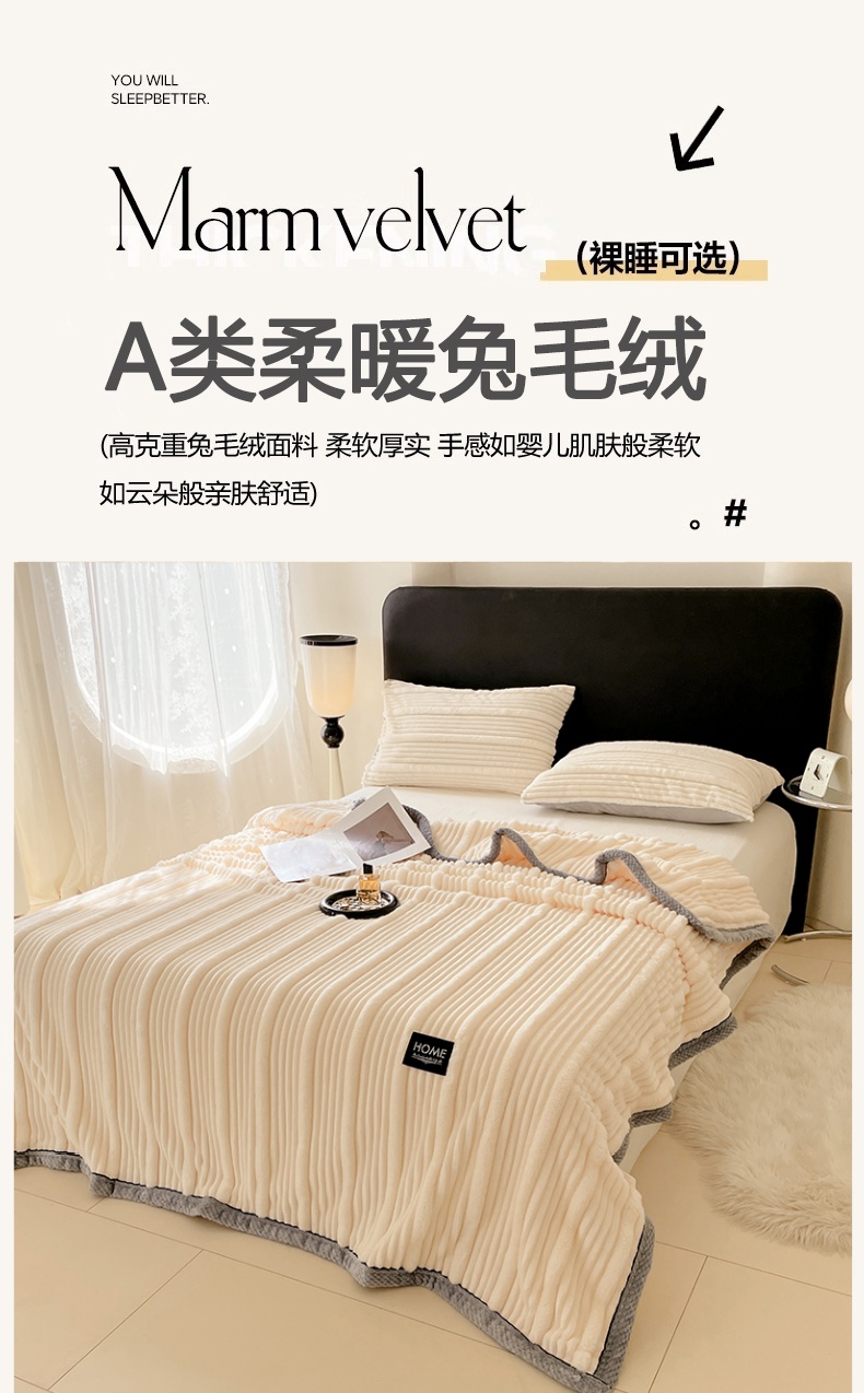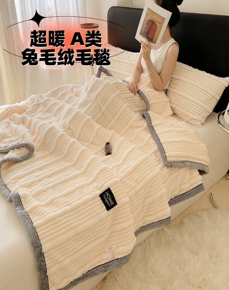 商品名称:梦舒羽 2025新款子母条兔毛绒毛毯宿舍牛奶绒小被毯 本白