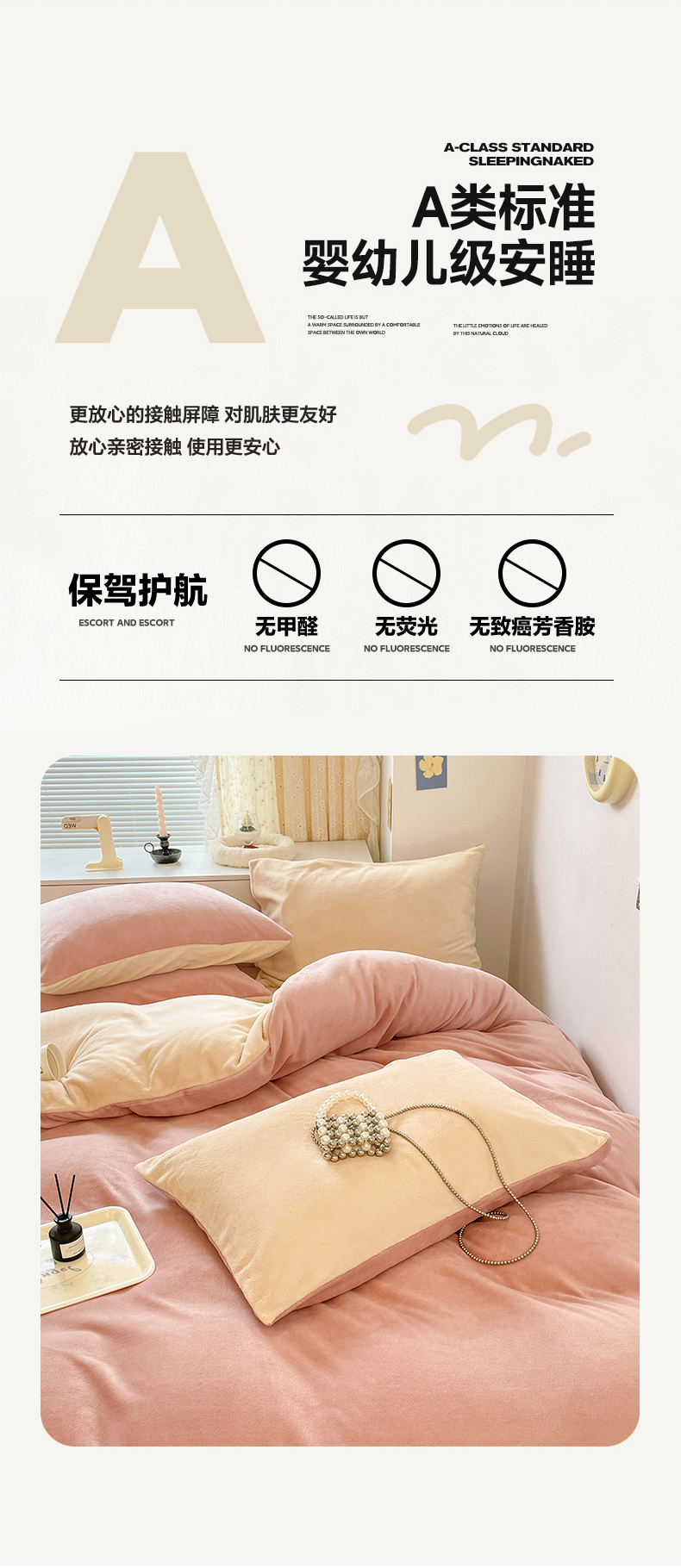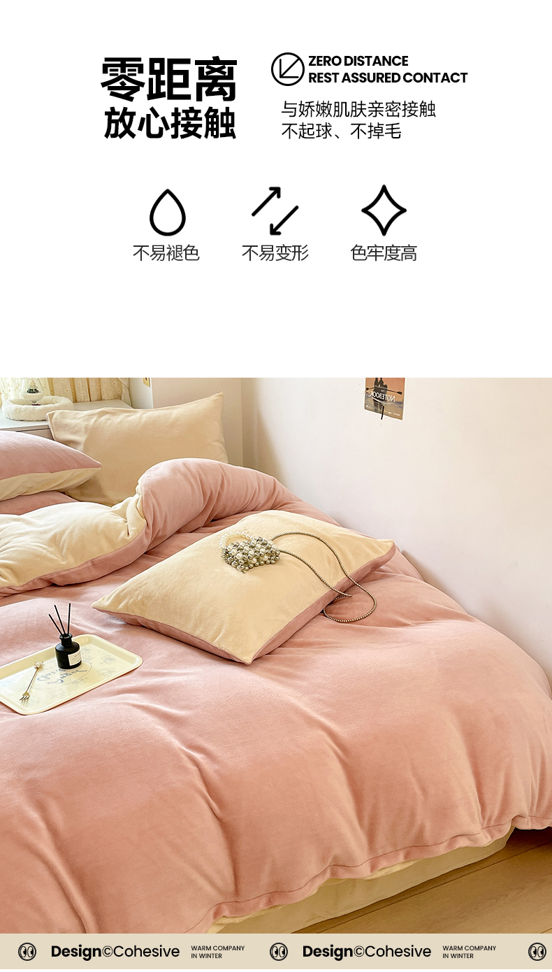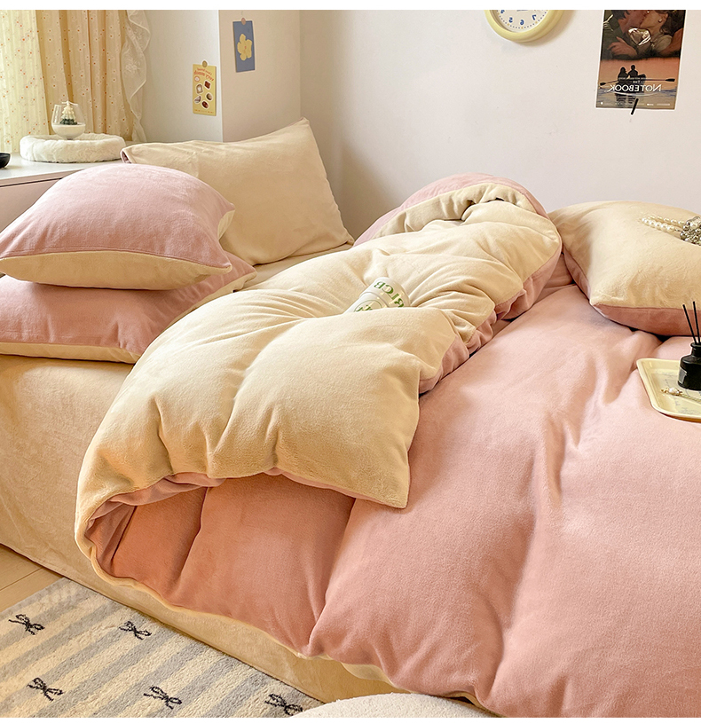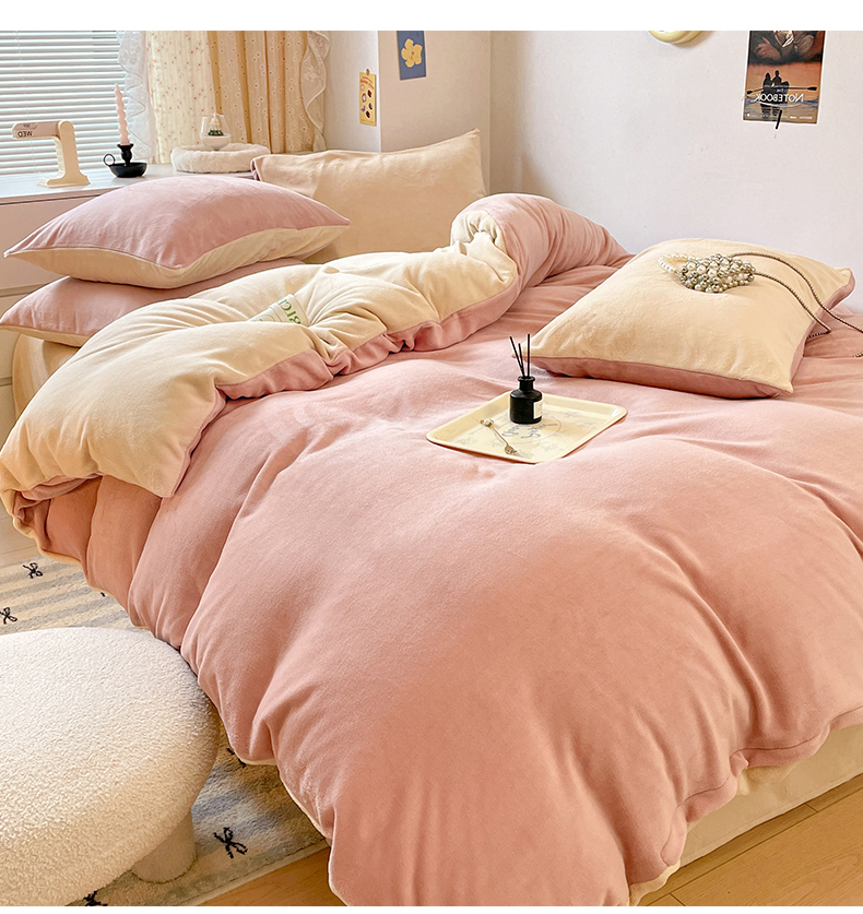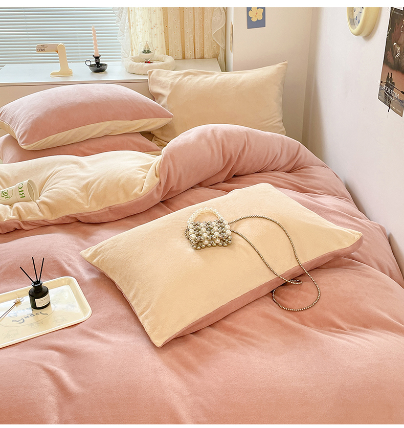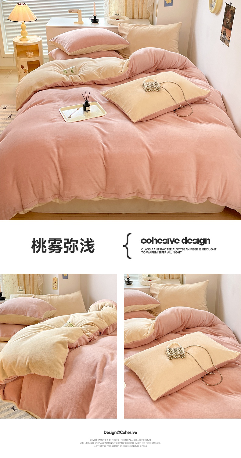 商品名称:寐眠 新款牛奶绒纯色双拼四件套-风格二 桃雾弥浅