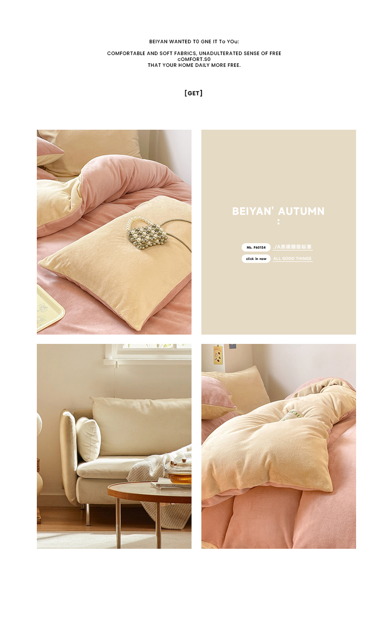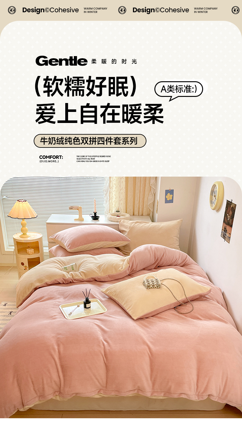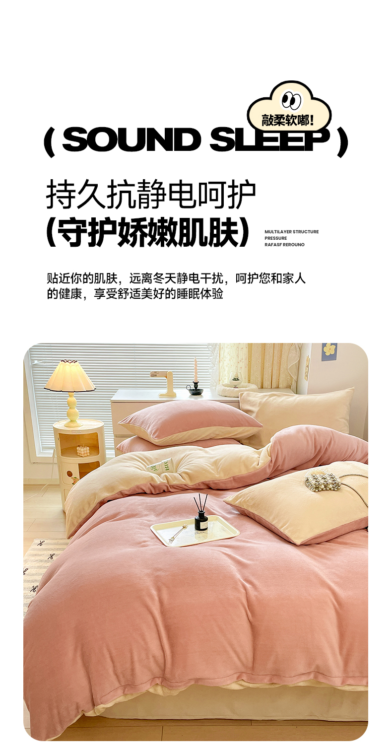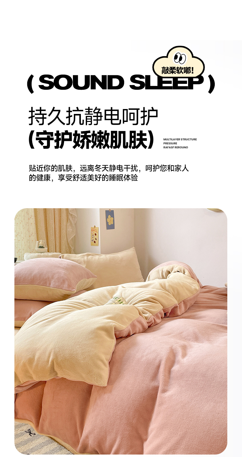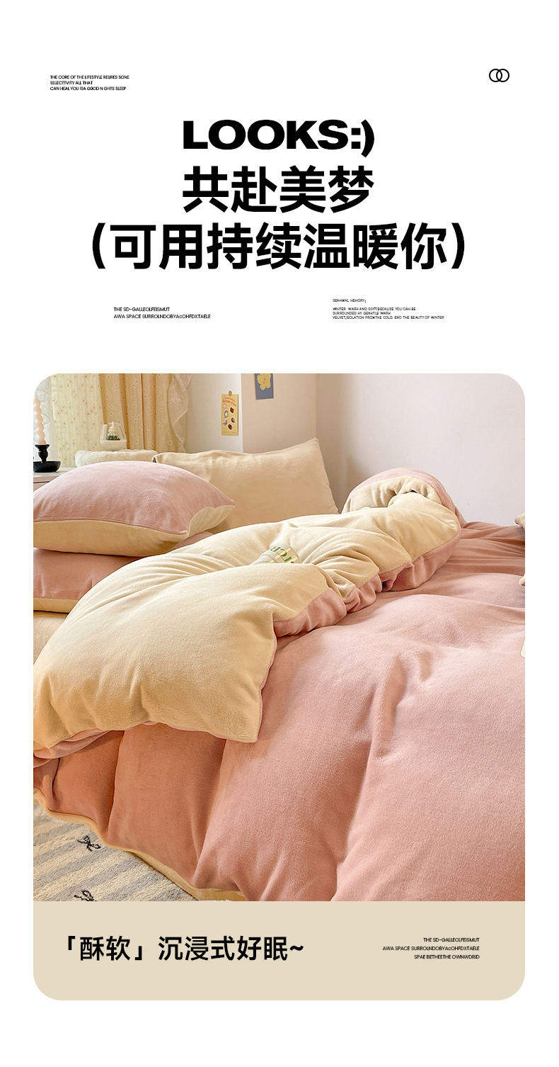 商品名称:寐眠 新款牛奶绒纯色双拼四件套-风格二 桃雾弥浅