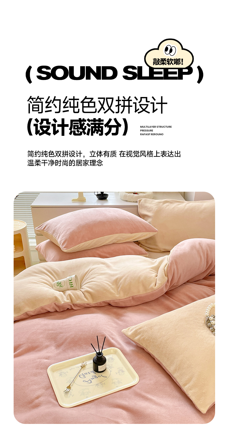 寐眠 新款牛奶绒纯色双拼四件套-风格二 桃雾弥浅