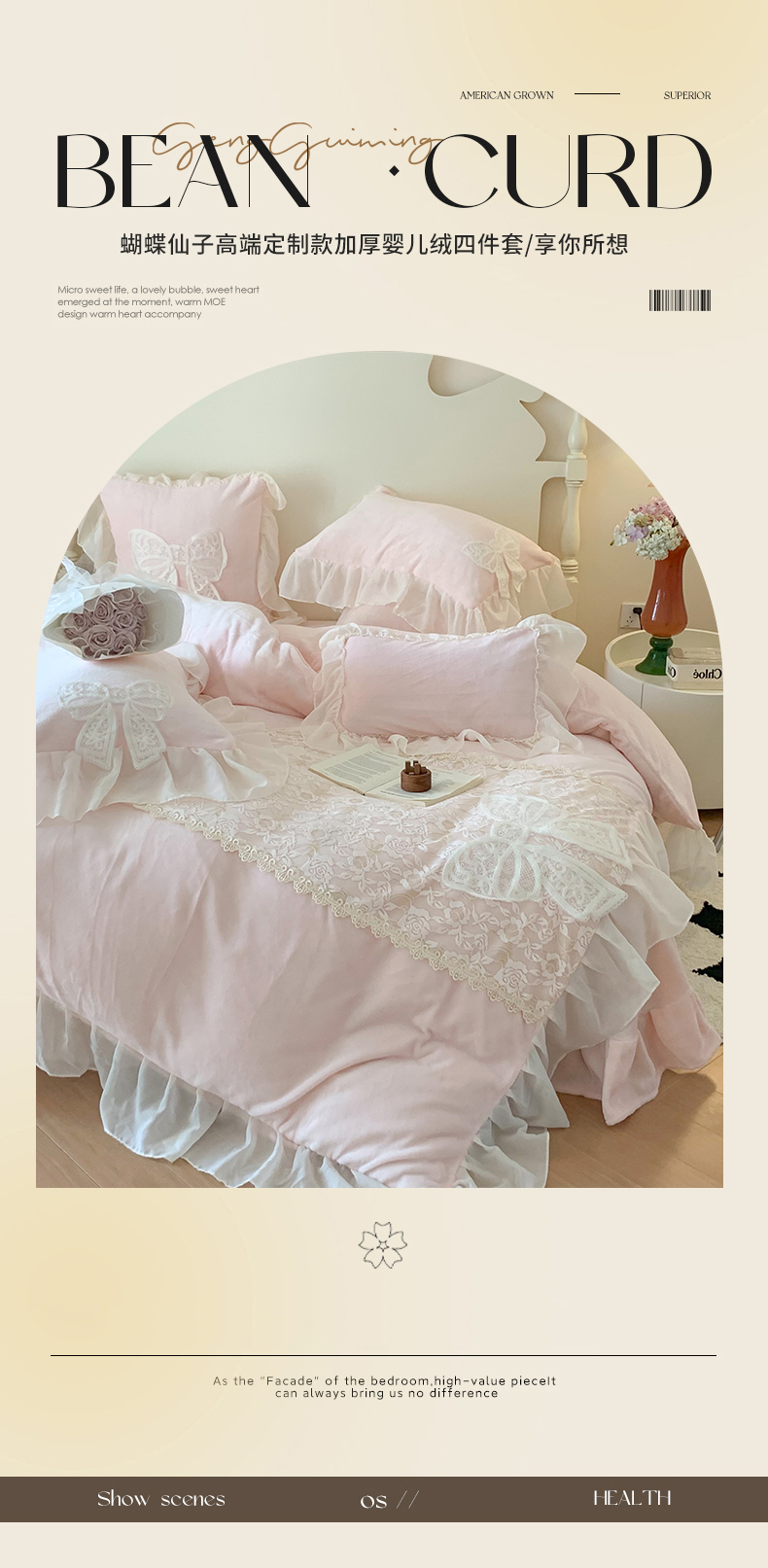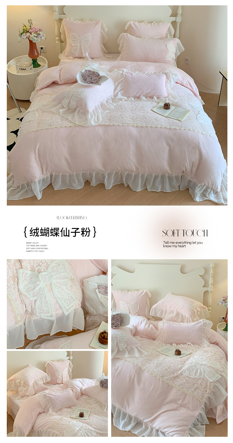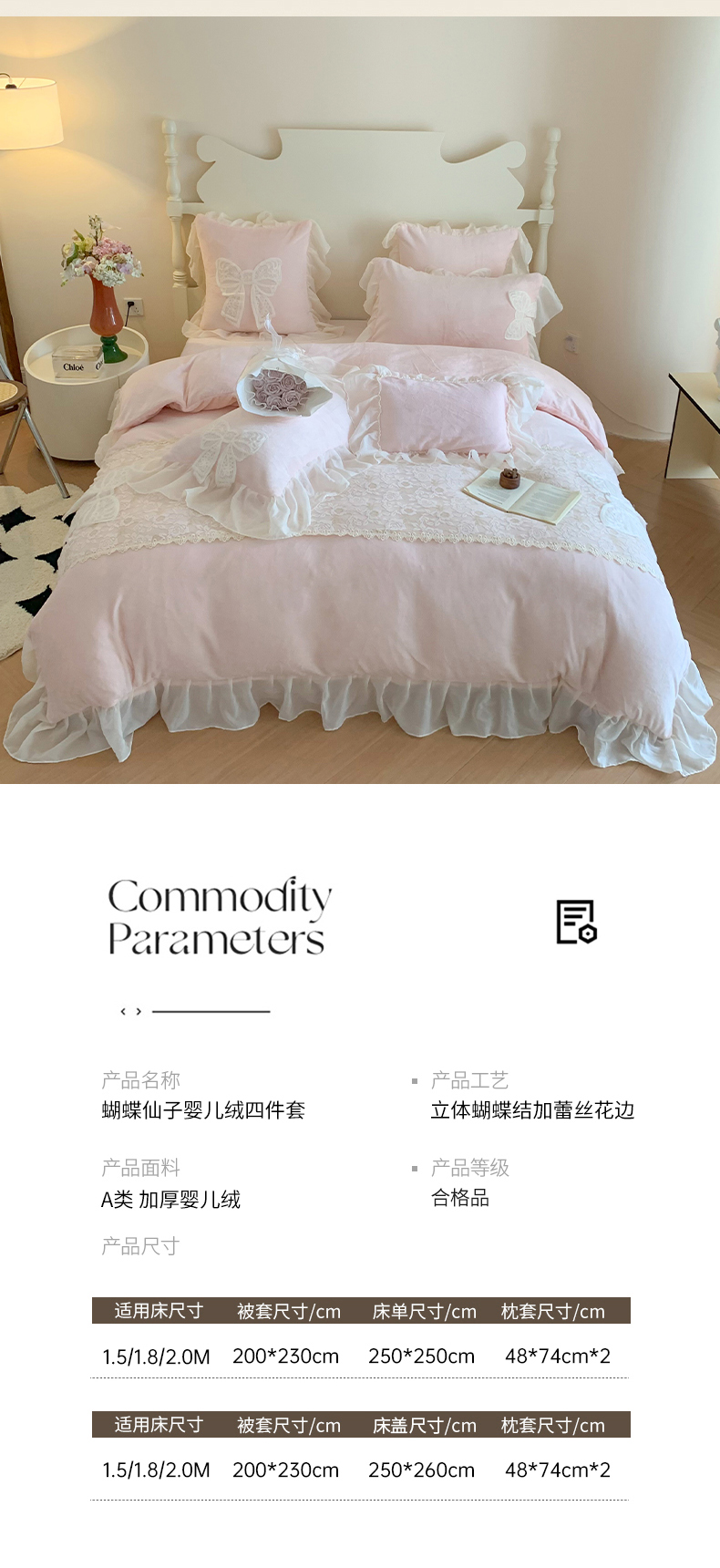商品名称:吾欢心 2024新款公主风蝴蝶仙子加厚婴儿绒牛奶绒四件套床单款床盖款 绒蝴蝶仙子粉