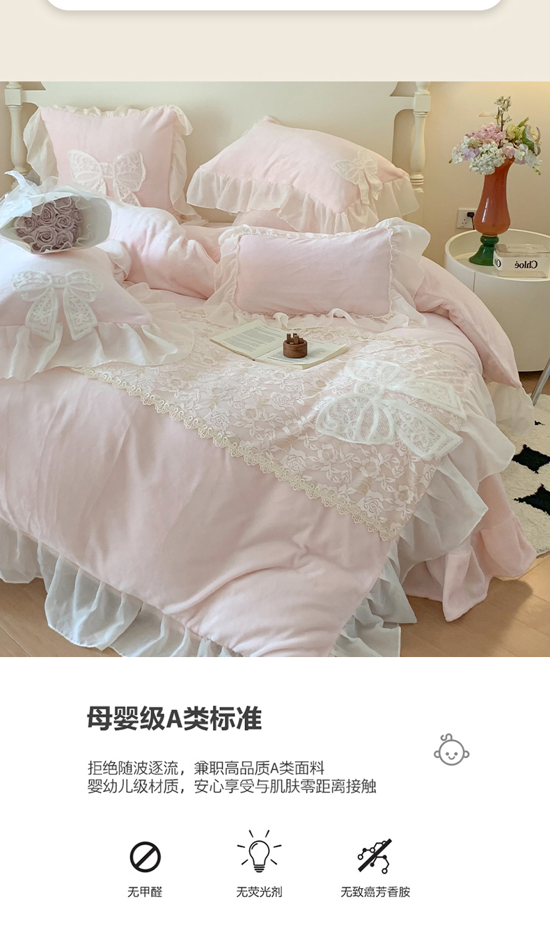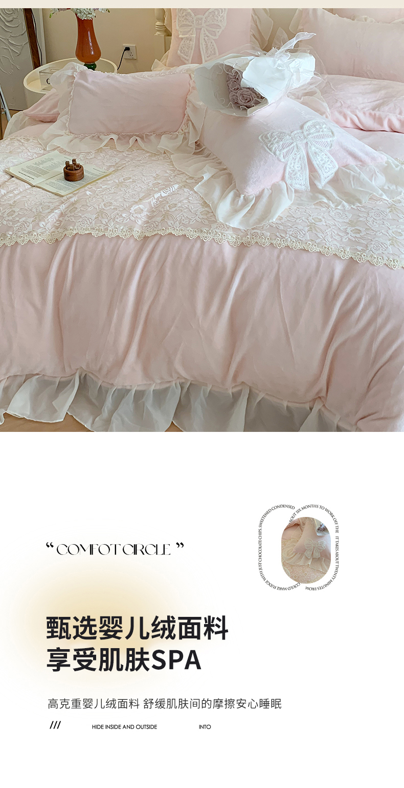 (总)吾欢心 2025秋冬新款加厚雕花绒婴儿绒安娜贝尔系列法式双层花边四件套,安娜贝尔白,安娜贝尔粉,安娜贝尔咖,安娜贝尔蓝,安娜贝尔绿,安娜贝尔紫