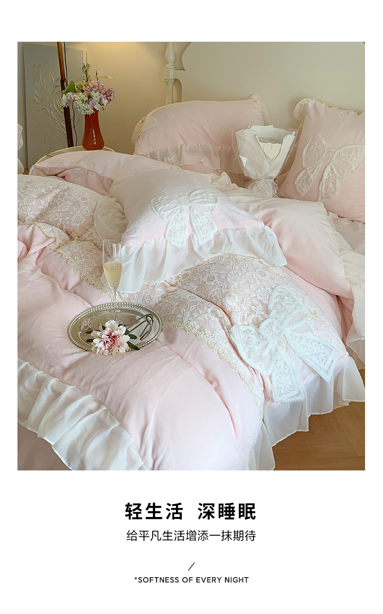 (总)吾欢心 2025新款糯小棉立体蝴蝶花边四件套-蝶恋花系列,蝶恋花白,蝶恋花粉,蝶恋花黄,蝶恋花咖,蝶恋花蓝,蝶恋花绿,蝶恋花紫