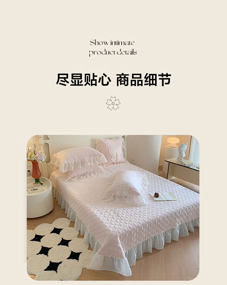 (总)吾欢心 2025新款公主风雪纺边四季通用夹棉床盖,床盖白,床盖粉,床盖黄,床盖咖,床盖绿,床盖抹茶绿,床盖紫