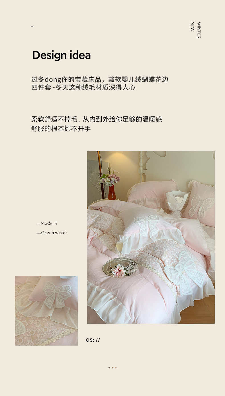 (总)吾欢心 2025新款法式蕾丝款加厚皮草绒四件套,艾莉薇,蝴蝶结,美拉德,梦幻蝶舞,莫奈香颂,索菲亚