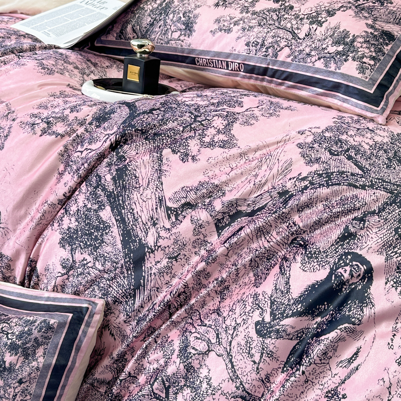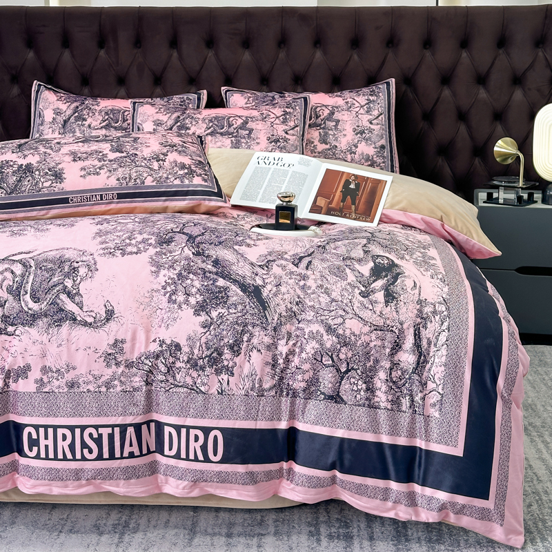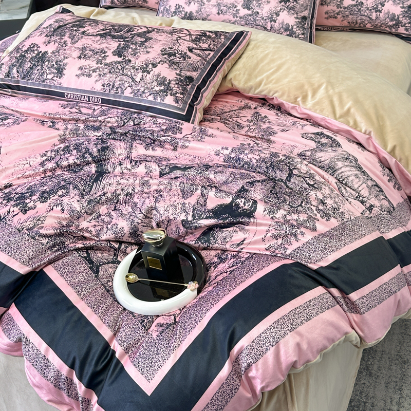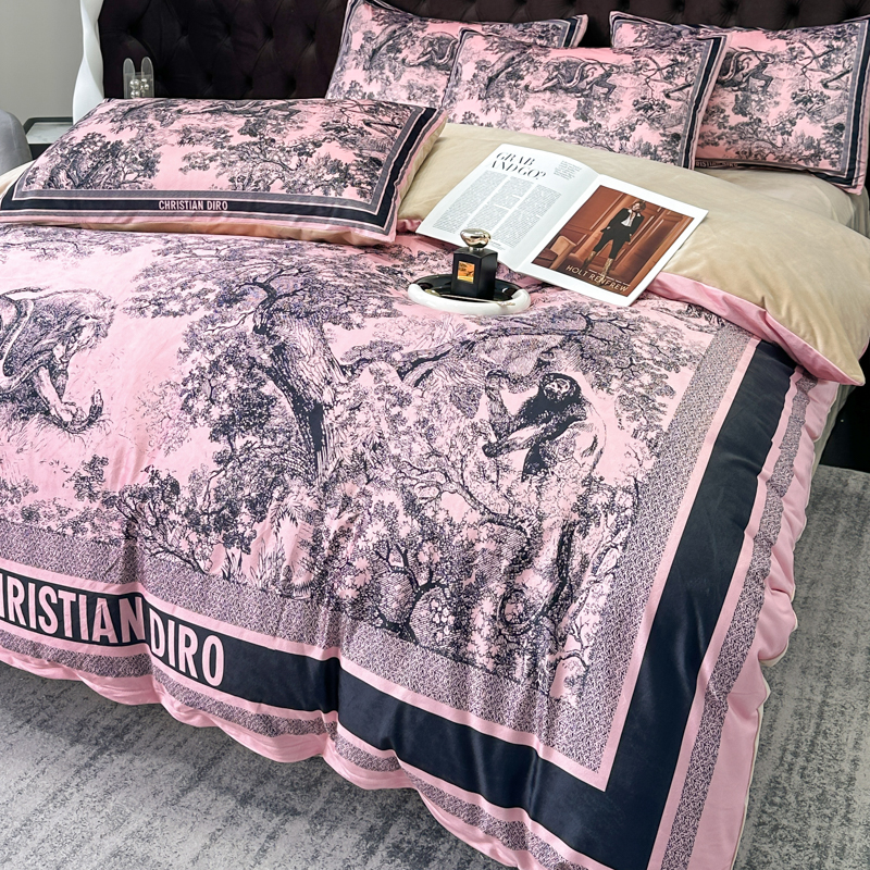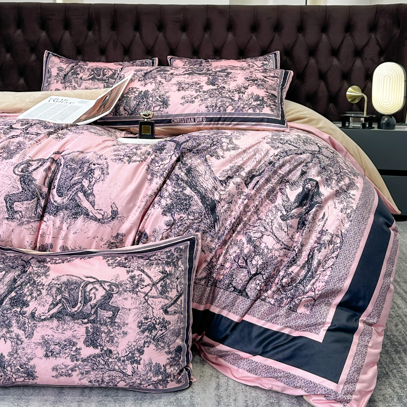 (总)色鬼布艺高端家居主号 2025新款轻奢亲肤纯棉数码印花网红热款四件套,豹纹香,白金V,白香花,大H,黑白迪,黑白V,灰迪,咖古,克莱因,慕斯小姐,山茶花,星空