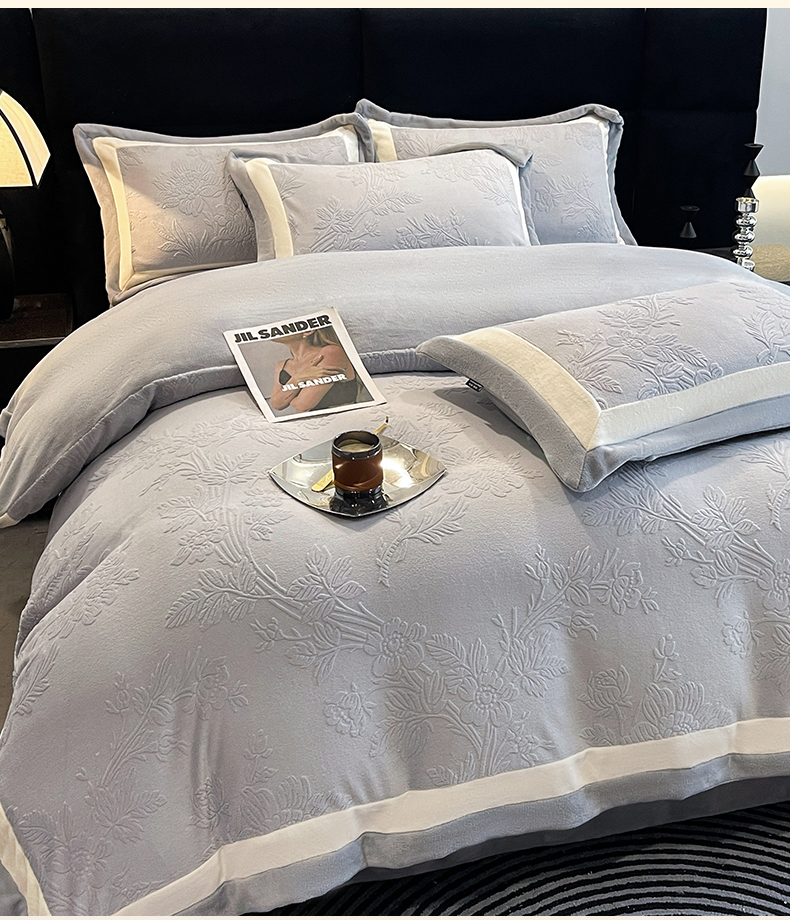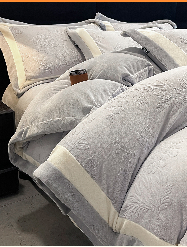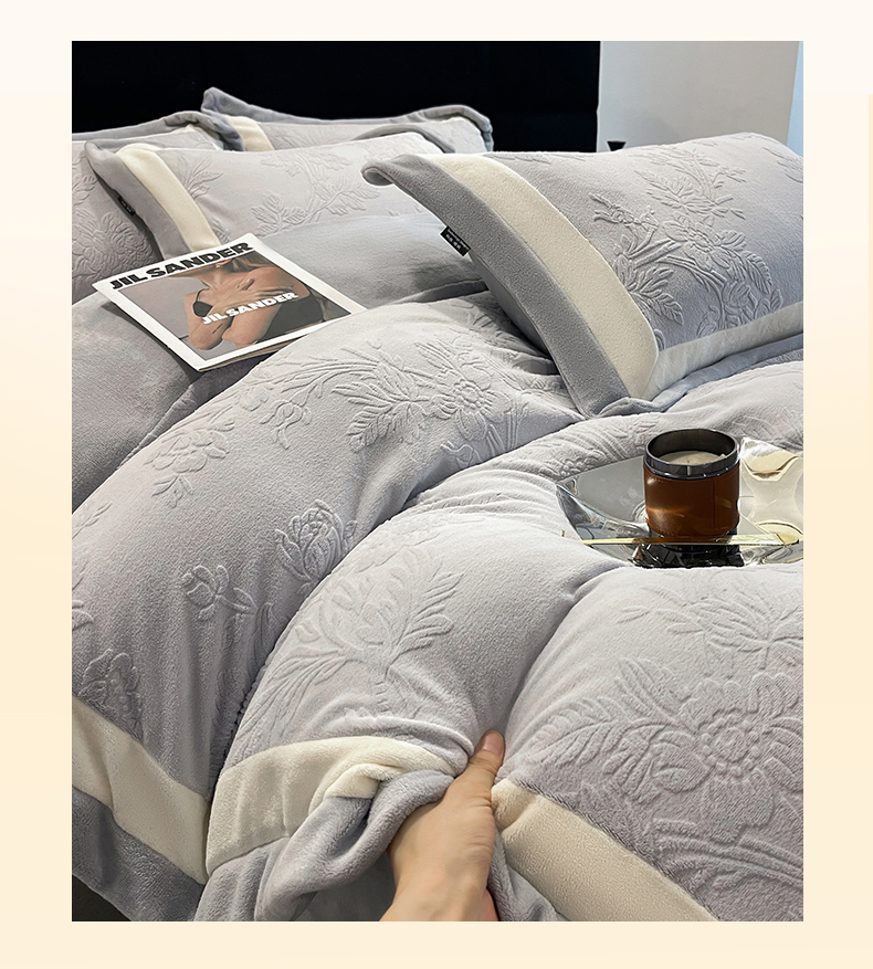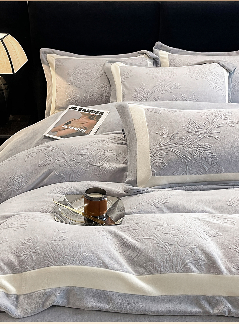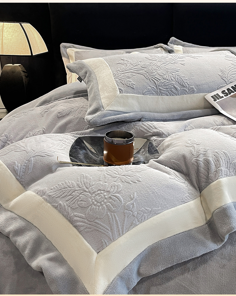 极简 2024新款雕花牛奶绒宽边四件套 花语-银灰