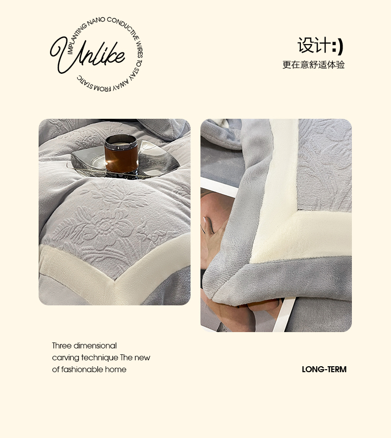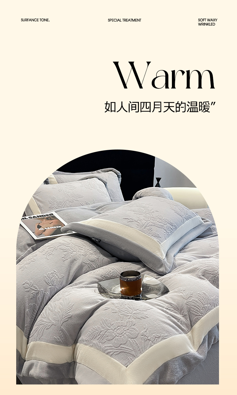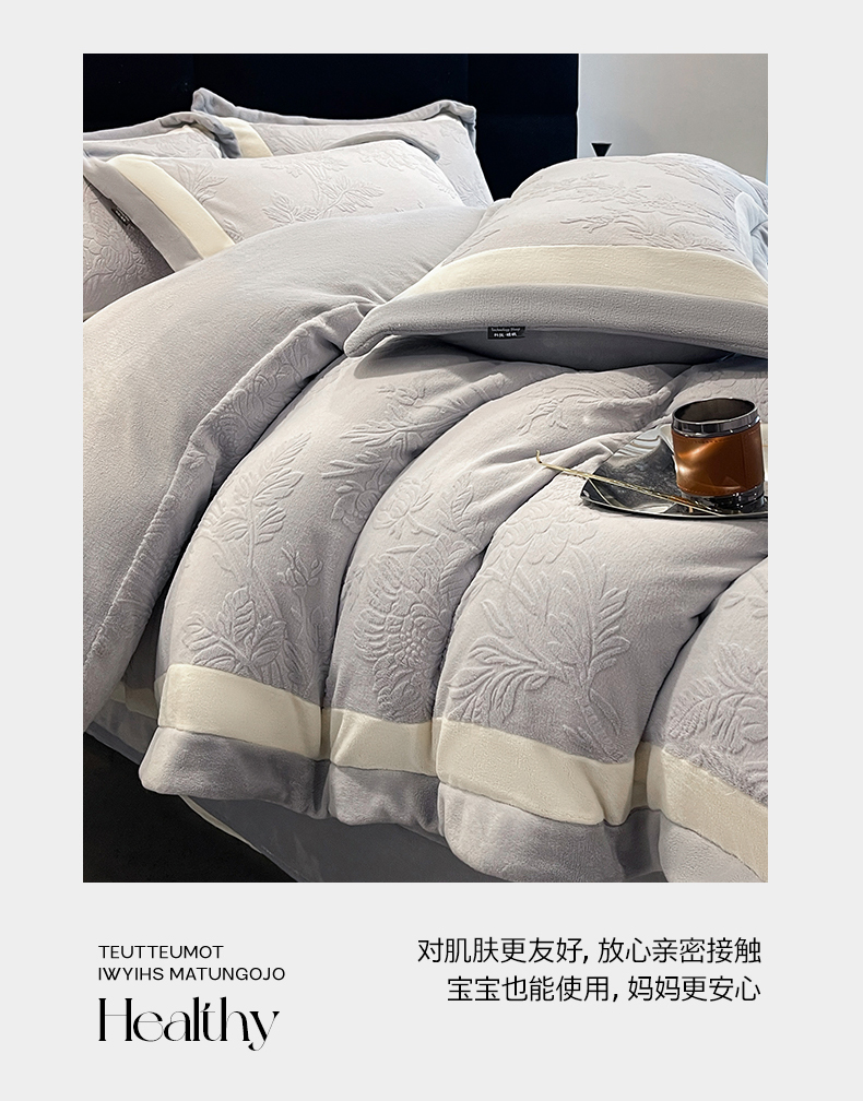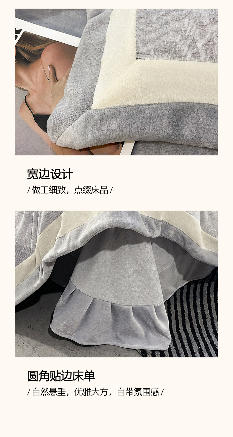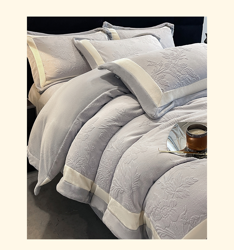 极简 2024新款雕花牛奶绒宽边四件套 花语-银灰
