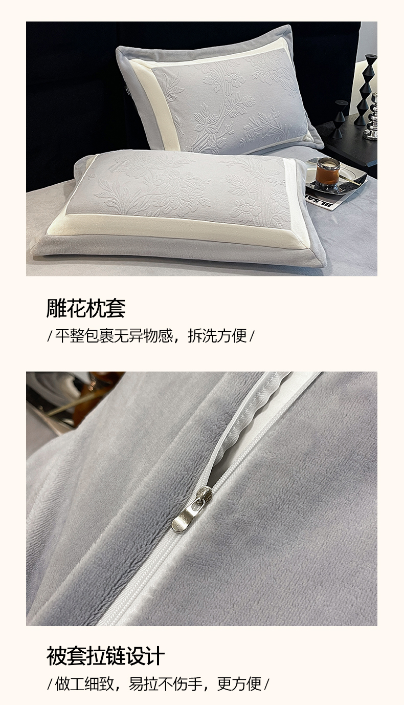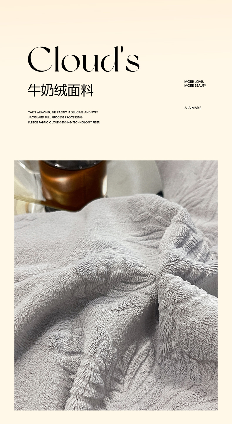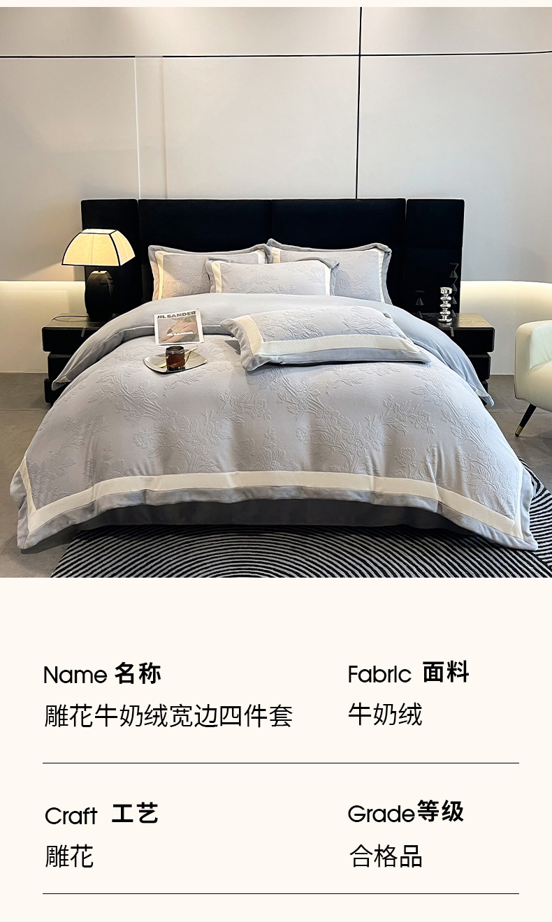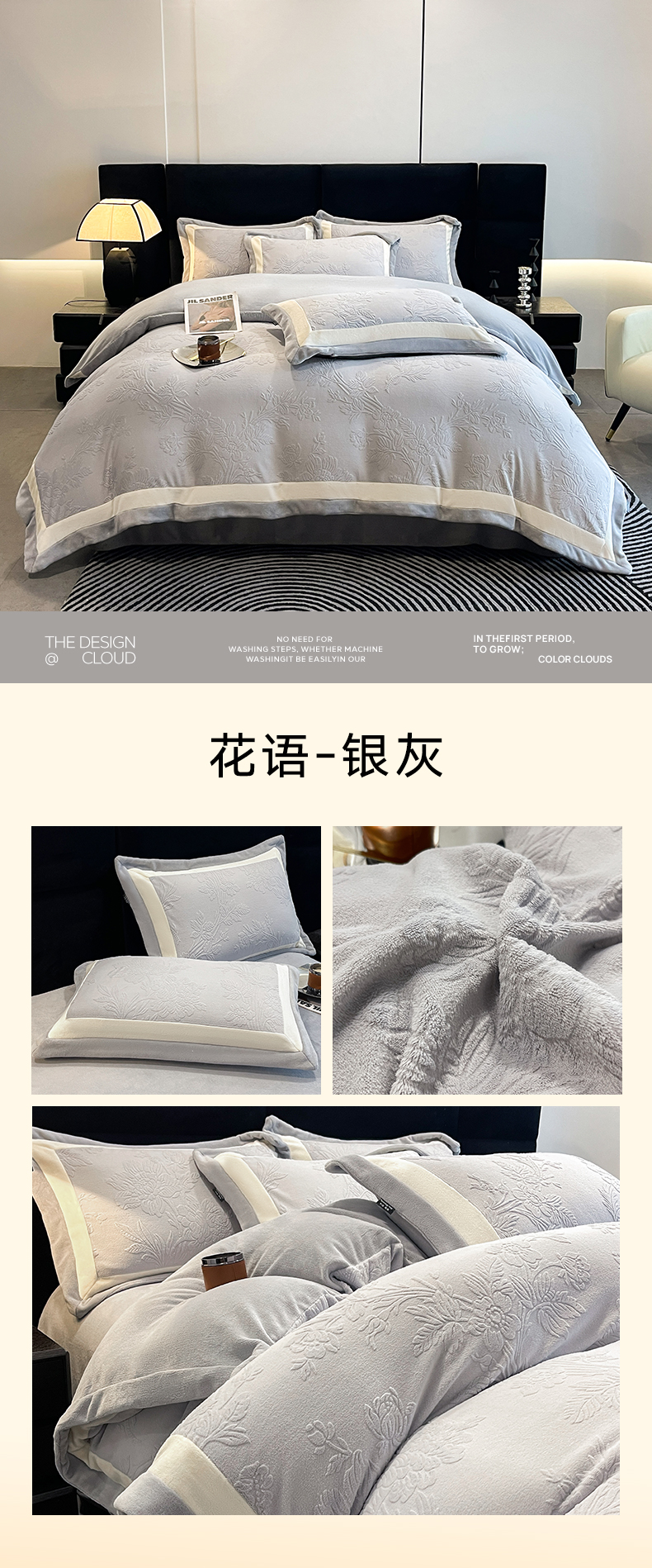 商品名称:极简 2024新款雕花牛奶绒宽边四件套 花语-银灰