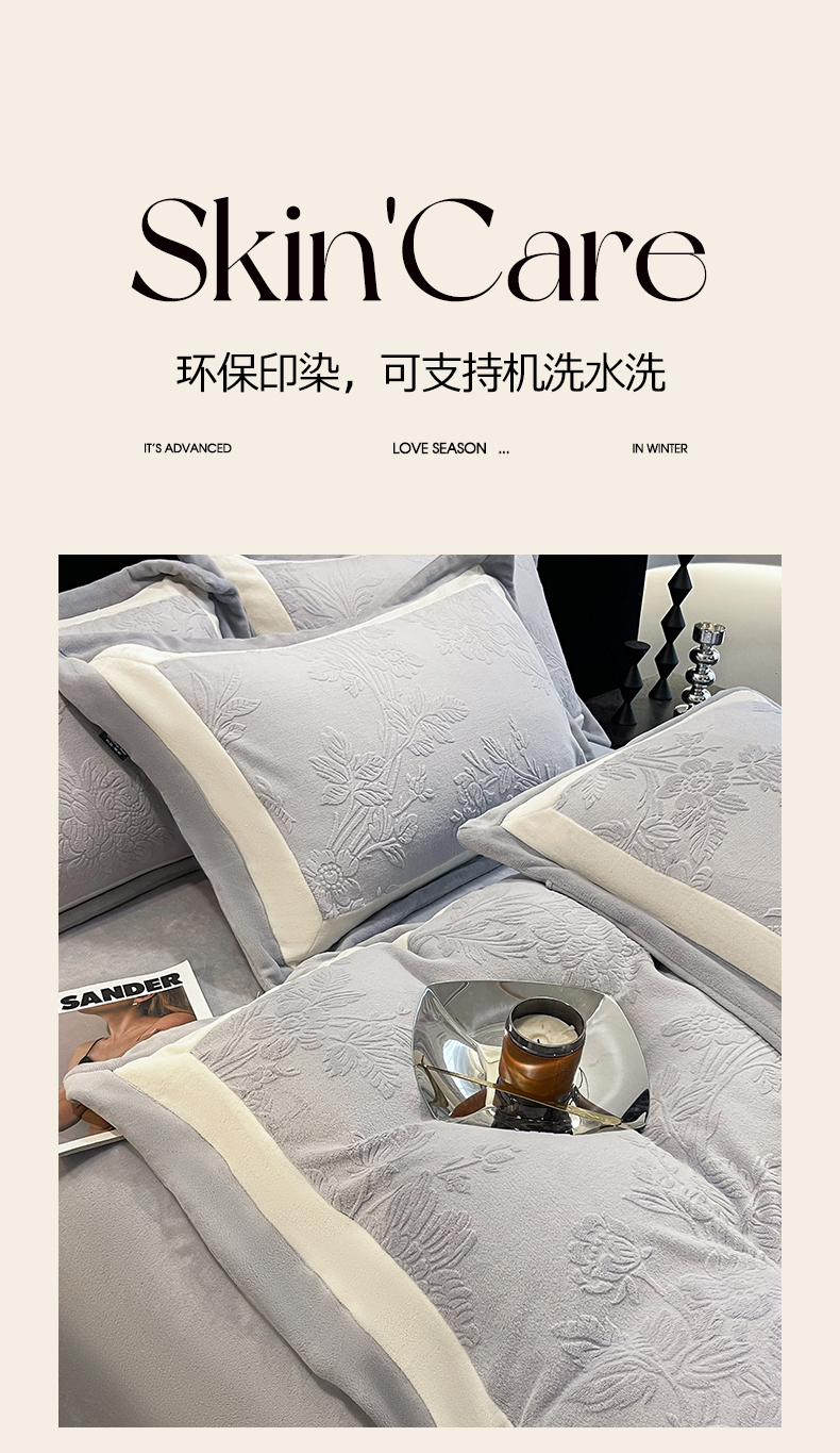 (总)极简 2024新款兔毛宽包边立体雕好牛奶绒四件套-米莱,米莱-冰蓝,米莱-草绿,米莱-豆蔻紫,米莱-湖蓝,米莱-米月白,米莱-藕粉,米莱-鸭蛋灰
