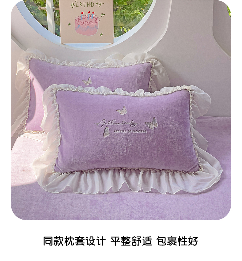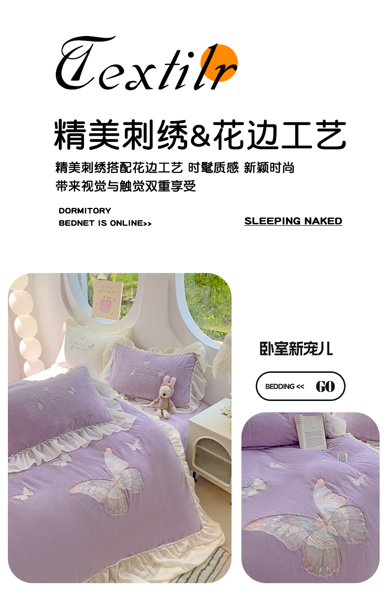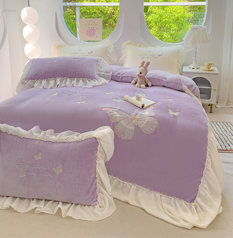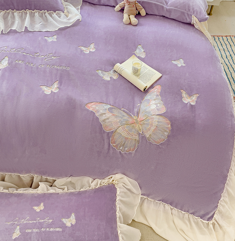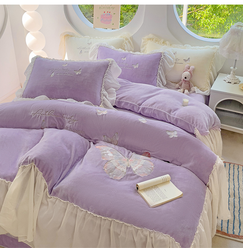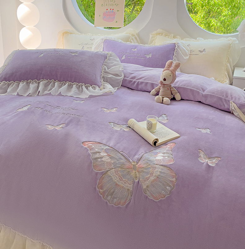 娜娜 2024新款法式花边牛奶绒刺绣四件套-花蕊-花香引蝶系列 花香引蝶-紫