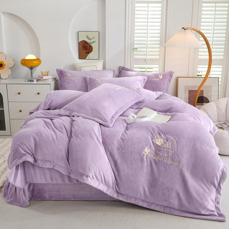 商品名称:畅畅家纺 2024新款宽边高克重冬季9斤加厚牛奶绒绣花四件套 紫色