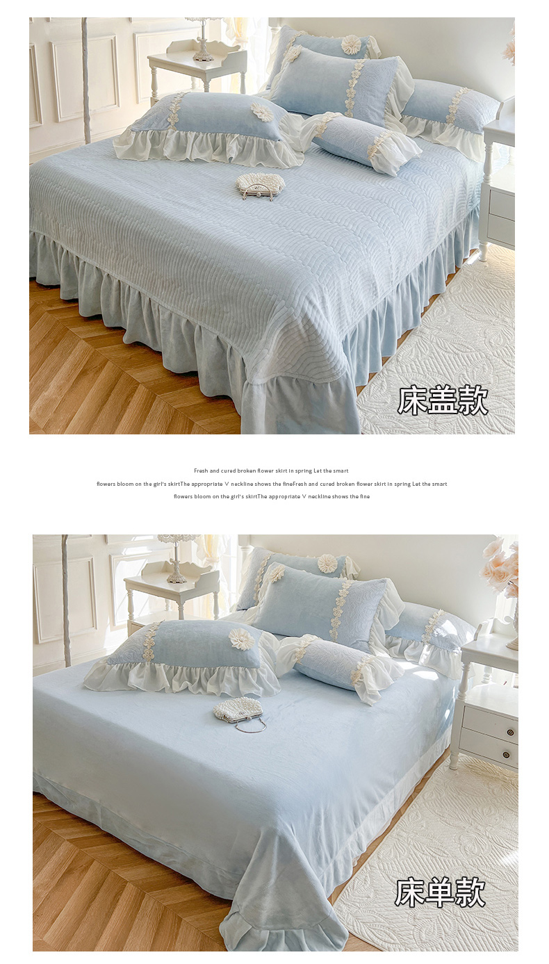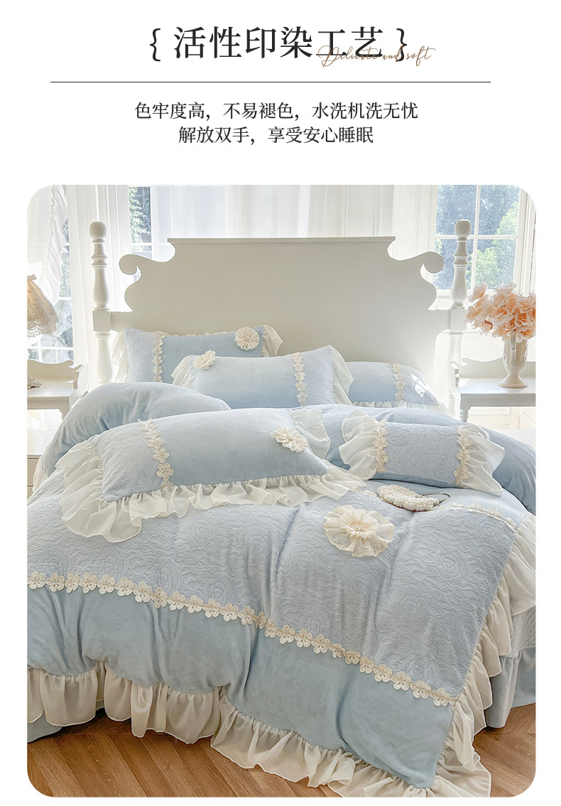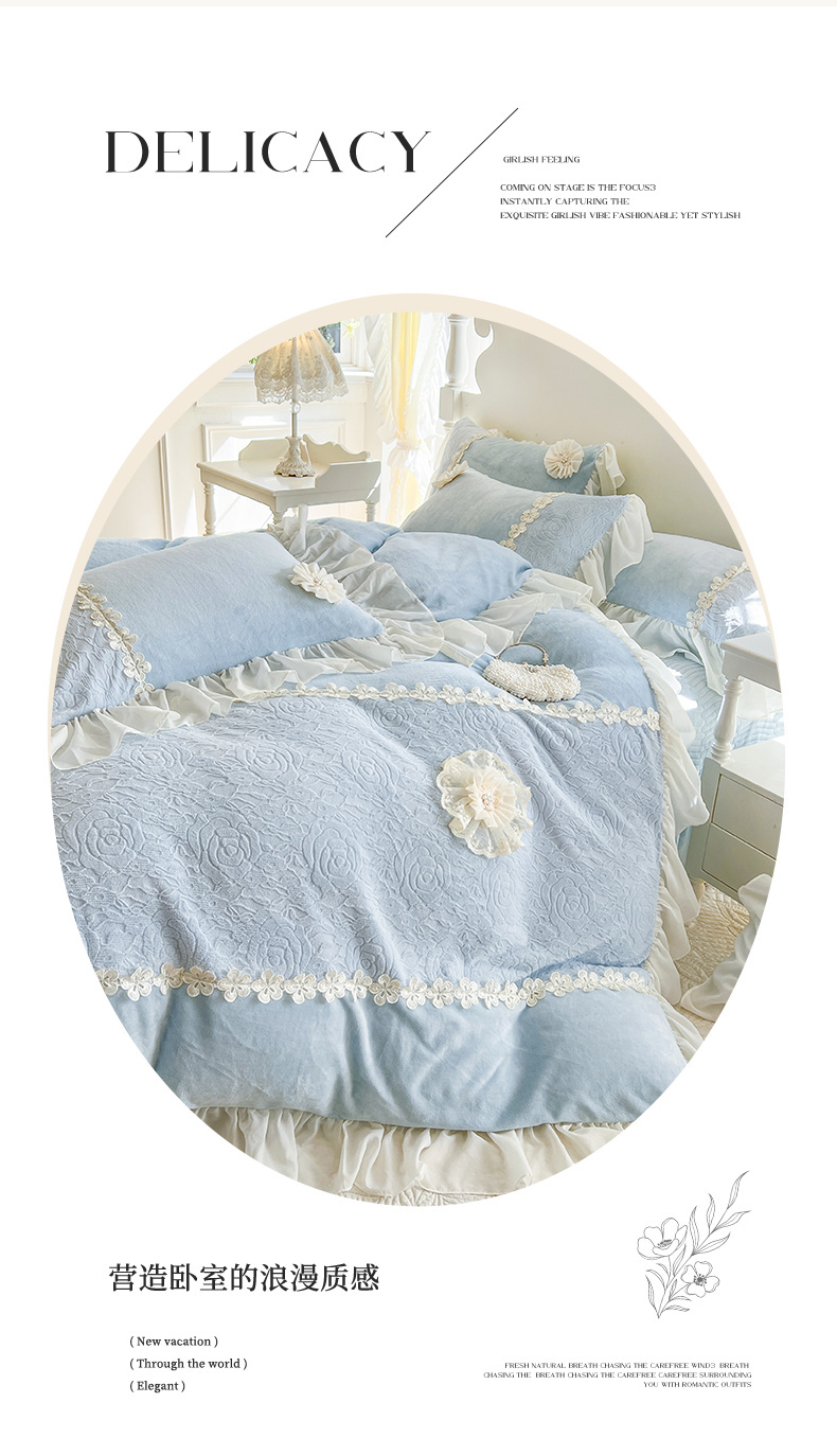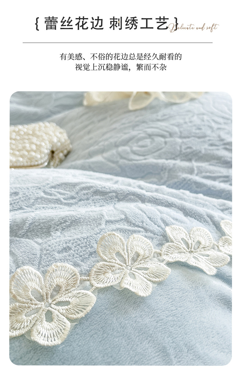 乐朵家居 2024新款 梦妮莎 牛奶绒床单款床盖款四件套 蓝(控价 单269 夹棉299)