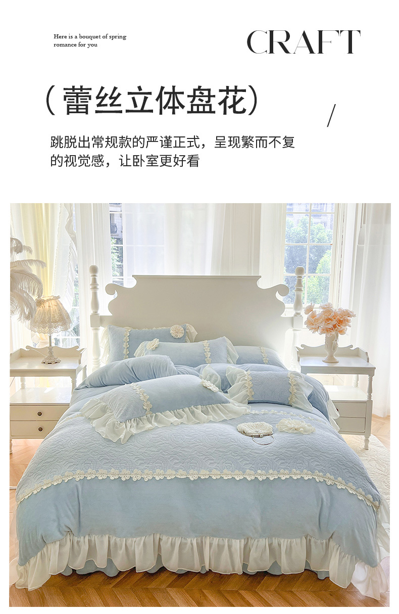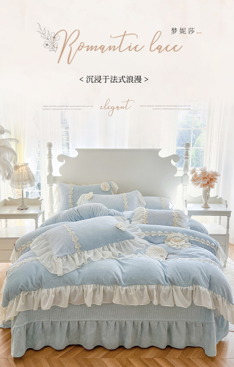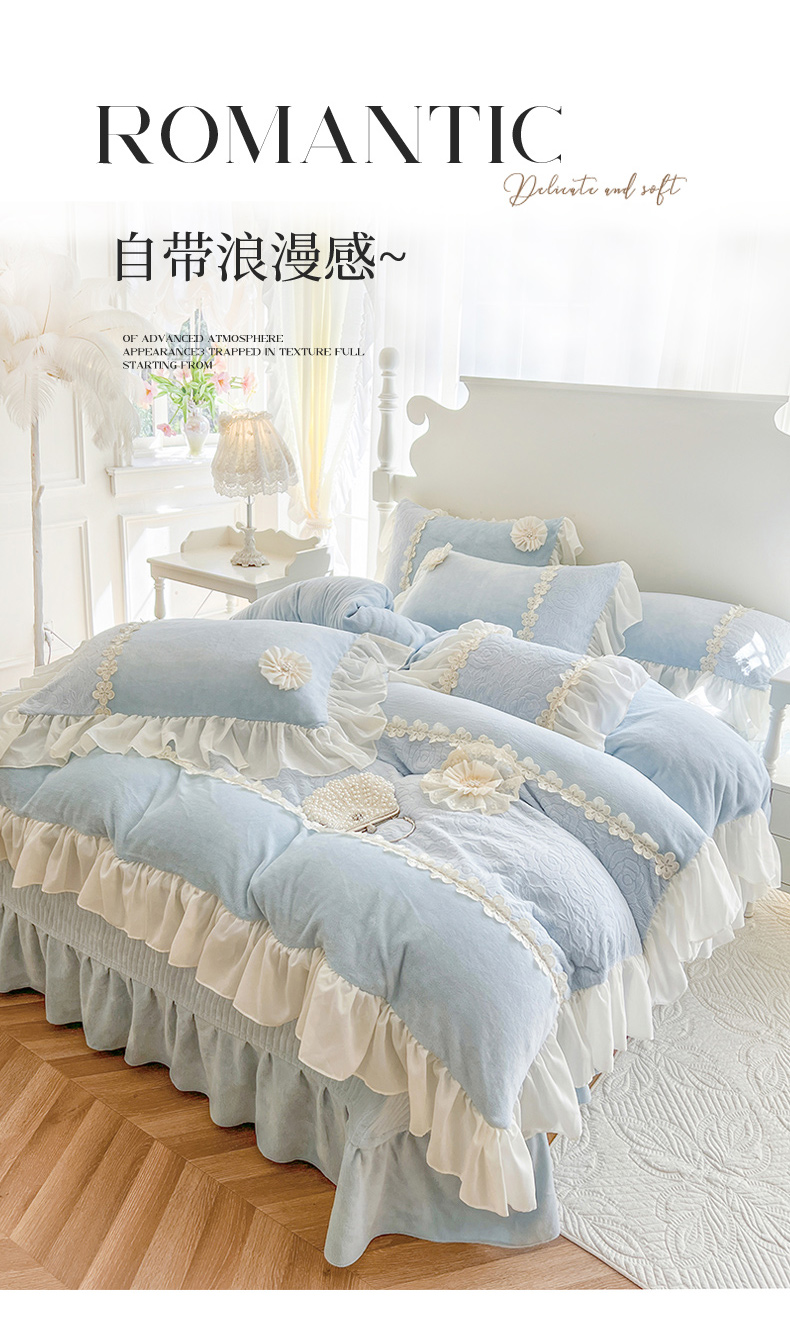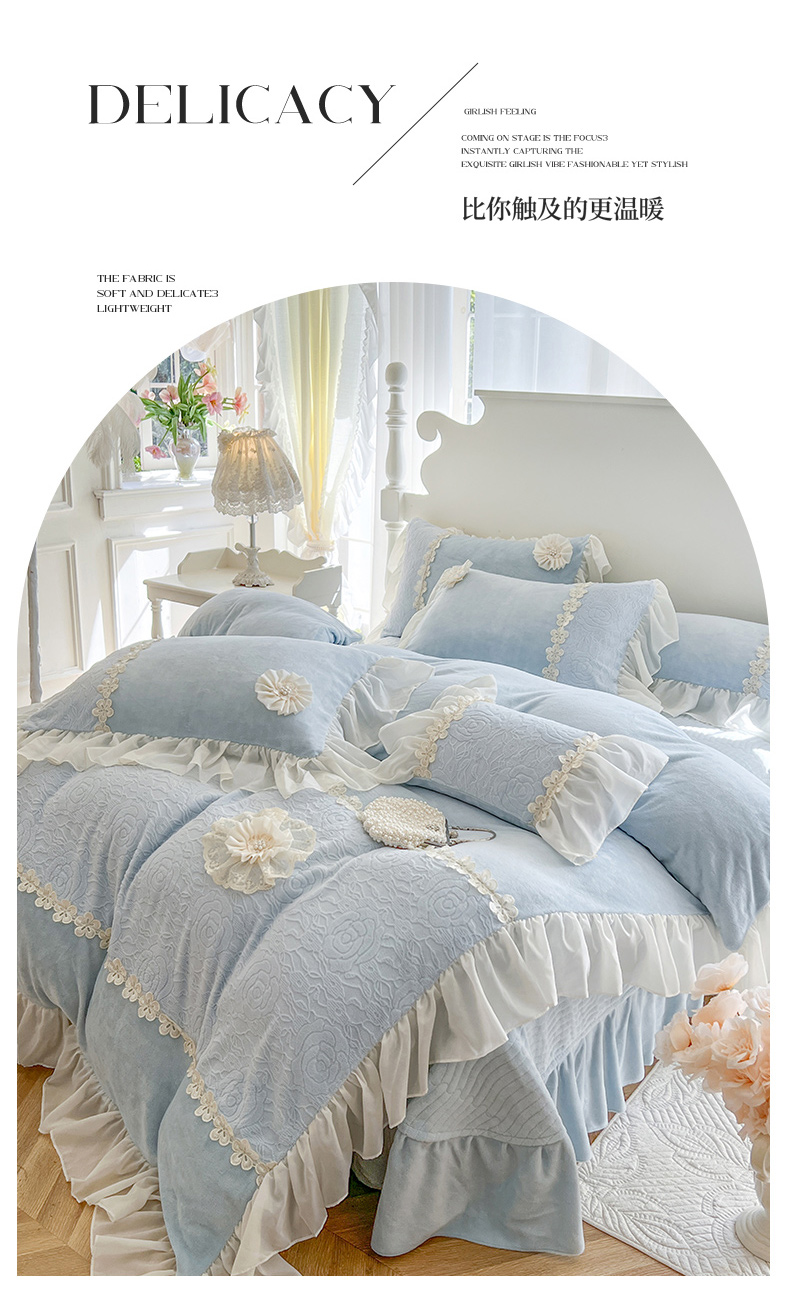 乐朵家居 2024新款 梦妮莎 牛奶绒床单款床盖款四件套 蓝(控价 单269 夹棉299)