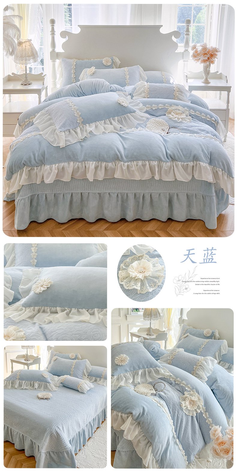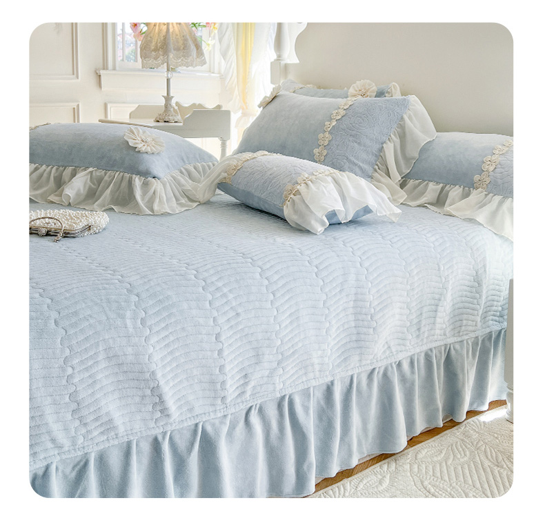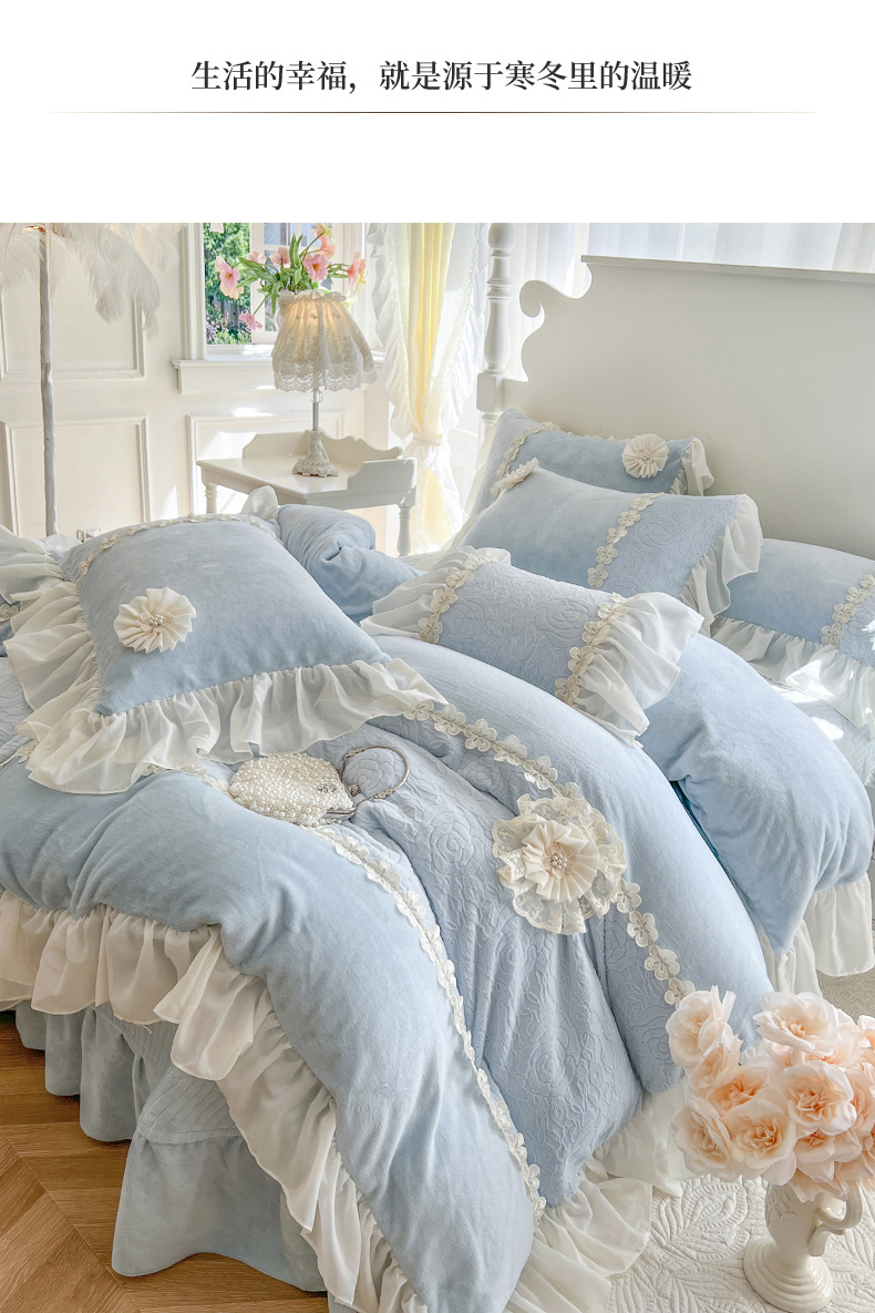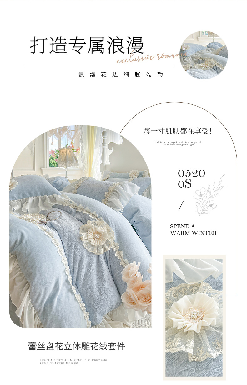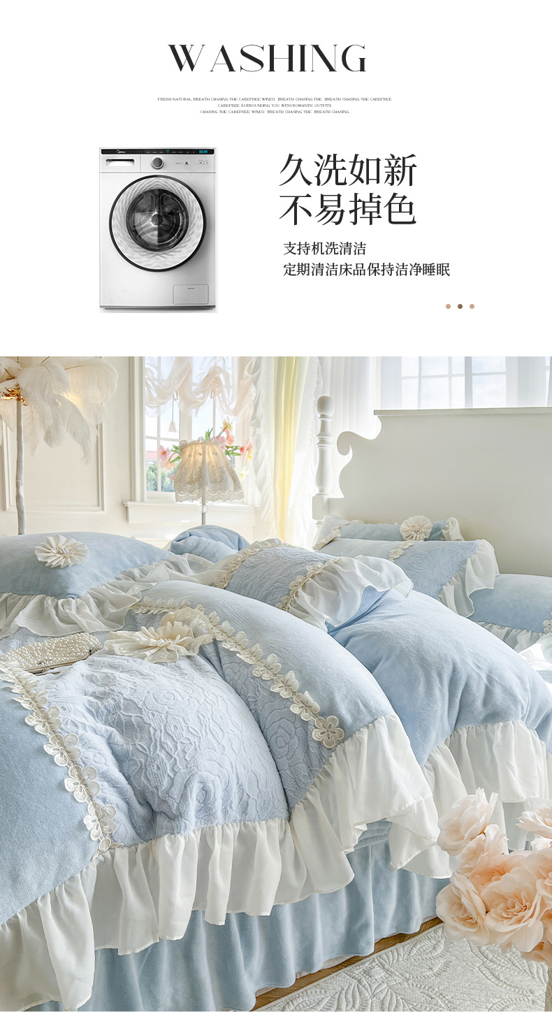 乐朵家居 2024新款 梦妮莎 牛奶绒床单款床盖款四件套 蓝(控价 单269 夹棉299)