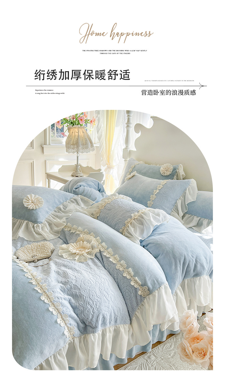 商品名称:乐朵家居 2024新款 梦妮莎 牛奶绒床单款床盖款四件套 蓝(控价 单269 夹棉299)