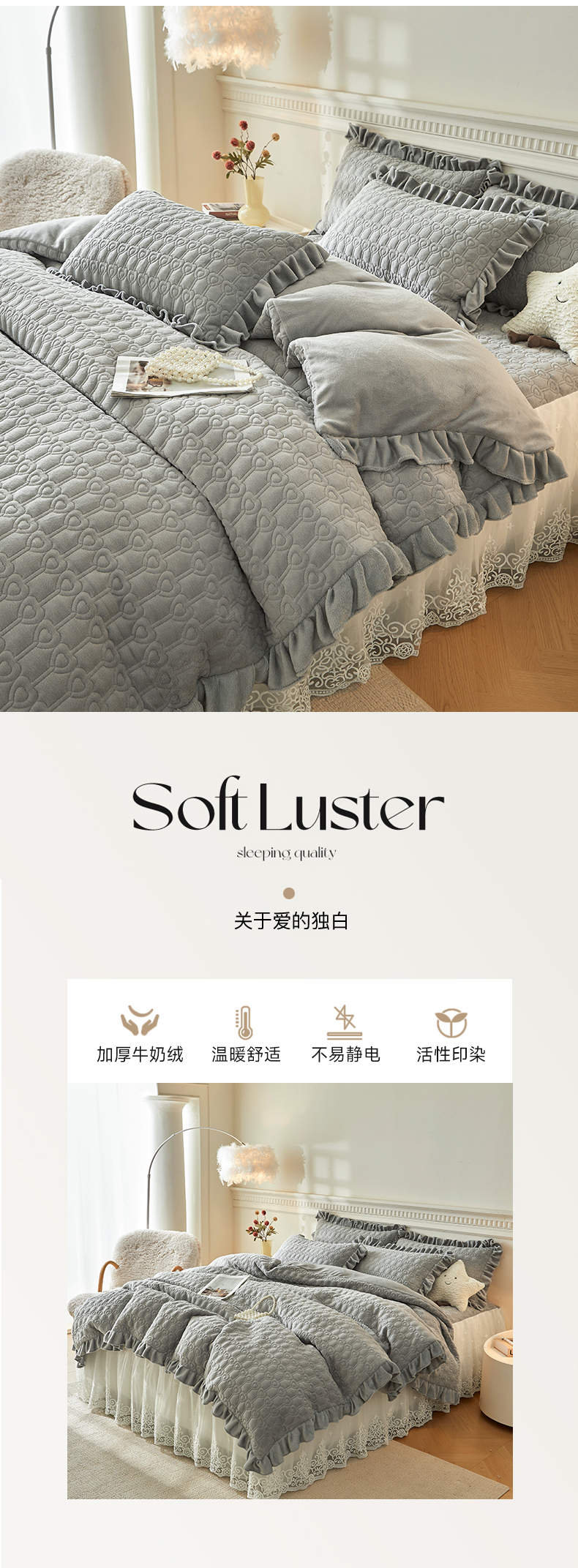 怡源梦 2024新款牛奶绒床裙四件套-甜心公主 甜心公主-灰色