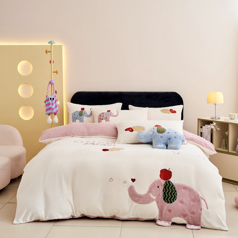 黛舒家居 2024新款240克臻棉绒立体贴布绣四件套 顽皮象粉