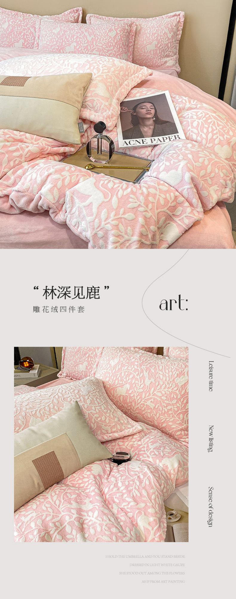 商品名称:金喜 2024新款加厚保暖230克高克重牛奶绒四件套雕花绒四件套-牛奶绒雕花系列 林深见鹿