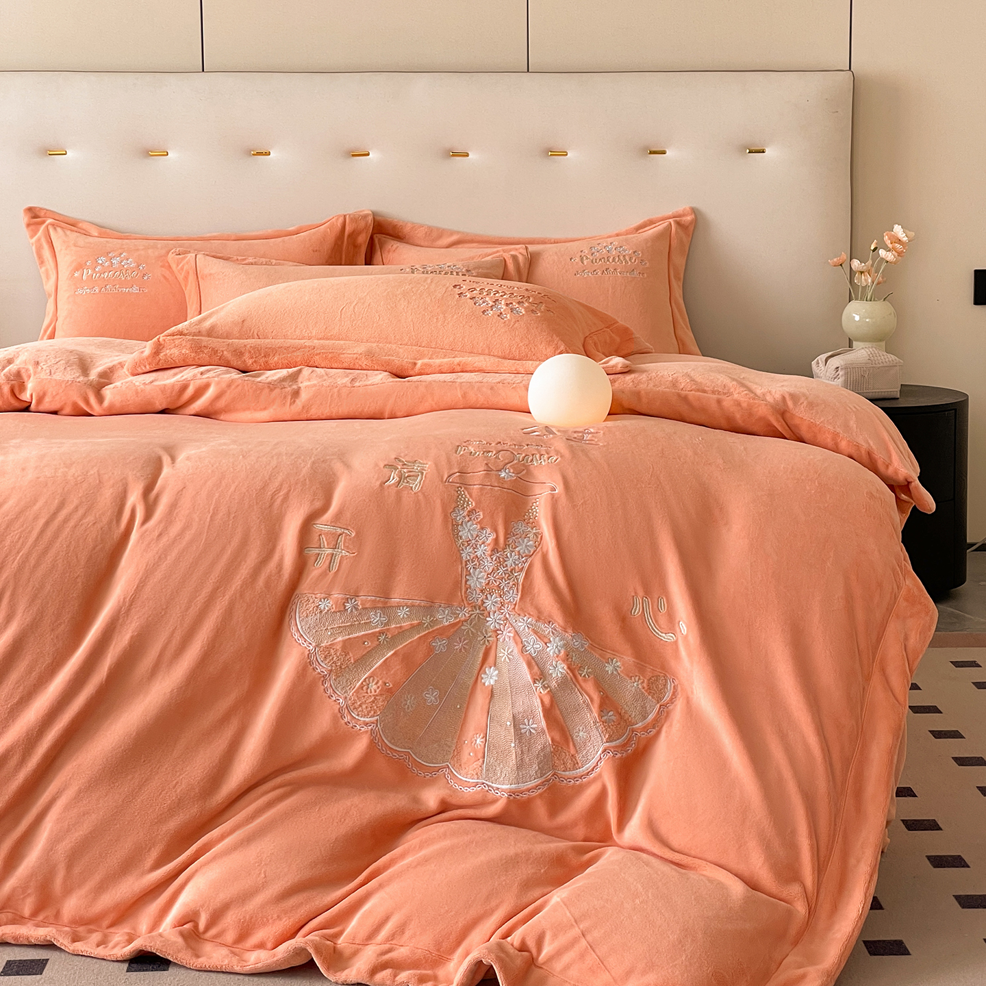 商品名称:新方向 2025新款全消光A类牛奶绒四件套-公主请开心2 公主请开心-桃玉