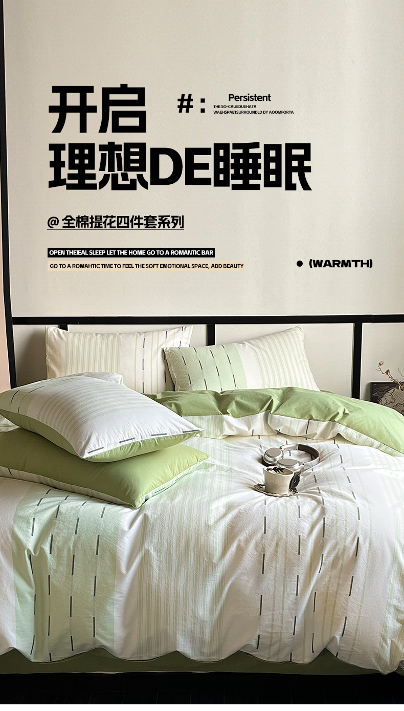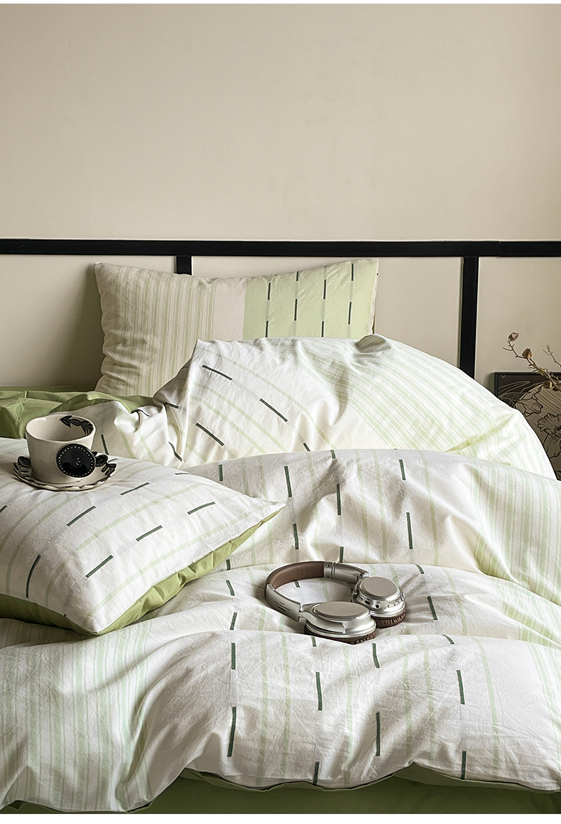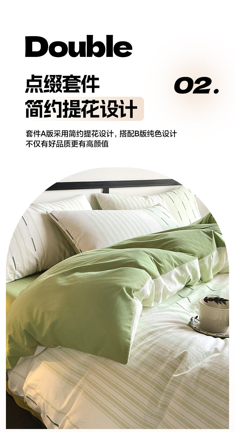 当前位置: 91家纺网 > 商品网购 > 床品套件 > 四件套 > 全棉普通四件套 > 雅居纺家纺 2024新款100%全棉简约提花四件套 如初-绿