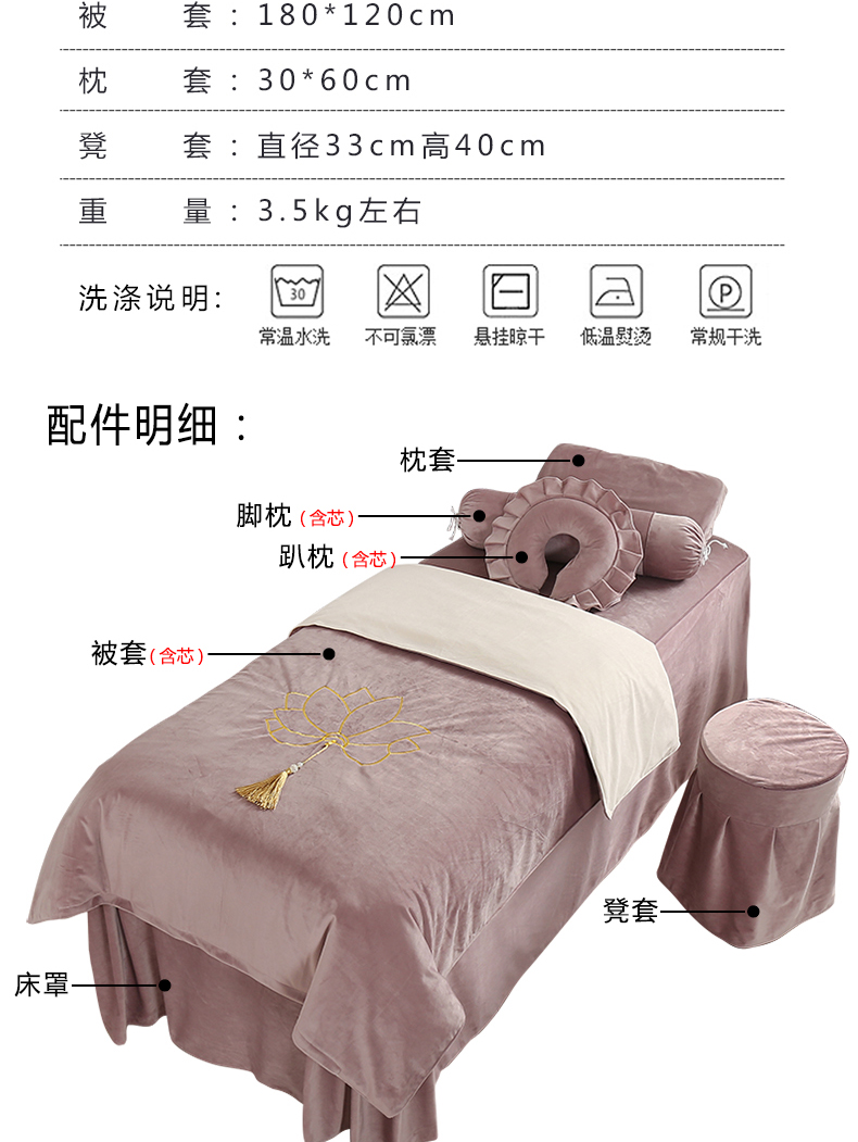 商品名称:(总)琪宝阁 2024新款丽丝绒美 容床罩套件-荷花