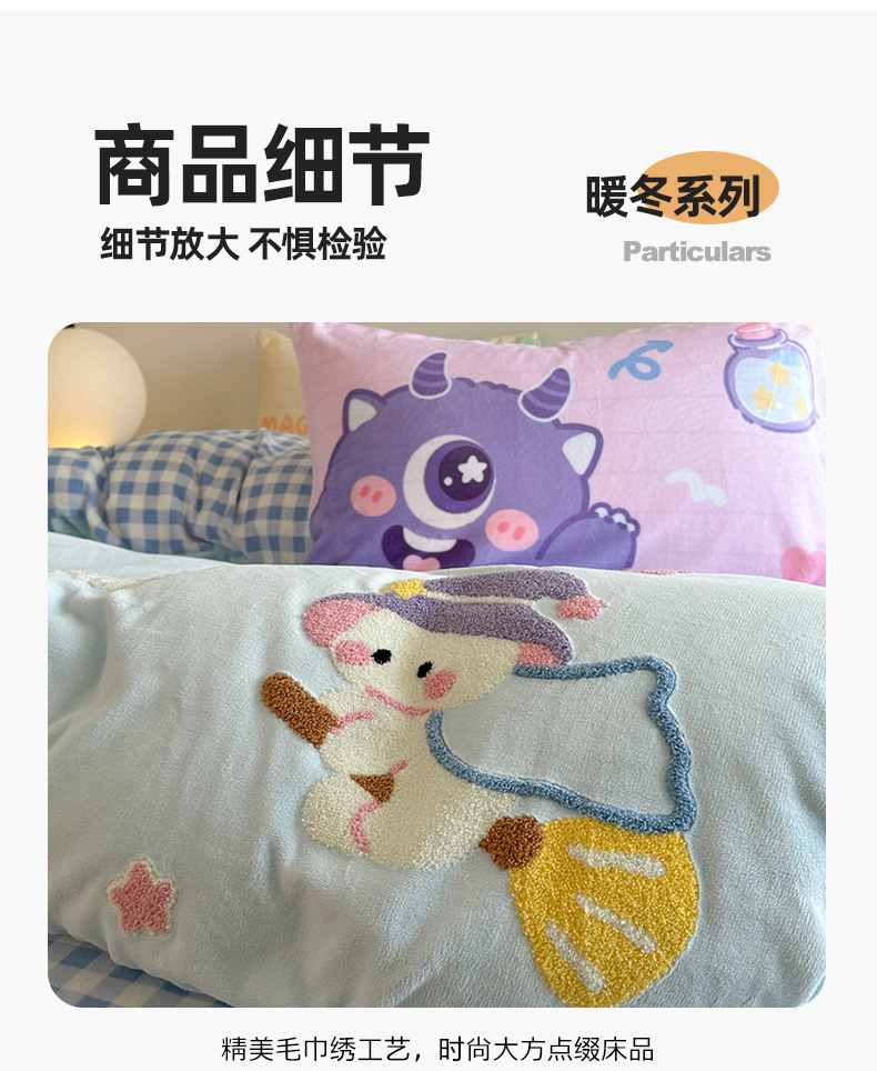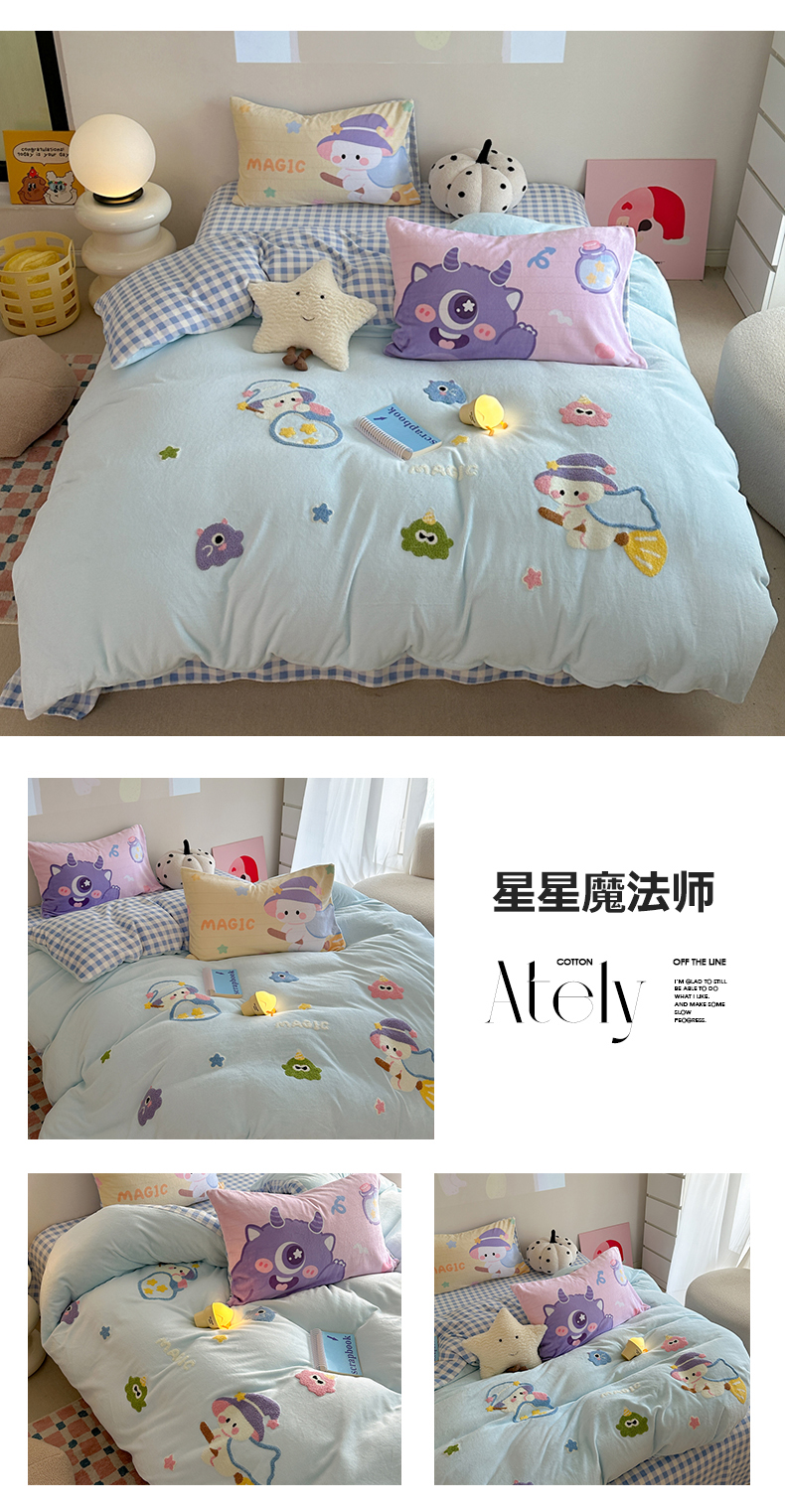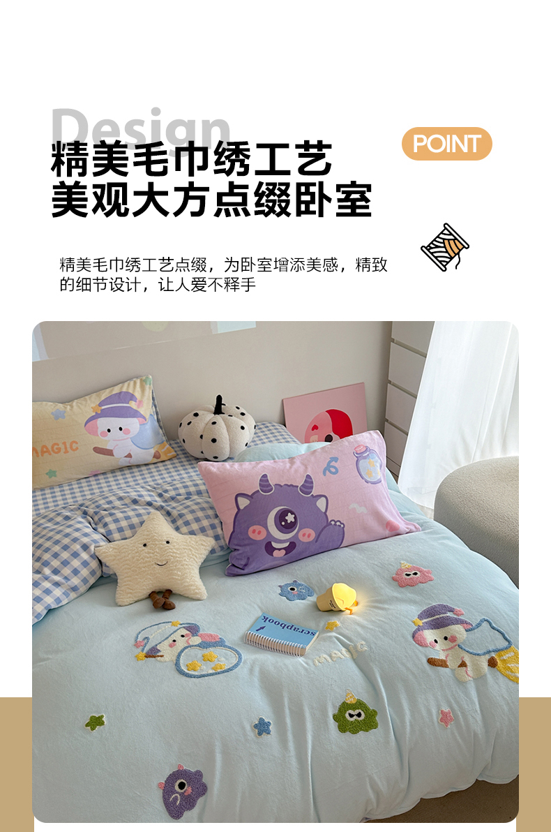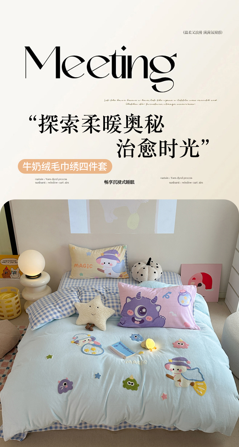 眠屿家纺 2024新款牛奶绒毛巾绣四件套 牛奶绒星星魔法师