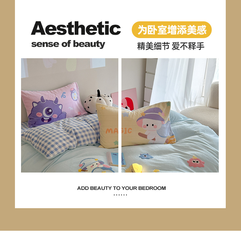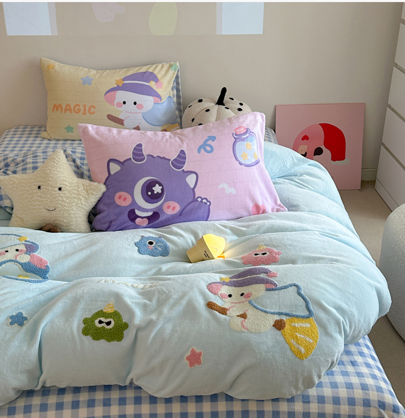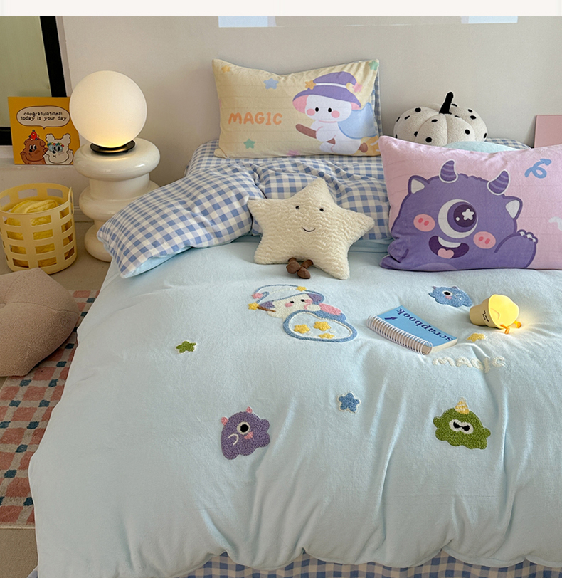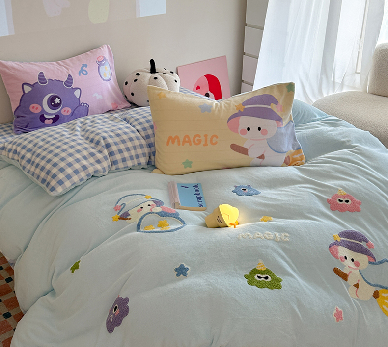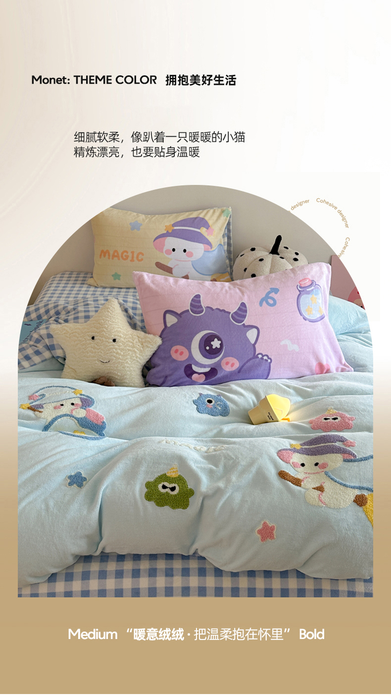 眠屿家纺 2024新款牛奶绒毛巾绣四件套 牛奶绒星星魔法师