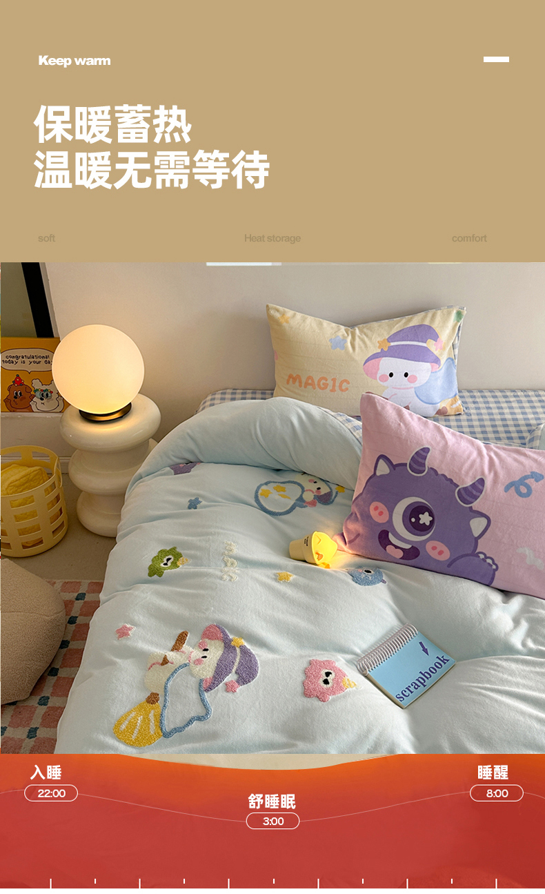 (总)眠屿家纺 2025新款加厚牛奶绒贴布绣四件套,棒球熊,动物朋友,欢乐音乐