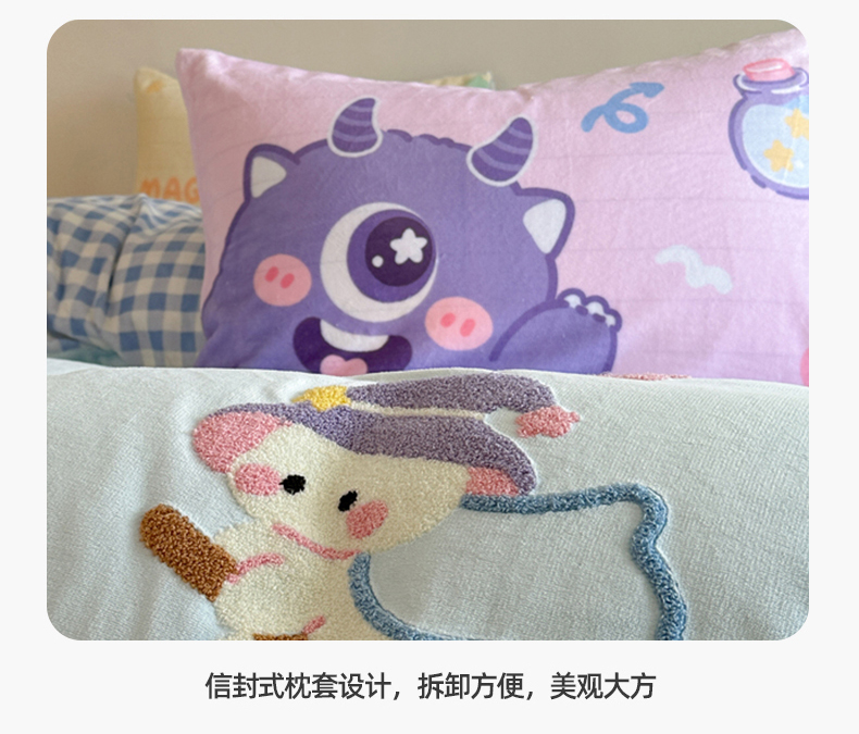 (总)眠屿家纺 2025新款全棉秋冬磨毛贴布绣四件套,爱心猫咪,蛋糕狗狗,可爱玩偶,热量100%