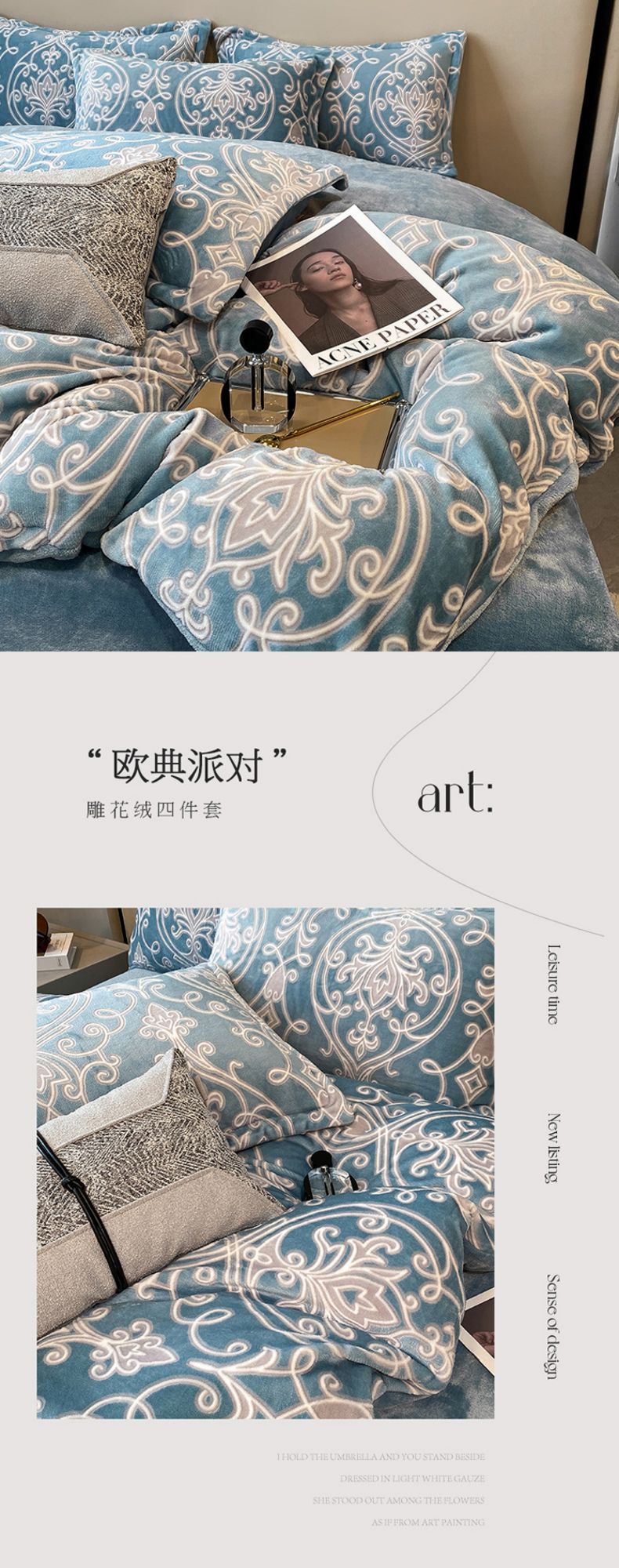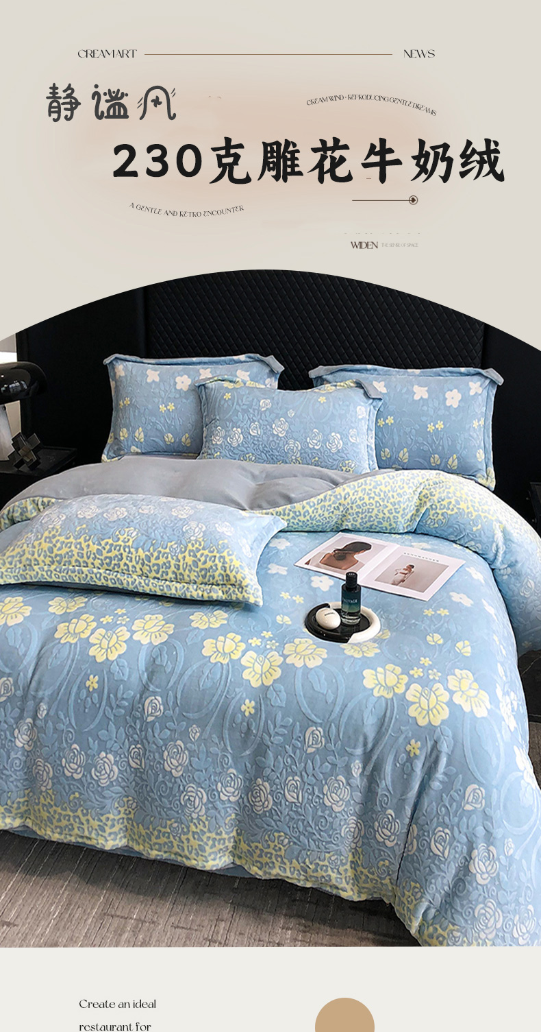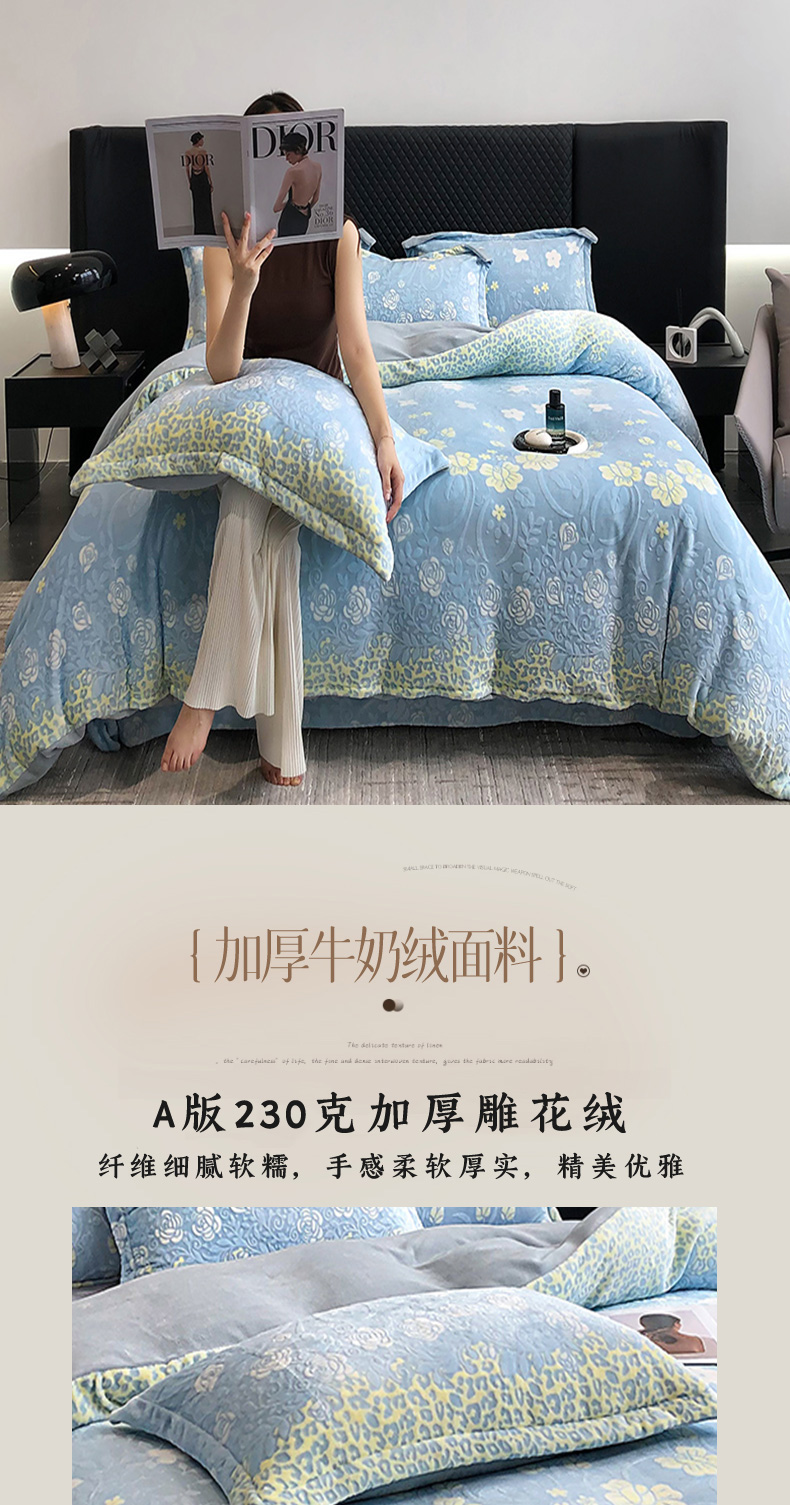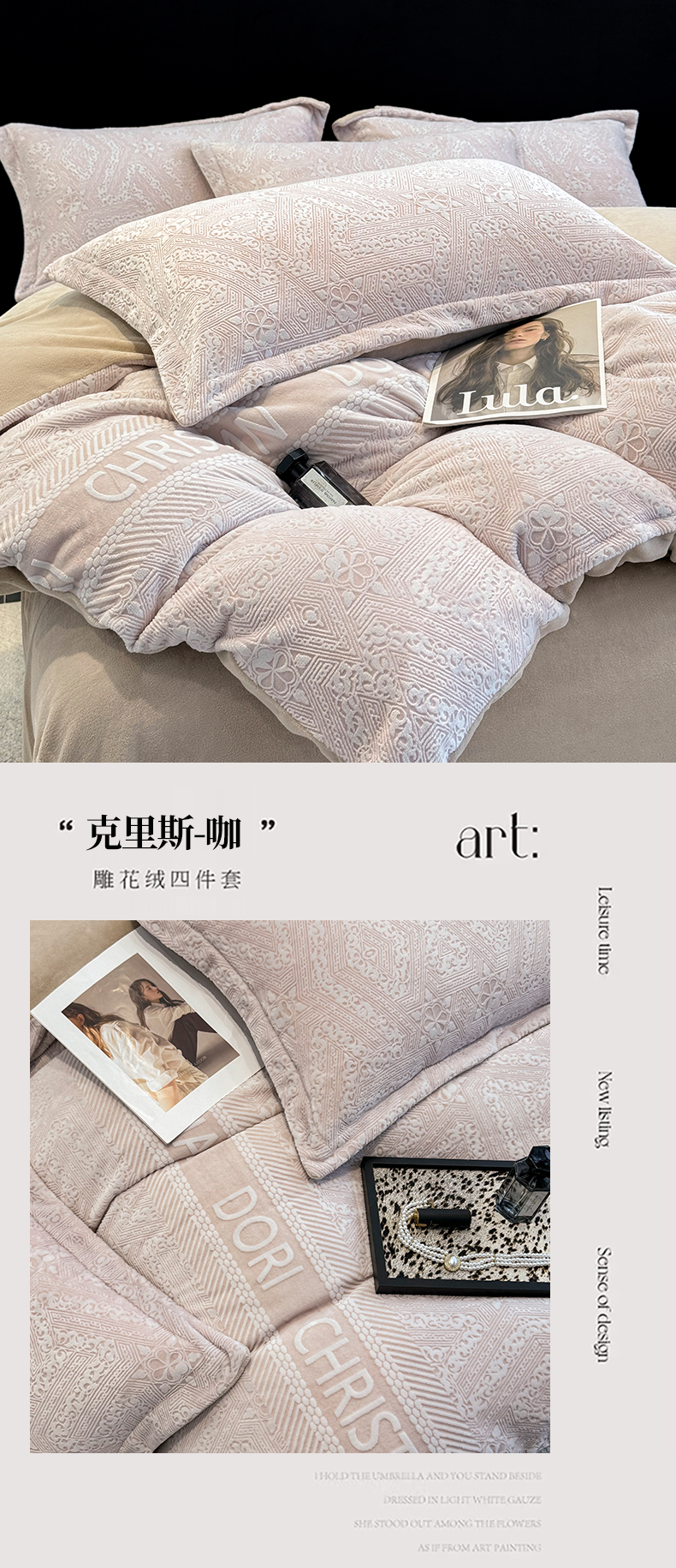 (总)金喜 2025新款230克AB版雕花牛奶绒加厚四件套-雅风