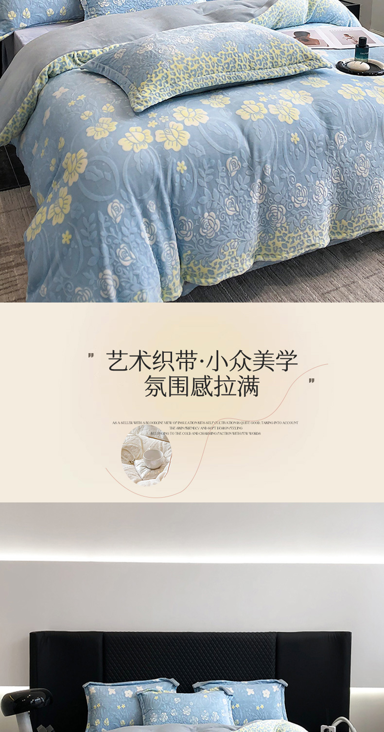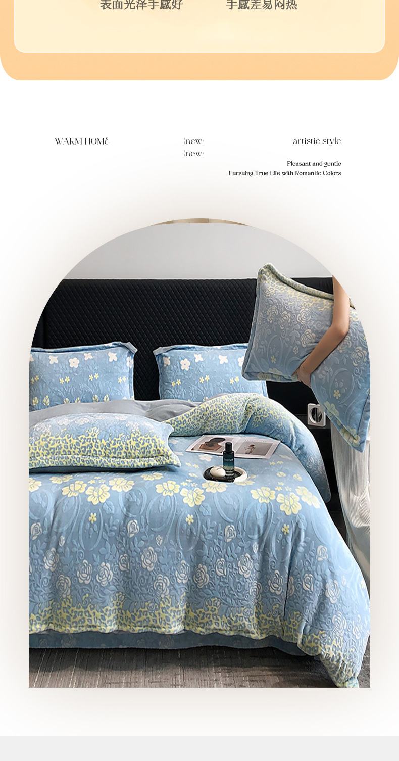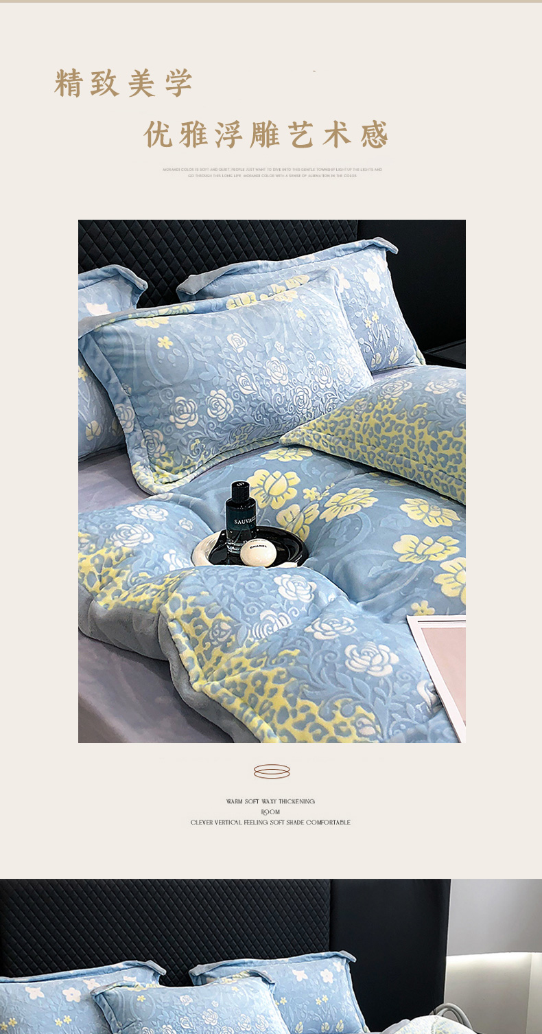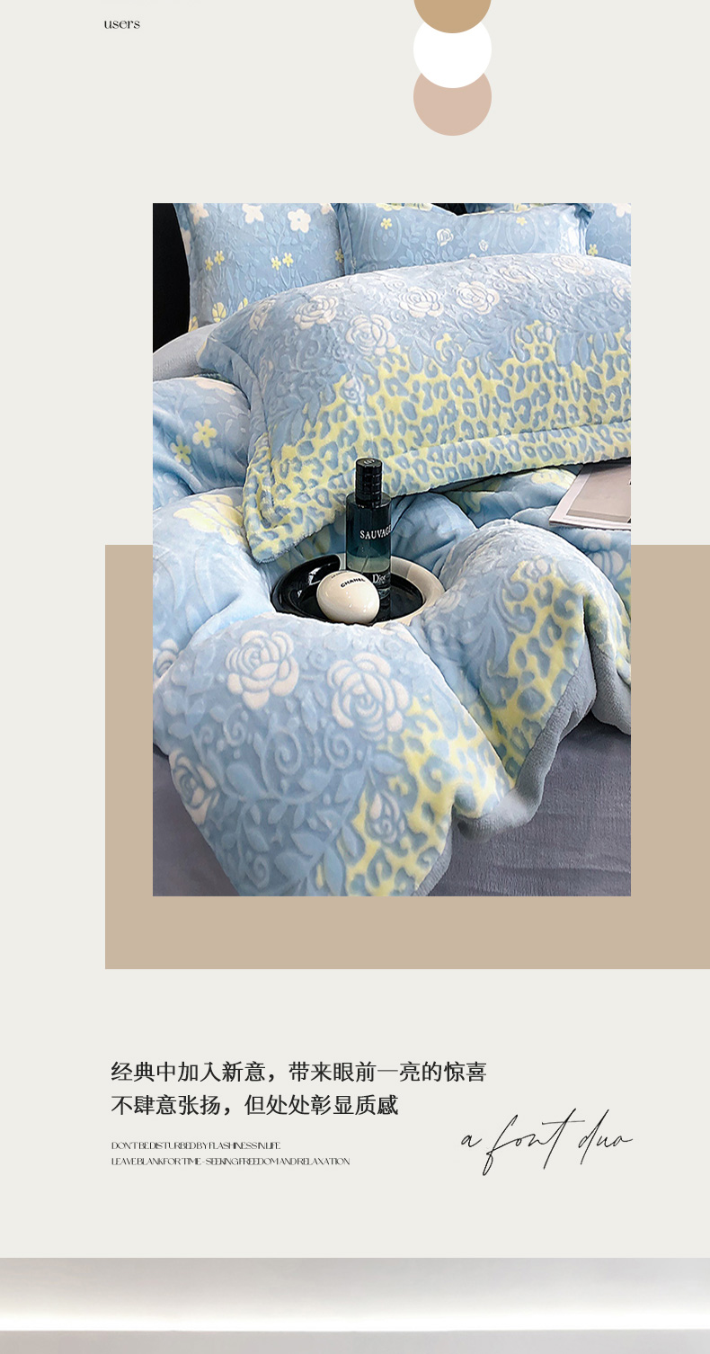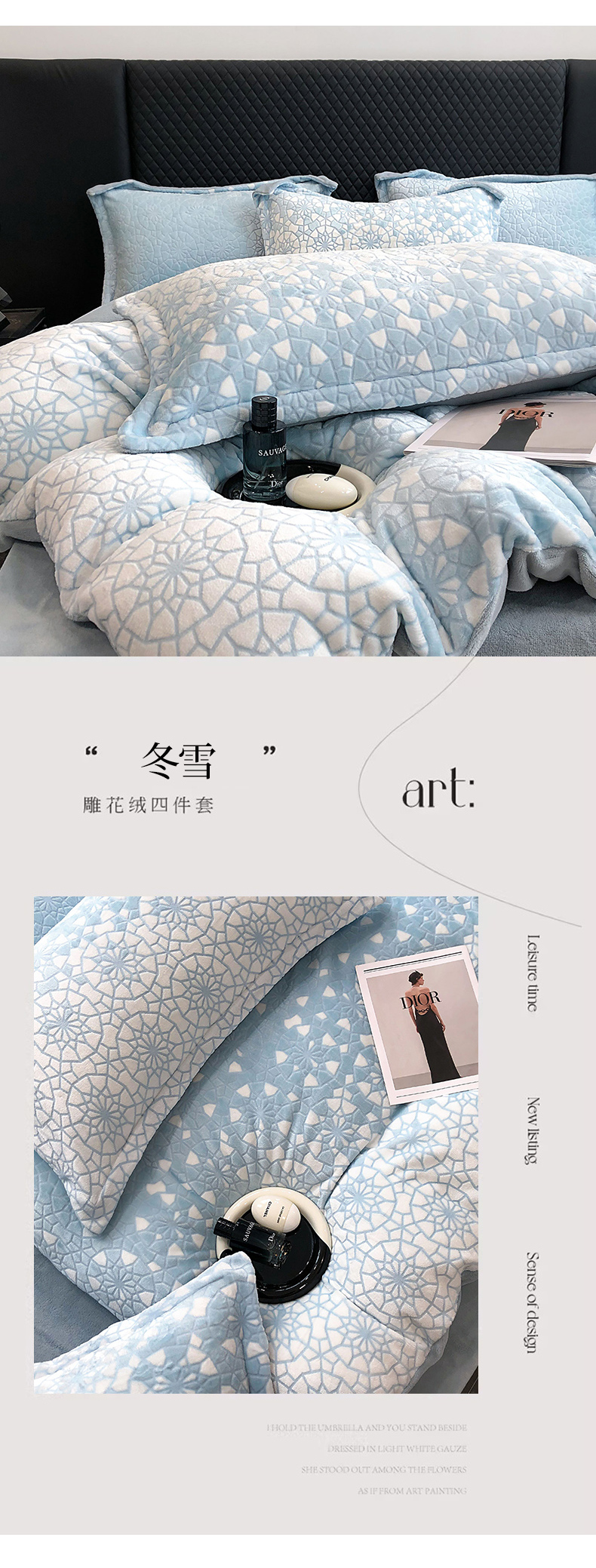 商品名称:(总)金喜 2025新款230克AB版雕花牛奶绒加厚四件套-雅风