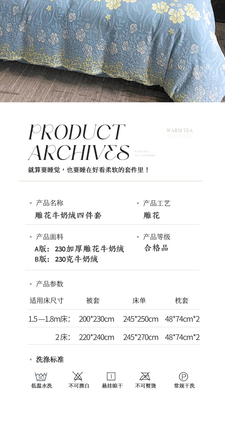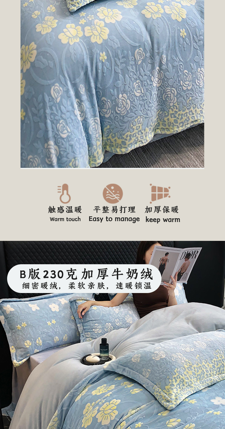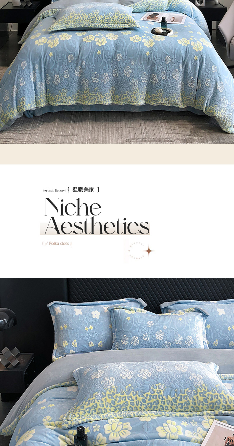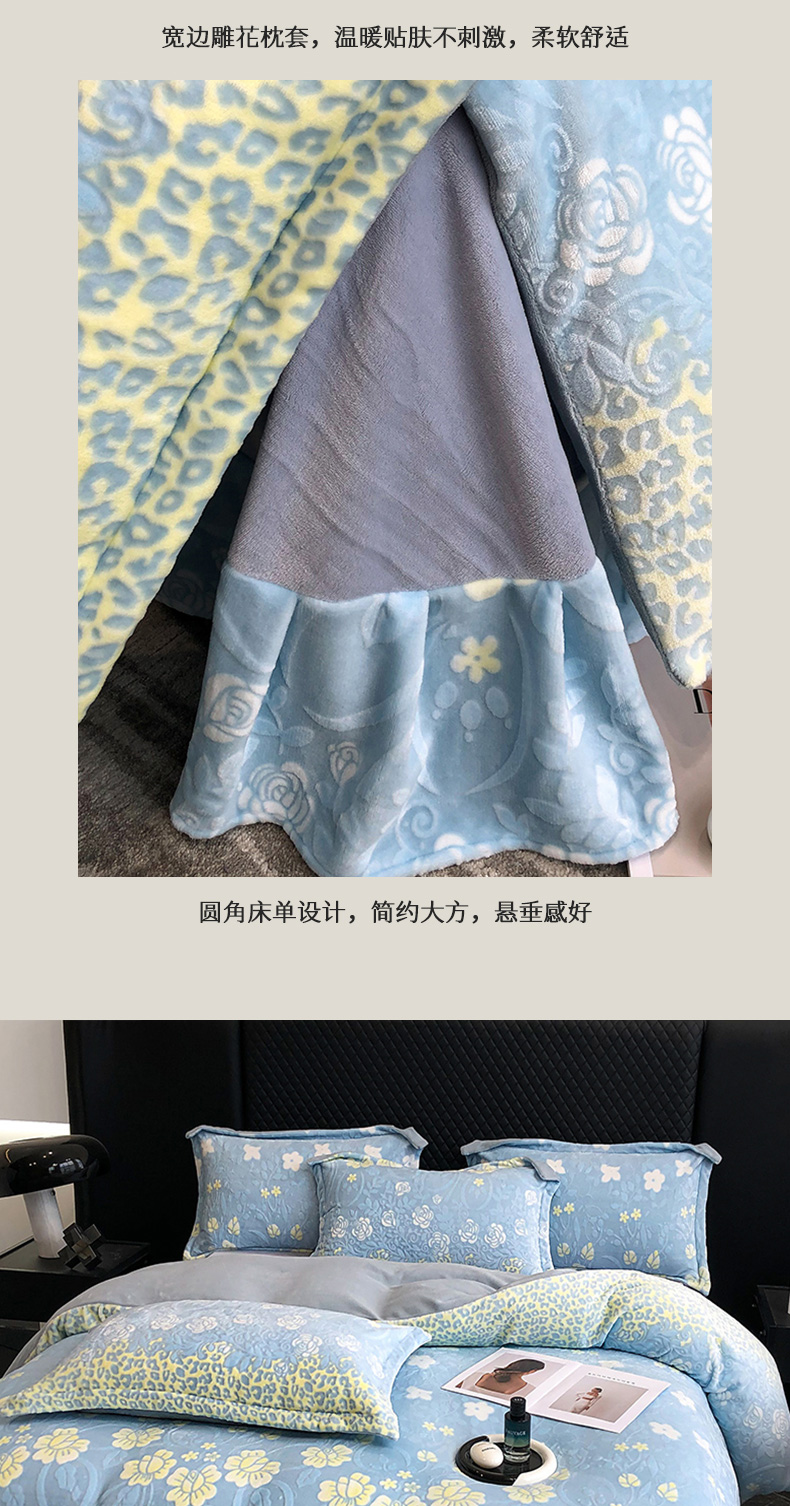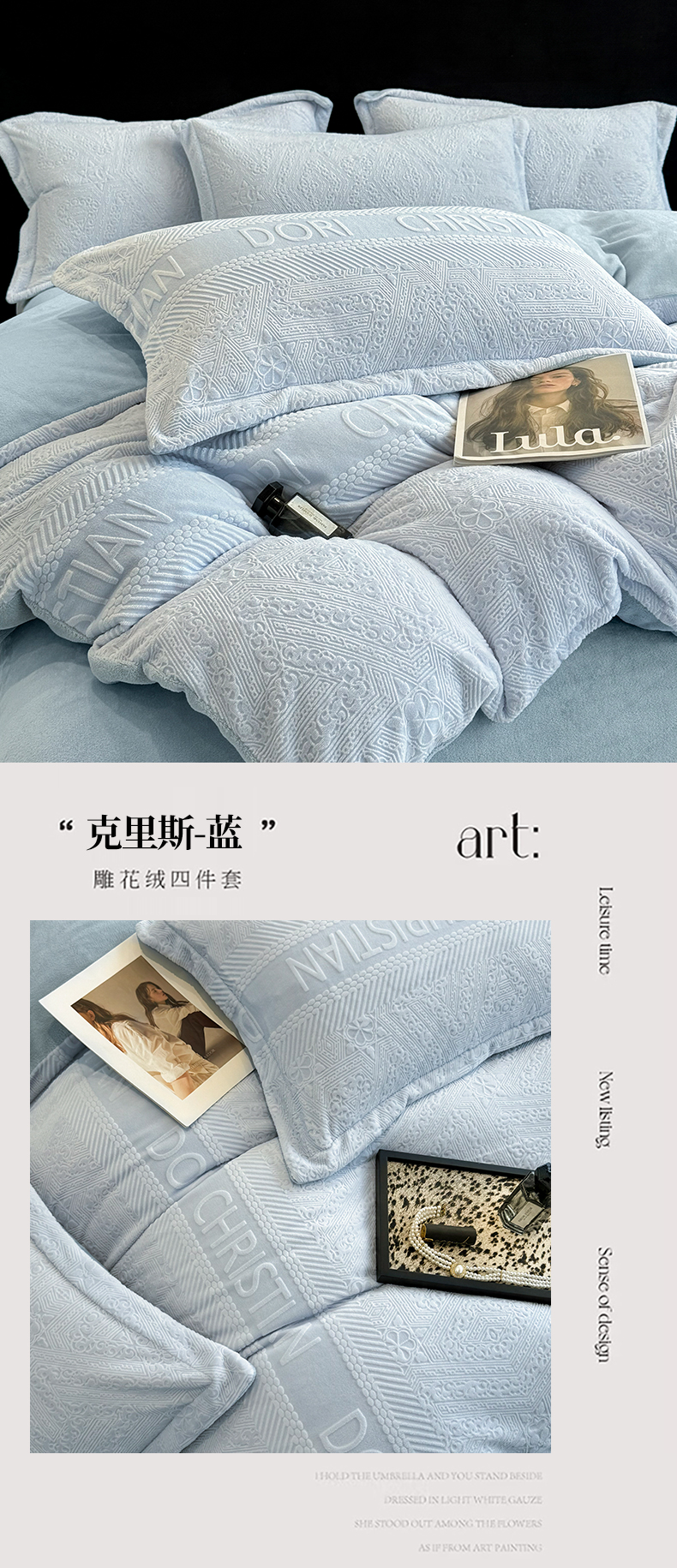 商品名称:(总)金喜 2025新款230克AB版雕花牛奶绒加厚四件套-雅风