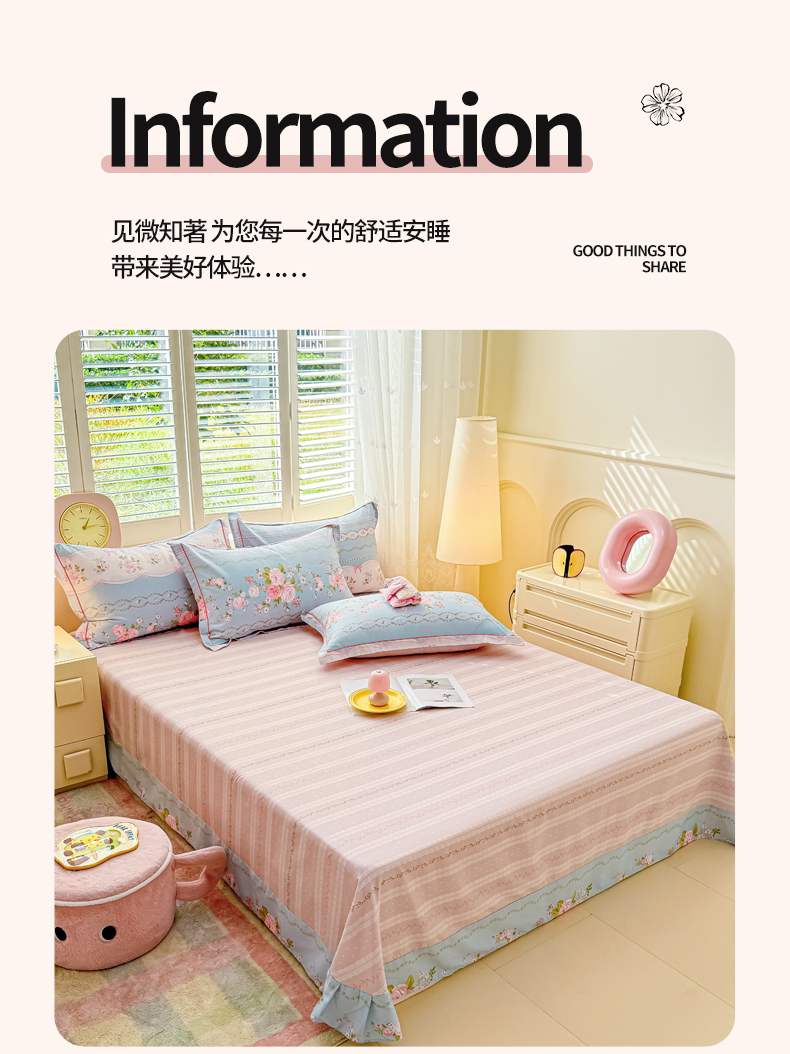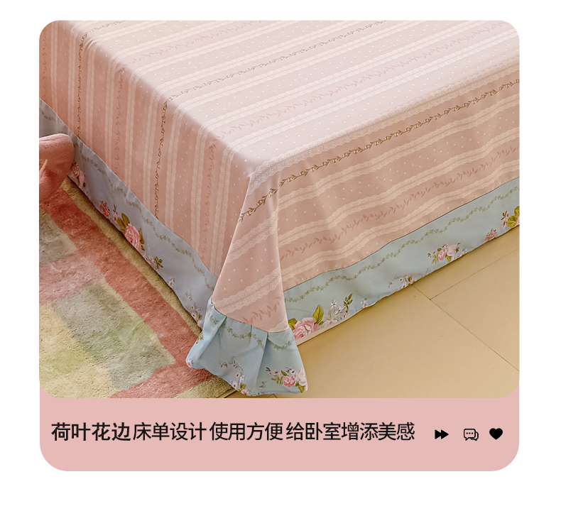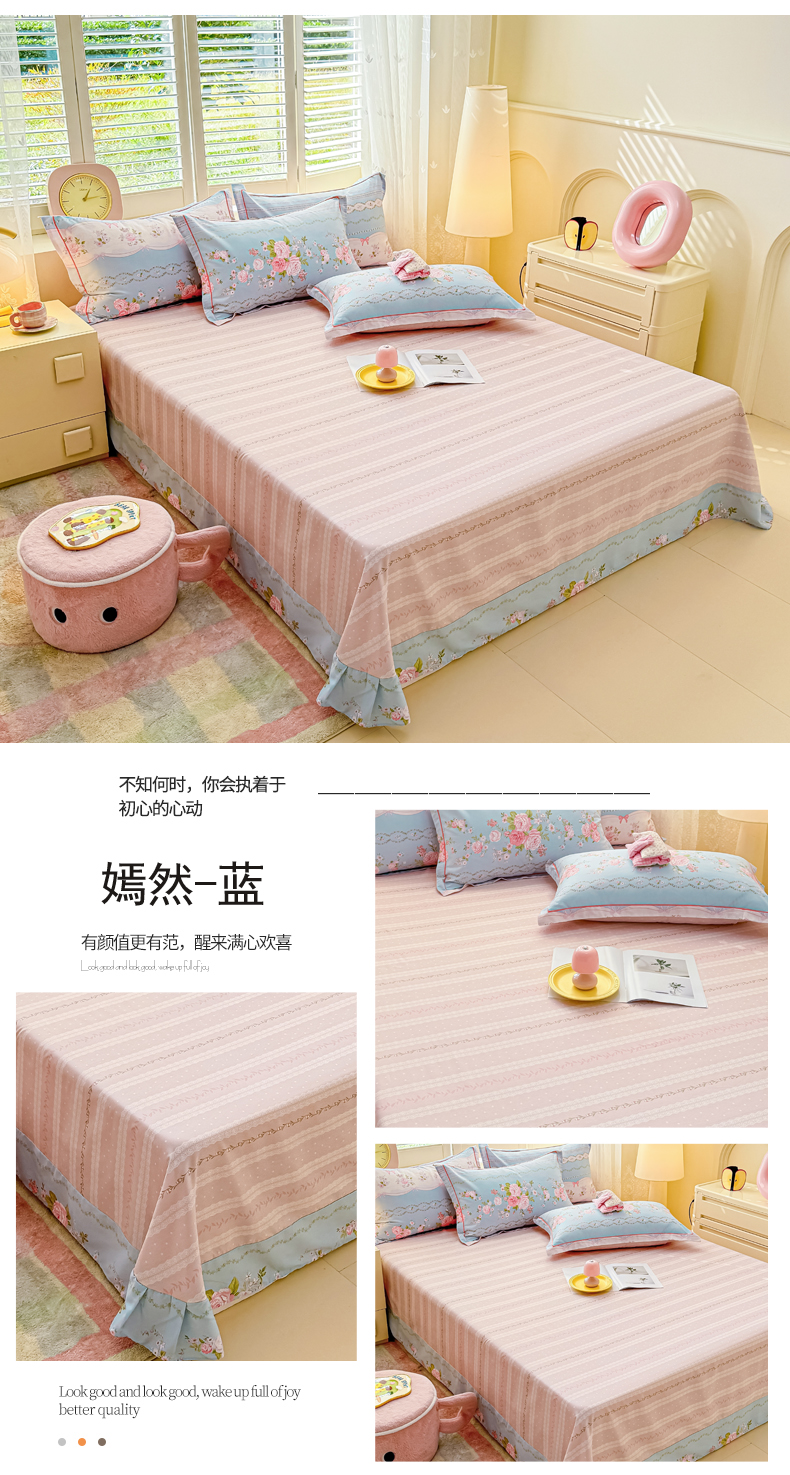 商品名称:洺兰家居 2025年新款全棉A类全喷气印花小清新单床单 嫣然-蓝