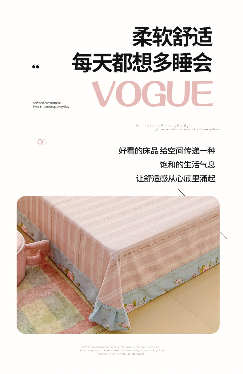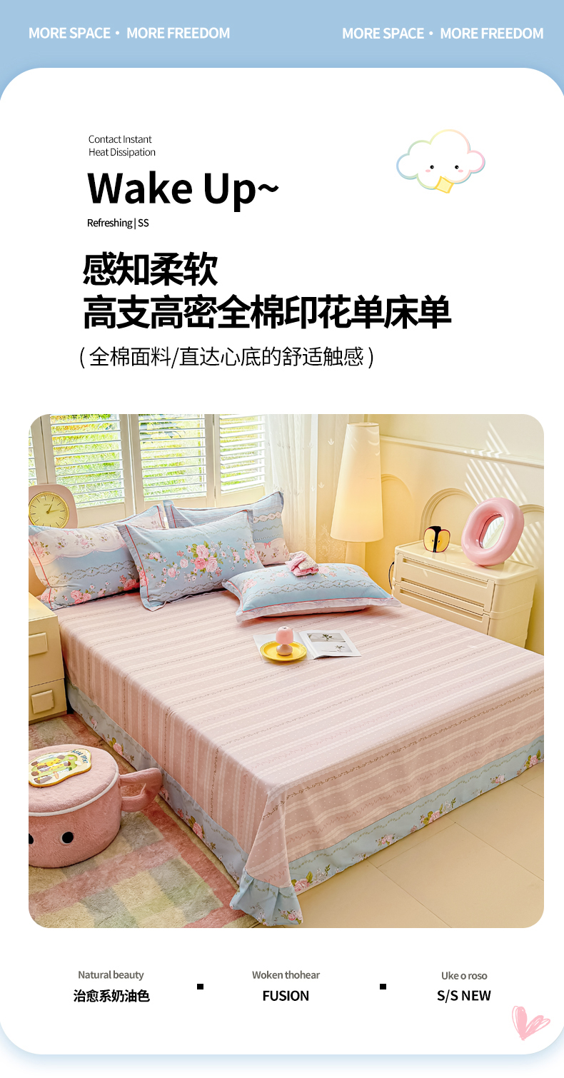 洺兰家居 2025年新款全棉A类全喷气印花小清新单床单 嫣然-蓝