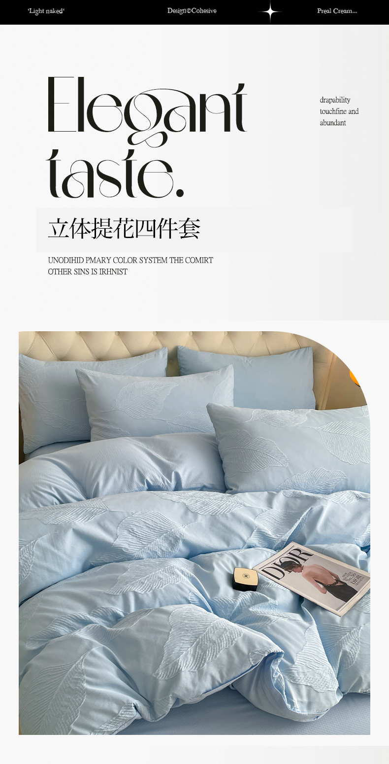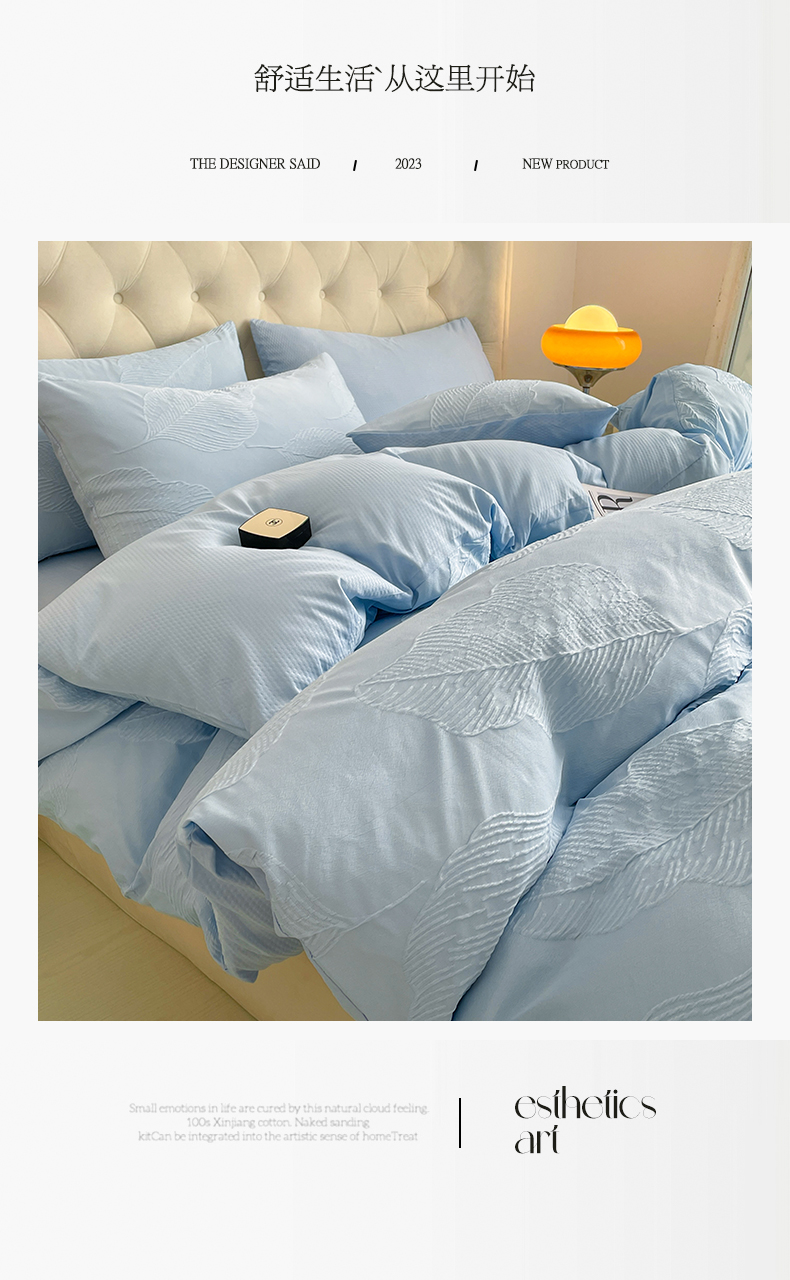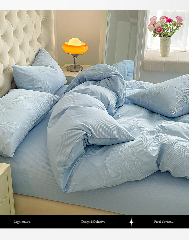 商品名称:新款色织提花立体床上用品四件套轻奢时尚 提花叶舞天空兰