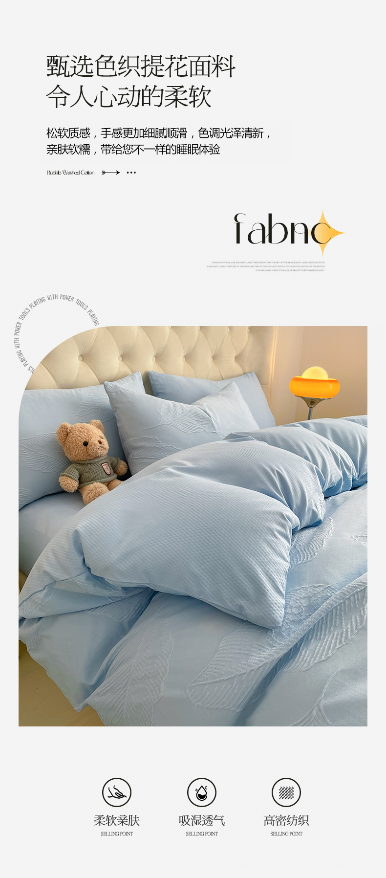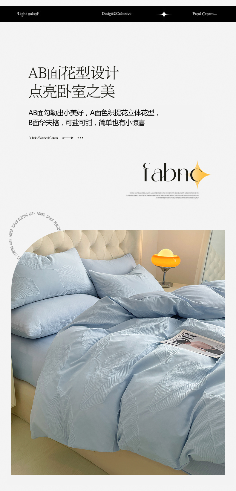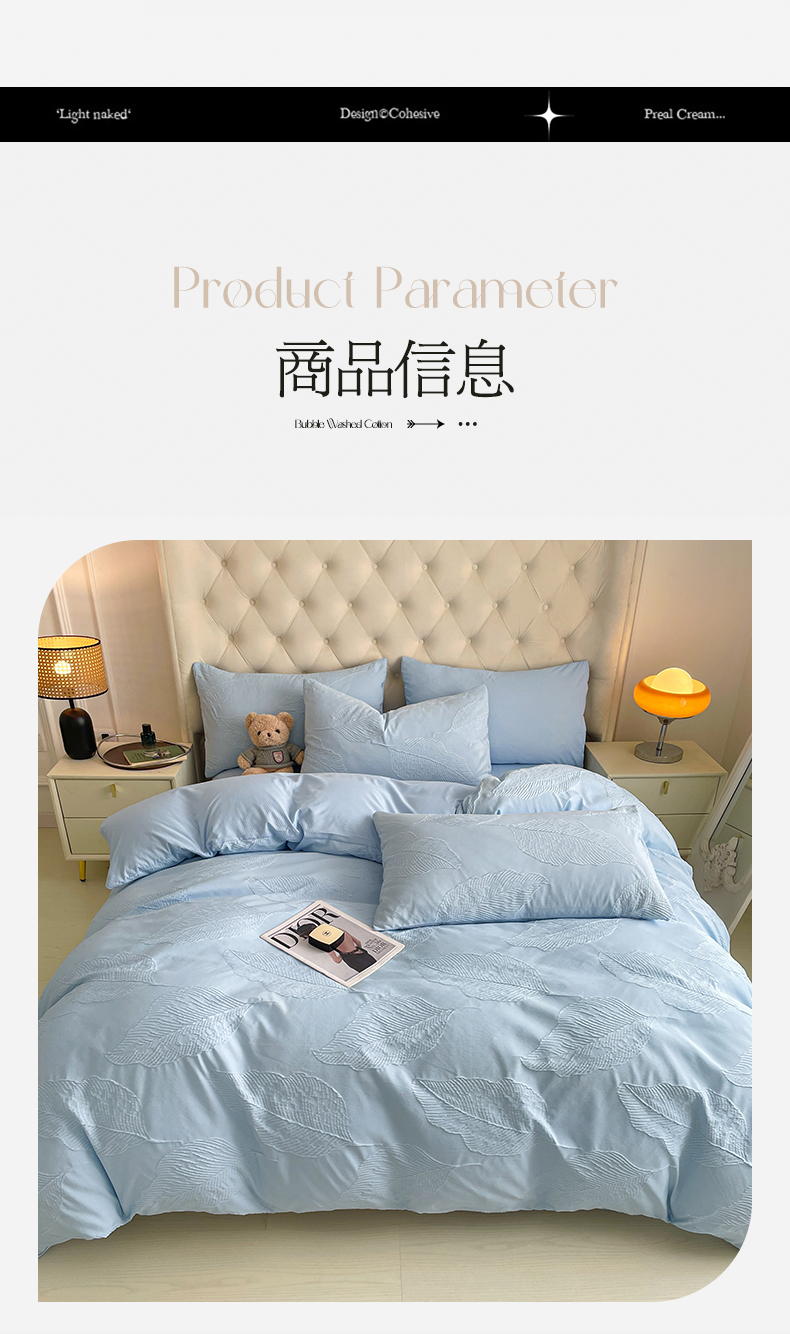 商品名称:新款色织提花立体床上用品四件套轻奢时尚 提花叶舞天空兰