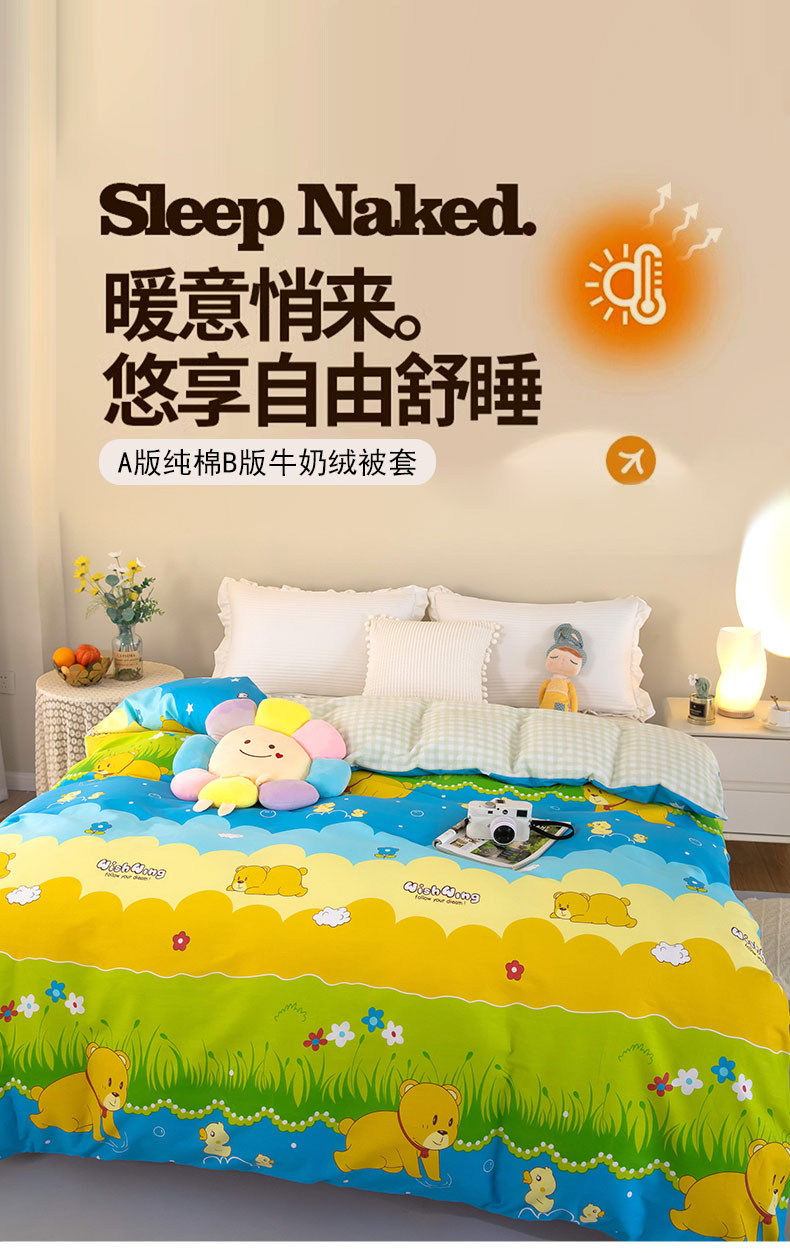 商品名称:2025新款纯棉加牛奶绒被套 呆呆熊