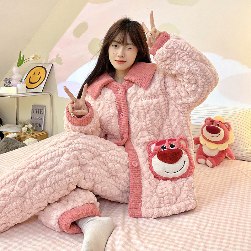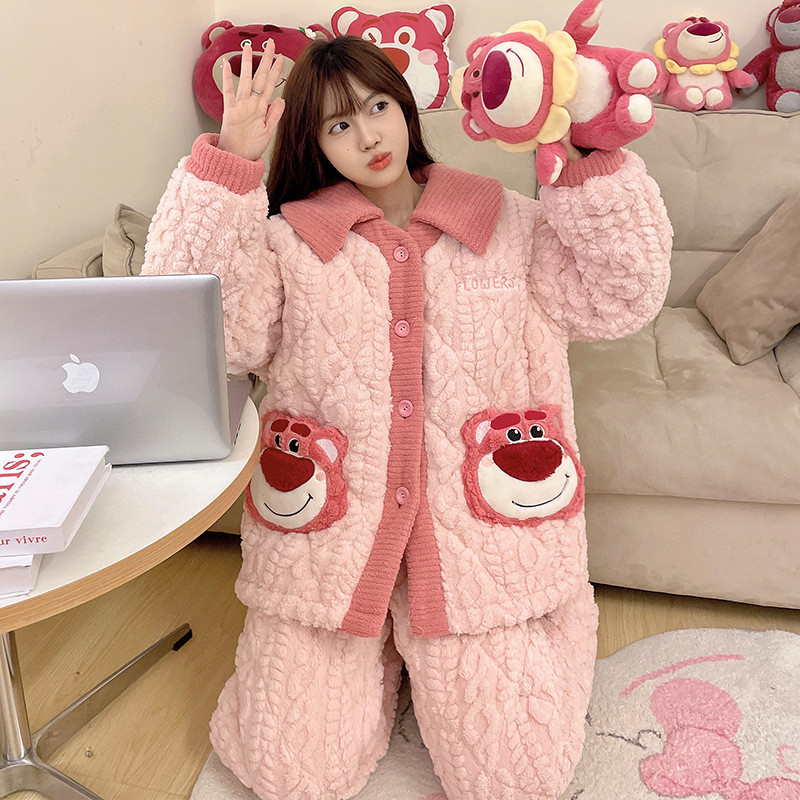 当前位置: 91家纺网 > 商品网购 > 居家日用 > 睡衣/家居服套装 > (总)妍景 2025新款夹棉草莓熊睡衣