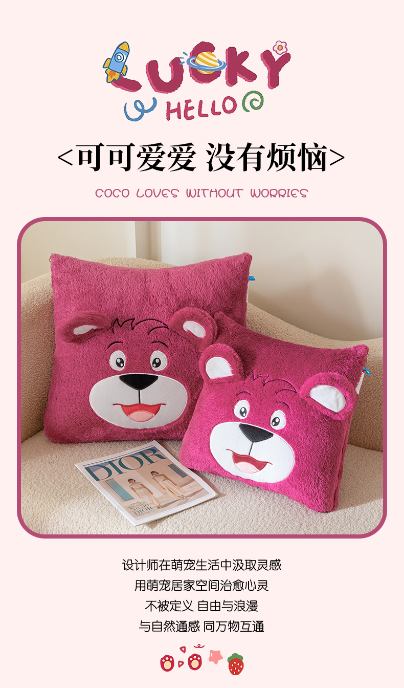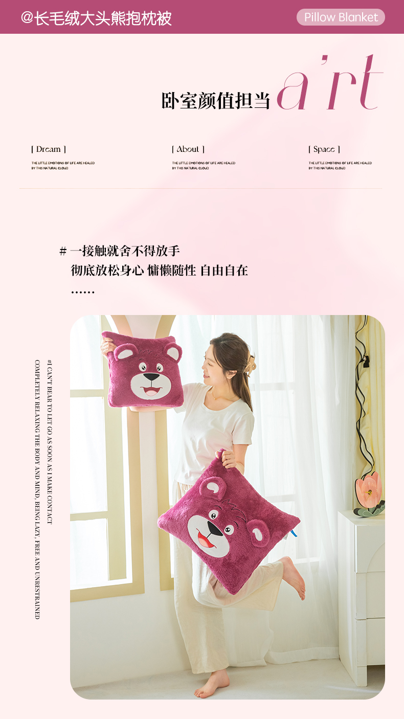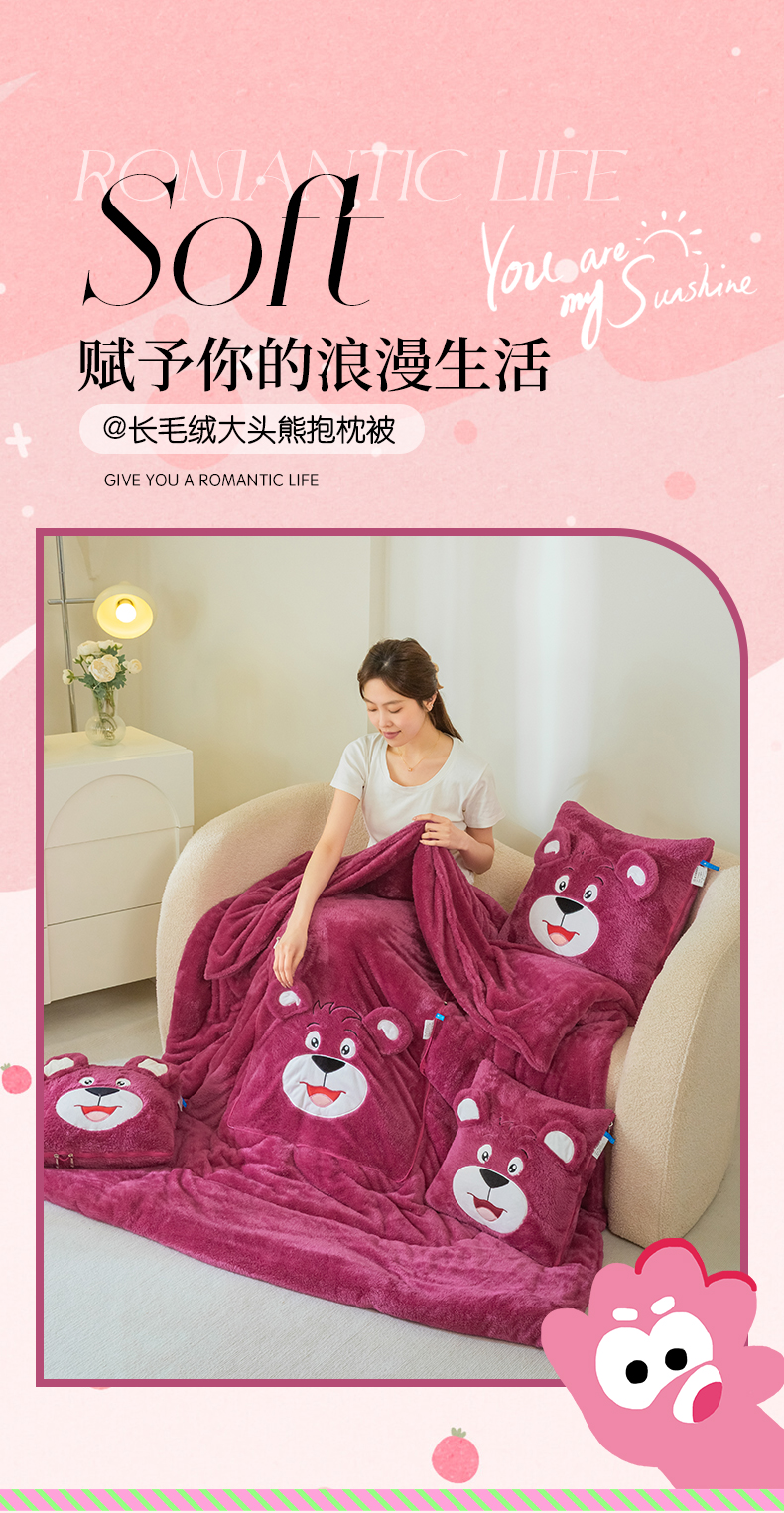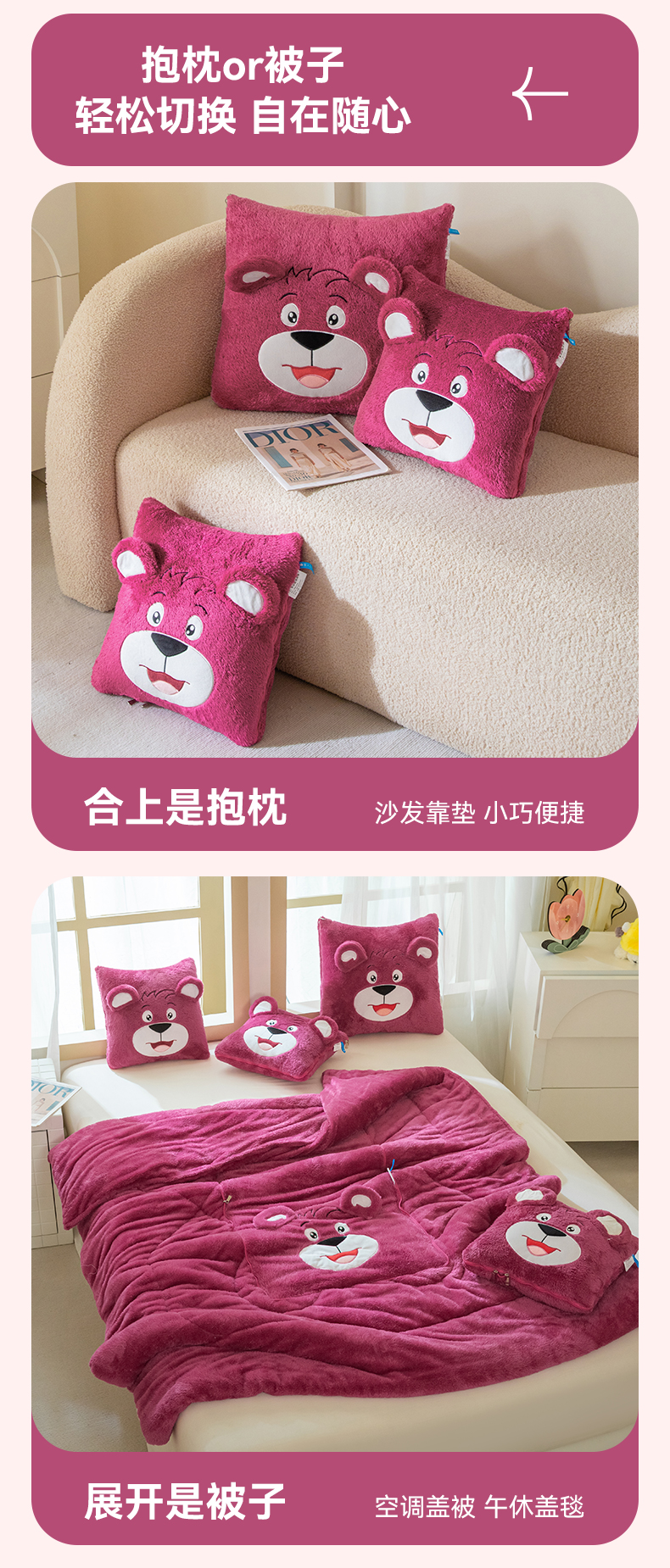 (总)雷娜家居 2025新款长毛绒玫红色大头熊抱枕被