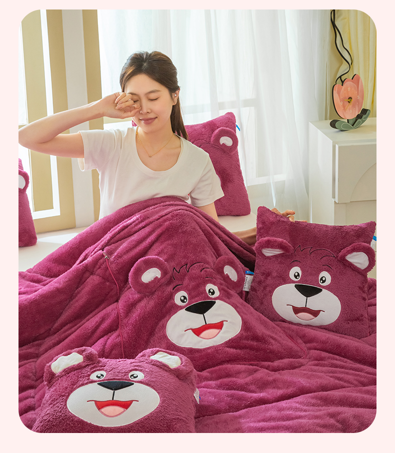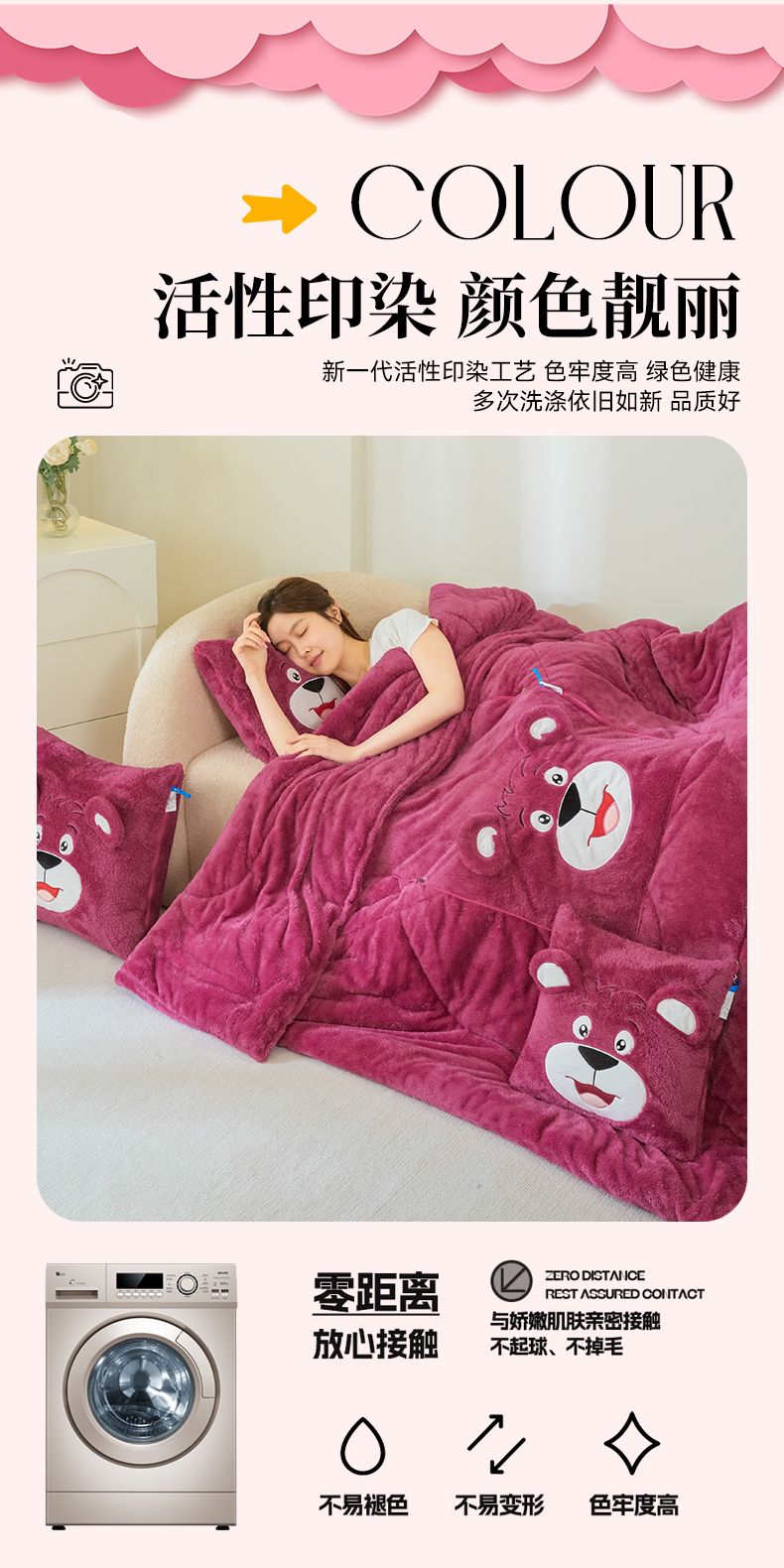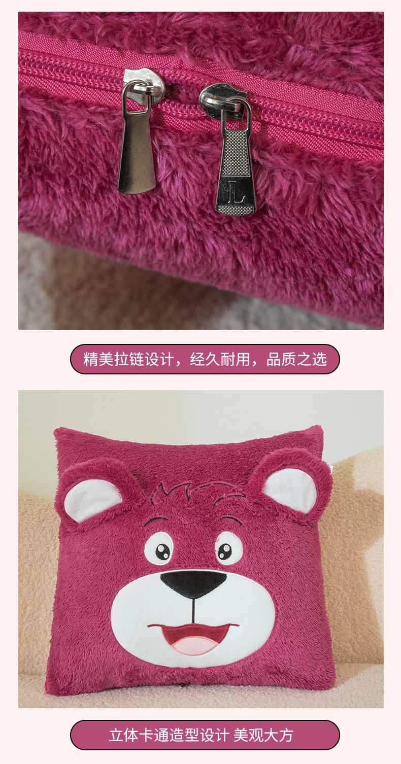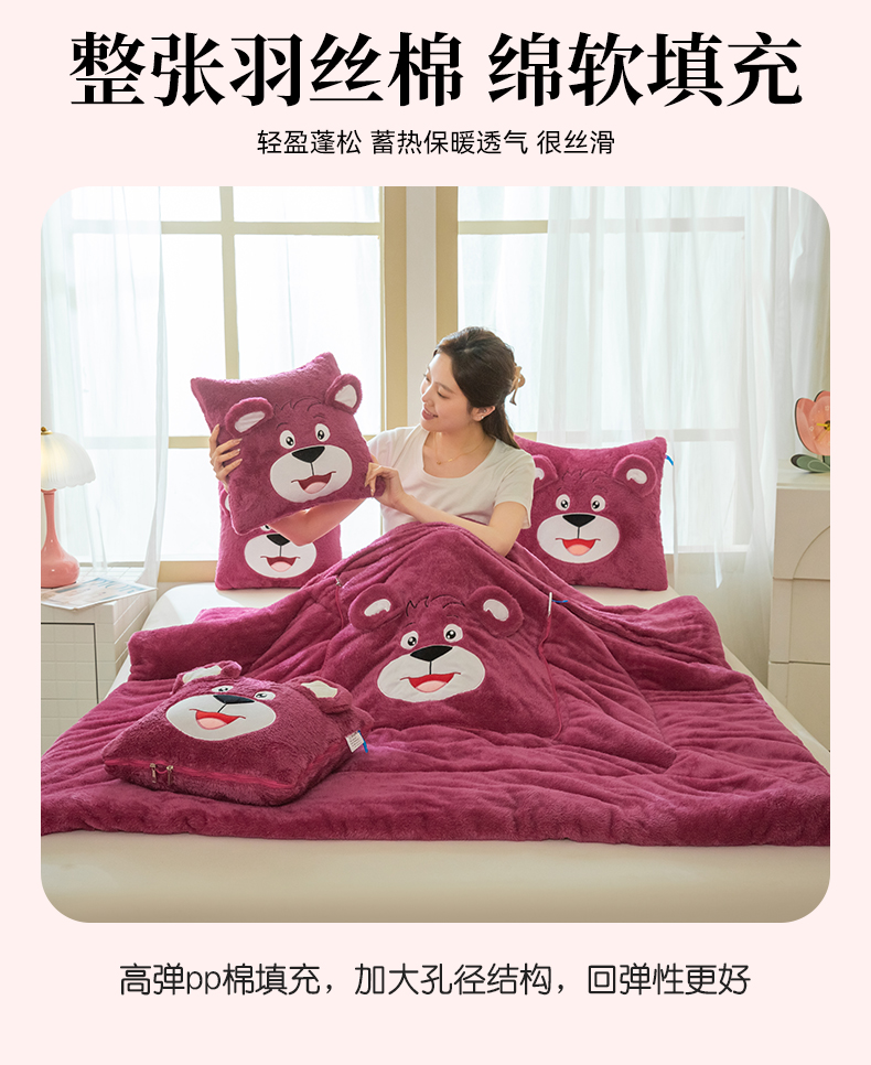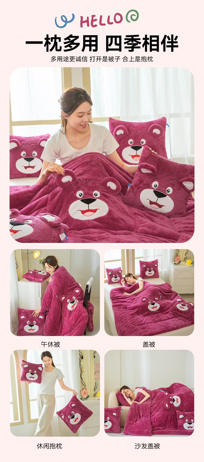 (总)雷娜家居 2025新款长毛绒玫红色大头熊抱枕被