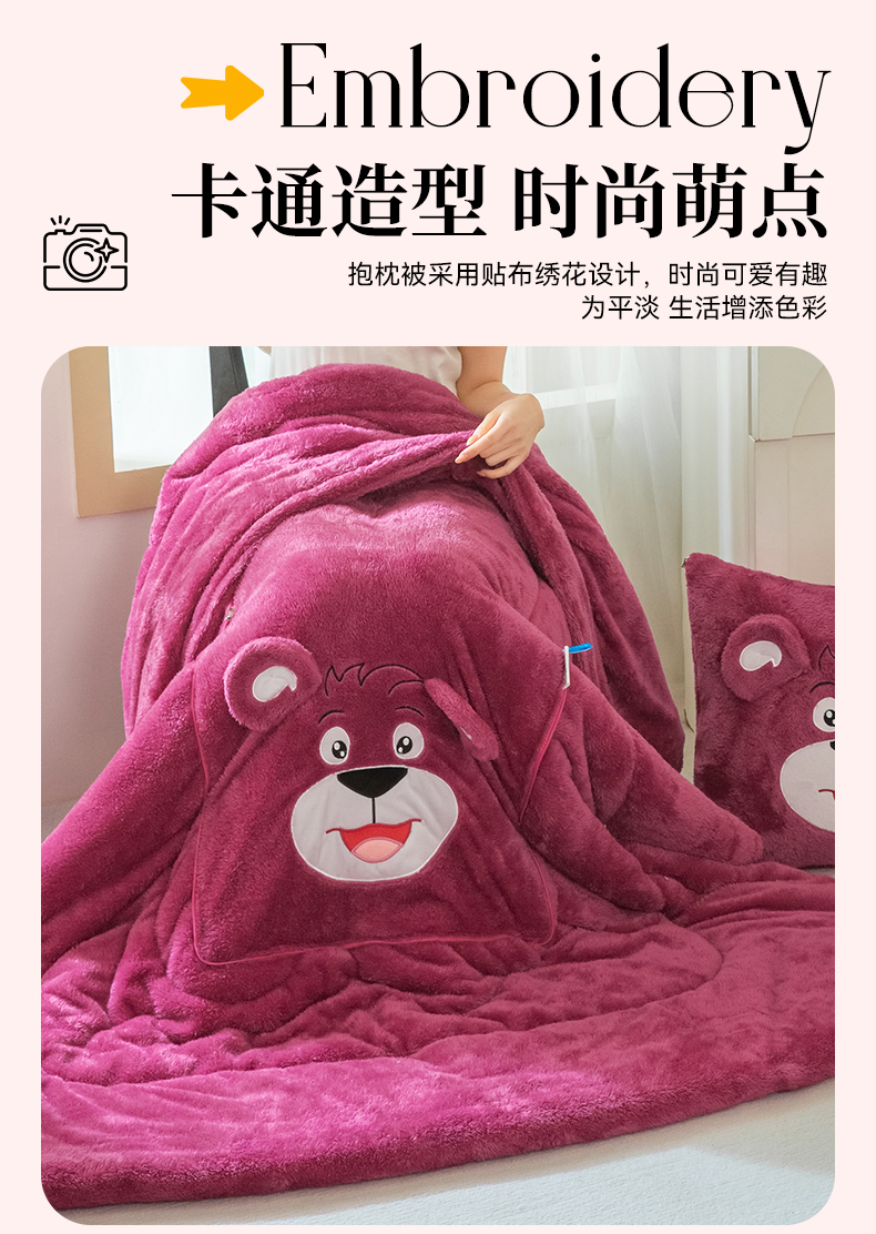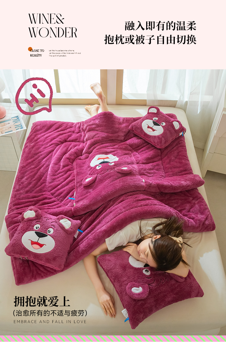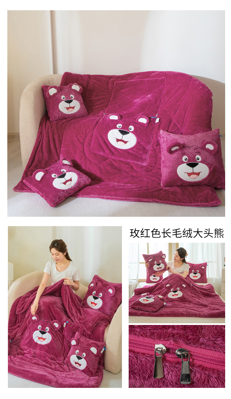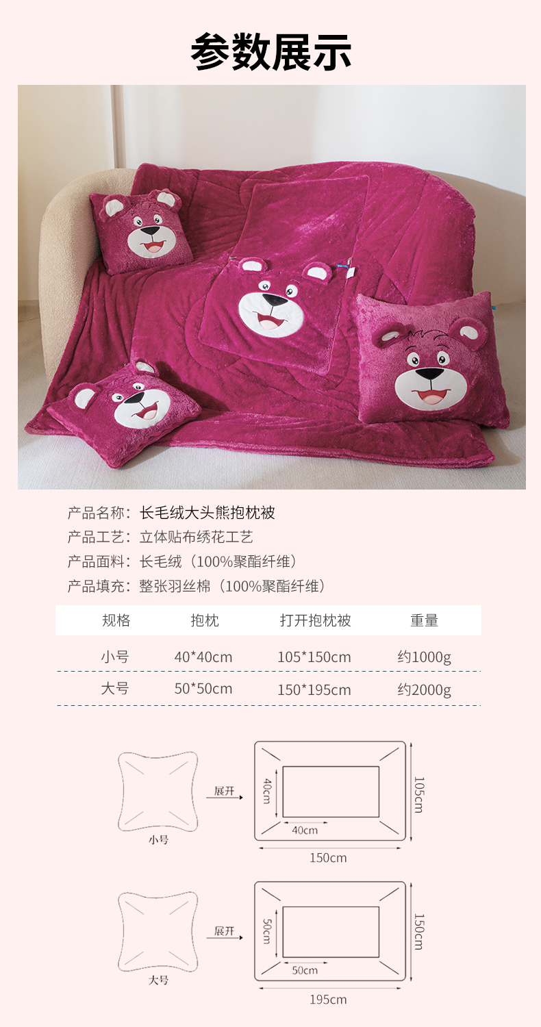 商品名称:(总)雷娜家居 2025新款长毛绒玫红色大头熊抱枕被
