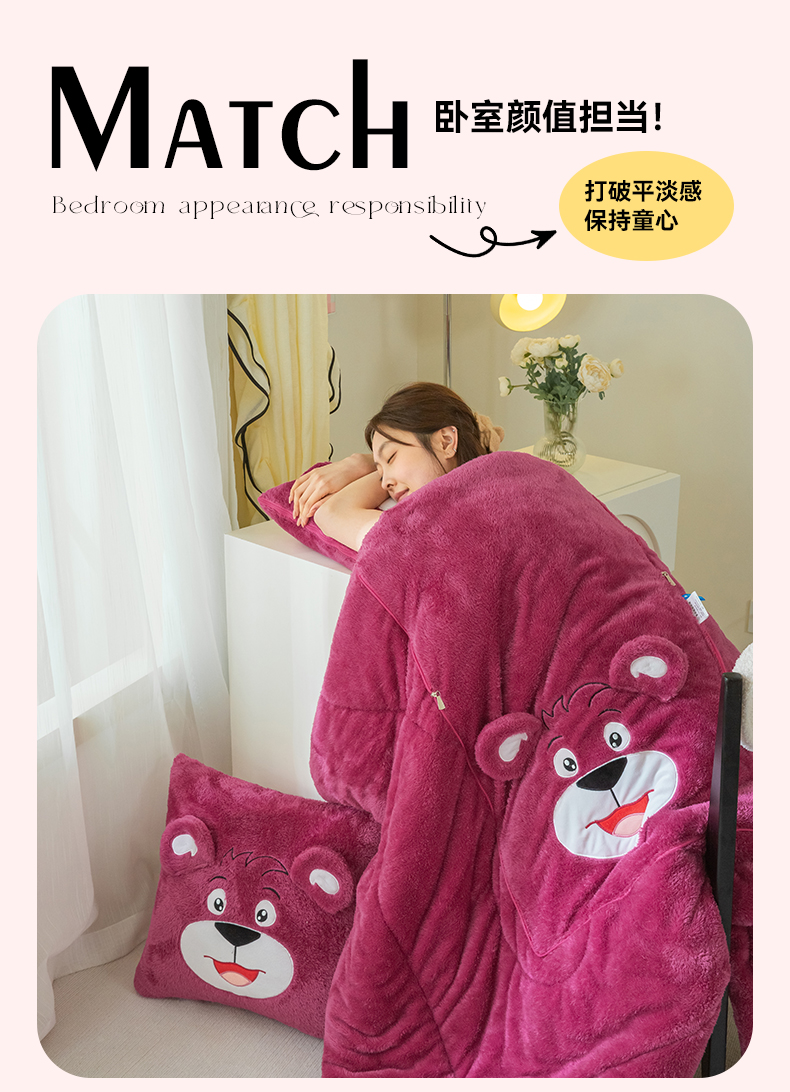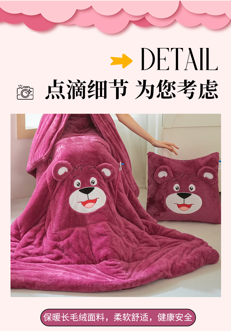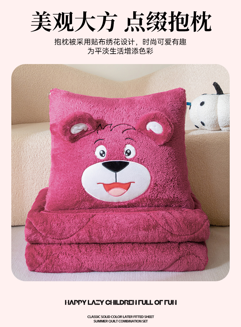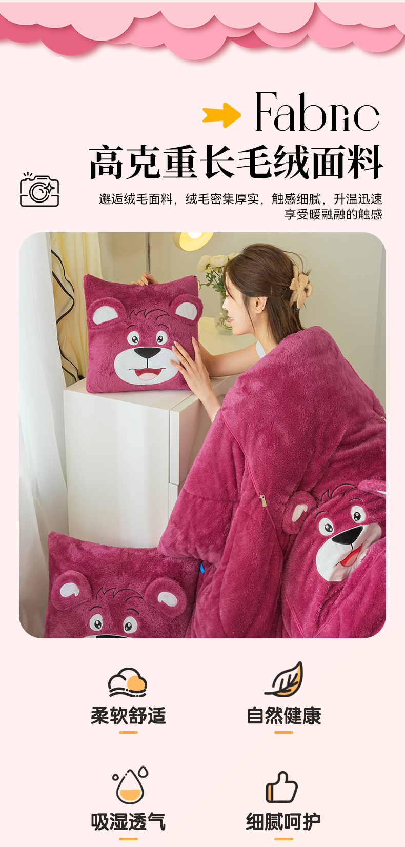 商品名称:(总)雷娜家居 2025新款长毛绒玫红色大头熊抱枕被