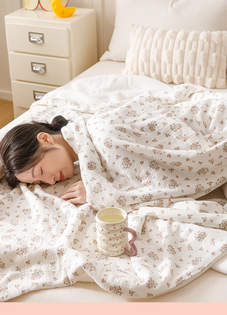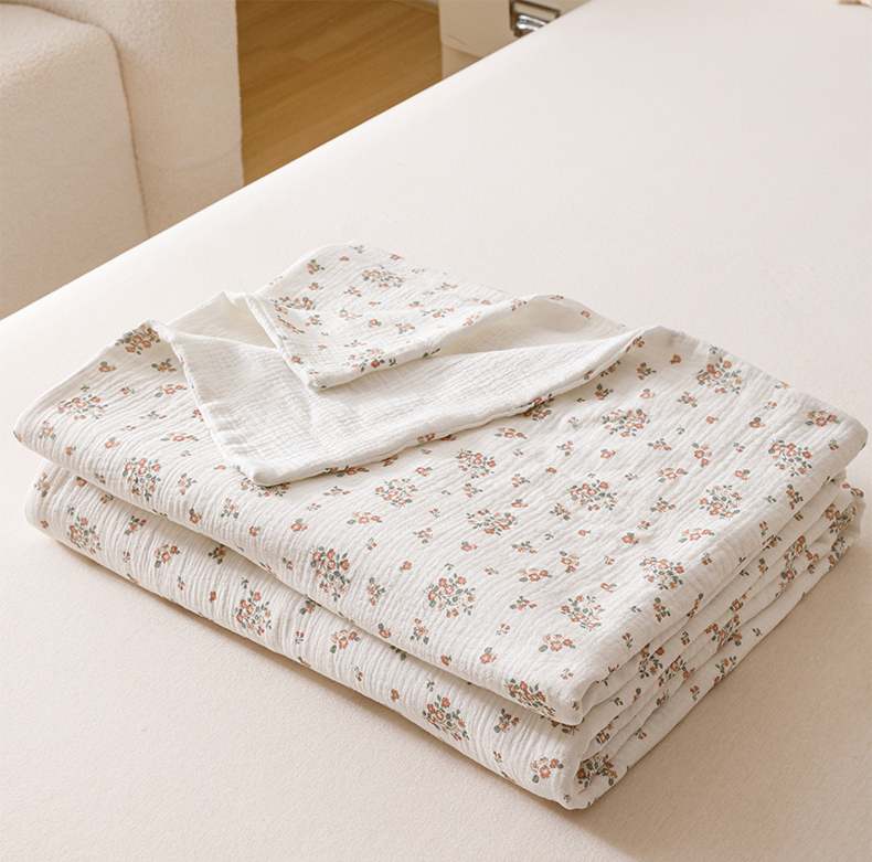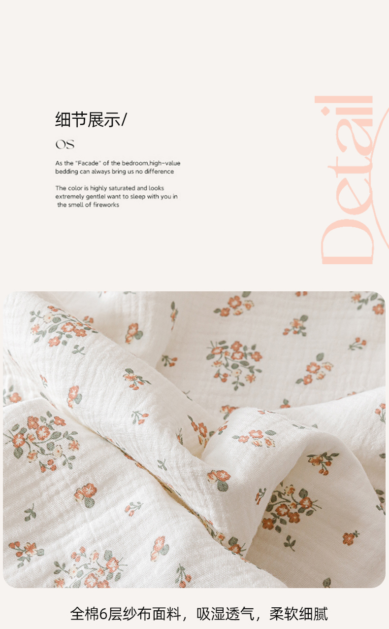 商品名称:悦然毛巾被 2025新款全棉六层纱布夏被成人款 花漾柔纱