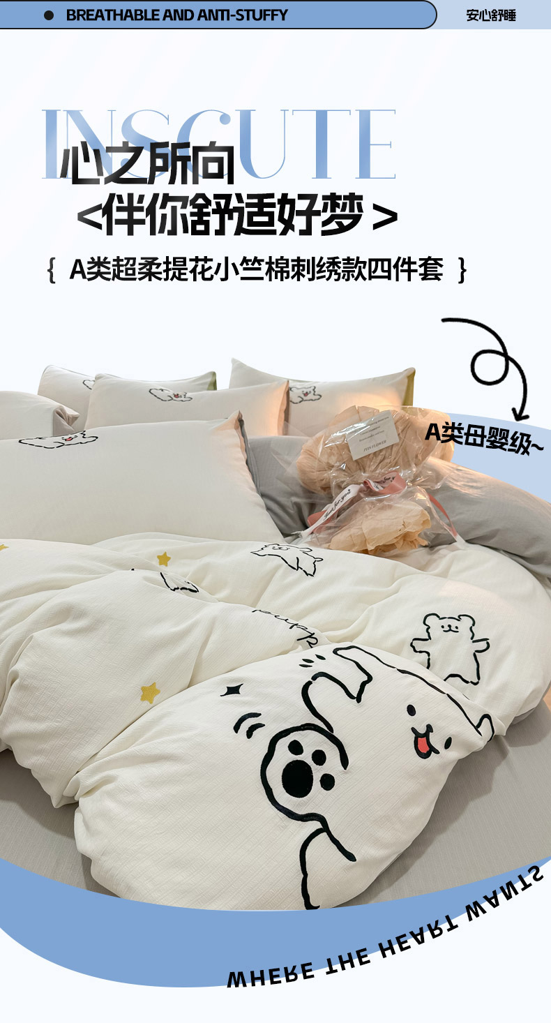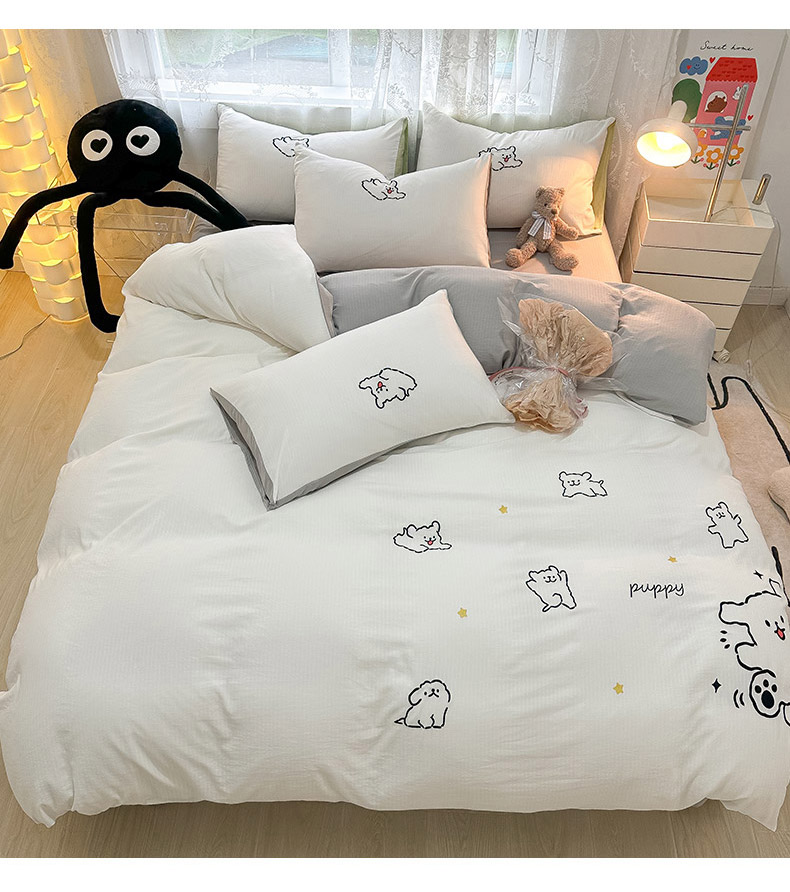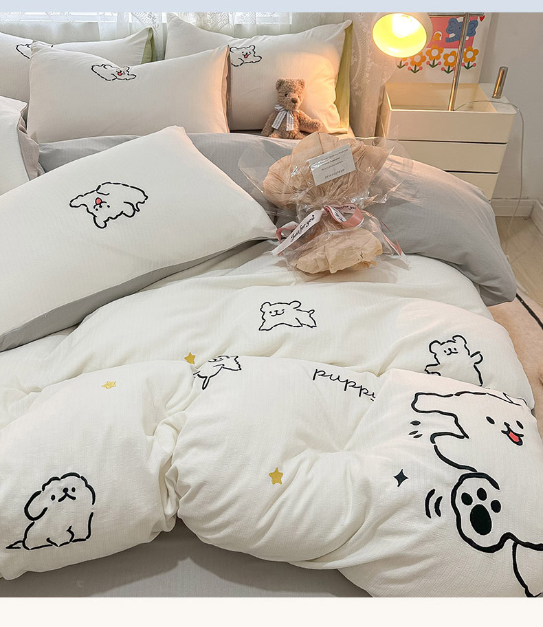 当前位置: 91家纺网 > 商品网购 > 床品套件 > 四件套 > 小竺棉四件套 > 多乐家纺 2025新款超柔加厚有氧提花针织小竺棉绣花四件套(提供买家秀) 小白-白灰